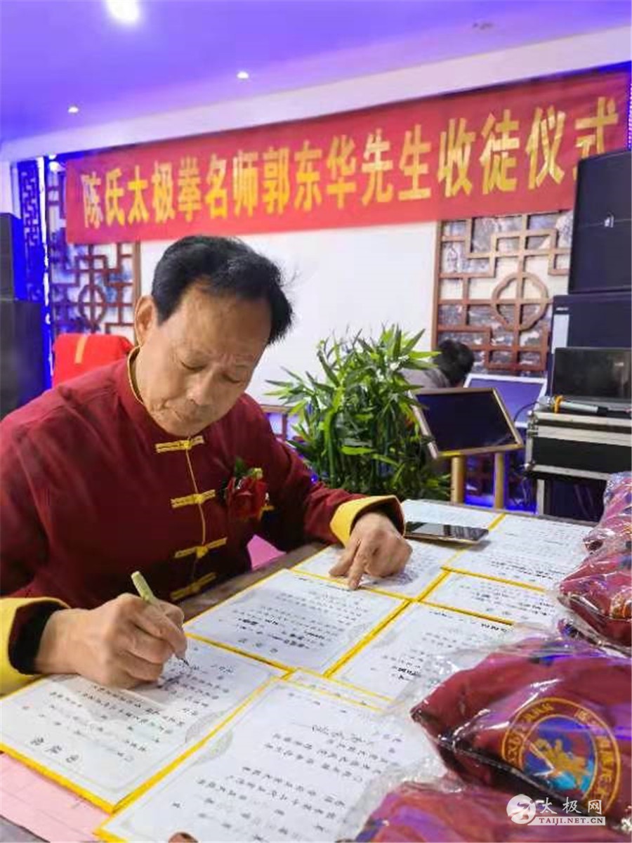 并不是所有的鲜花都代表爱情,玫瑰做到了。并不是所有的树木都万古长青,松柏做到了。并不是所有的河流都受到保护並世代传颂,黄河做到了。并不是所有的运动都能能被世界人民喜爱,太极拳做到了。并不是所有的太极拳习练者都能成为太极名师,郭东华做到了。并不是所有人都有缘拜郭东华为师,成为郭东华麾下弟子,尹才等十一位弟子福分不浅,有缘拜郭东华为师,成为陈氏太极拳第十三代太极拳传承人。 2022年1月23日上午十时,国际太极拳大师陈小星入室弟子、陈氏太极拳名师郭东华老师收徒仪式在广西防城港市开饭大酒店隆重举行。 见证嘉宾 参加仪式见证嘉宾有北部湾太极队总顾问连振河,队长何国芝,武当张三丰太极拳第十五代传人章峰,杨式太极拳名师郭俊,陈氏太极拳第十三代传人李晓朋,以及北部湾太极队领导班子全体成员和部分拳友。 新入门弟子 这次收徒,共有来自黑龙江、甘肃、河南、河北、广西等五省市自治区、九个市县区的11位弟子,加之以前三次拜师的16位弟子,现今共有27位来自全国各地的弟子在郭东华麾下拜师学拳。 拜师仪式由杨欣女士担纲。杨欣女士主持风格老练成熟,风趣幽默。才华横溢,口吐莲花。妙语连珠,佳句频出。使整个仪式庄严而隆重,活泼又健康,沉浸在一片祥和、喜庆、热烈和欢乐之中。 从师父郭东华及见证人入座,弟子就位,弟子宣读拜师贴,向师父行叩拜大礼,递送拜师贴,向师父敬茶。师父向弟子交回徒贴,颁发证书,赠送礼品,师父训话,仪式完全按照传统礼节有序进行。 师父郭东华签名 仪式结尾,师父郭东华向弟子训话说:“各位弟子,今天进了太极门,就是太极人。就要恪守门规,尊师重道,团结友爱,苦学勤练。尊重师门,团结外门。天下太极是一家,要共同把太极发扬光大。在家孝敬父母,在外师兄弟之间互相学习,互相勉励,互相友爱,取长补短,更好地传播和弘扬太极拳,为社会传播健康做出更大贡献。” 仪式上,见证人连振河、何国芝、郭俊、章峰、李晓朋先后做了精彩的致辞。对陈式太极拳增加新成员表示祝贺,对拜师弟子表示热烈祝贺。并且殷切希望弟子们继承传统,弘扬国粹。勉励弟子们刻苦学习,不负使命。跟师傅学好拳,为传播中华传统文化作出应有贡献。 师父郭东华向嘉宾们表示感谢 之后,师父郭东华带领弟子向见证嘉宾表示谢意,并发表热情洋溢地讲话。他说:“今天是个大喜的日子,是我一生中最高兴的日子。今天有十一位太极拳爱好者拜我为师,并举行了温馨的拜师仪式。在此,我向莅临今天活动的各界人士、各位嘉宾、亲朋好友、各位拳友表示衷心地感谢。感谢大家的支持和关注。拜师不是目的,拜师是为了传承,拜师是为了更好地学习,拜师是为了传播。收徒也不是目的,收徒只是起点,收徒只是责任,收徒是为了更好地弘扬国粹,更好地传播太极文化。各位弟子既已拜师,我必善待之,倾我所学传授于你们。你们也一定要遵守陈氏太极拳门规,牢记师父教诲,仰不愧于天,不愧于父母,不愧于老师。俯无愧于地,不愧于子女,无愧于心。要严于律己,宽以待人。团结同道,刻苦练功。传承太极文化,弘扬传统国粹 。” |