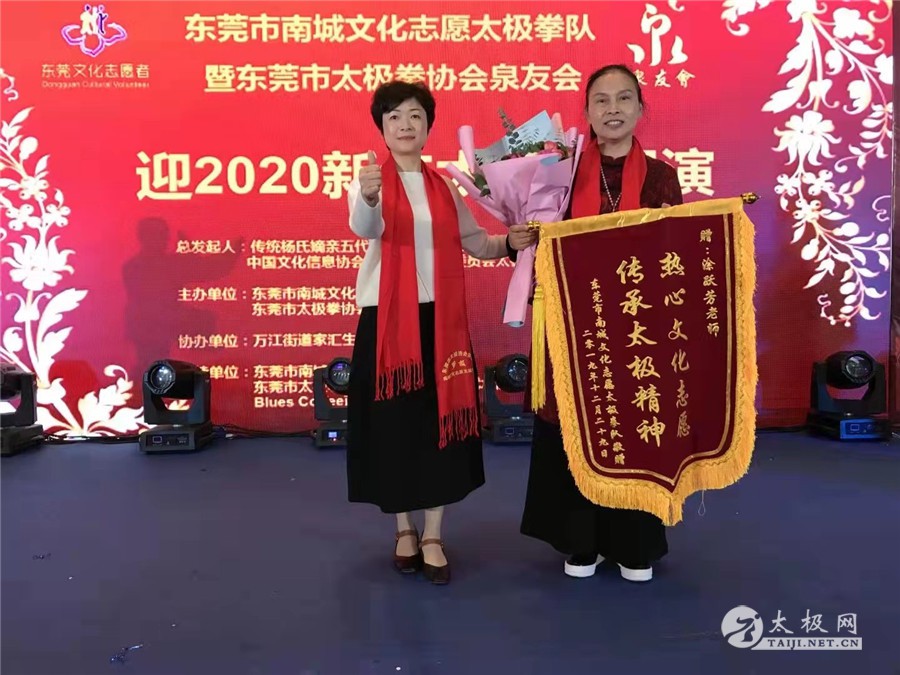 为积极挖掘、表彰、宣传每年度在太极拳传播推广领域表现突出的传承人、拳师,太极网·大拳师联盟连续多届发起举办“太极网传播盛典年度表彰活动”。 2021年度获奖名单隆重推出,杨式太极拳第七代传人、东莞市太极拳协会副会长涂跃芳荣膺2021年度十大“年度杰出传播奖”称号。 涂跃芳,杨式太极拳第七代传人,师承傅清泉。一级社会体育指导员,太极拳一级教练员,太极拳一级裁判员,健身气功一级指导员。现任东莞市老年大学特聘传统杨氏太极老师、东莞市工人文化宫特聘太极老师、东莞市南城文化志愿太极拳队队长兼老师、南城宏图社区太极顾问、万江志协特聘太极拳教练、东莞市阳光雨党群驿站太极拳老师、中国文化信息协会武术文化专业委员会理事、东莞市太极拳协会副会长。 涂跃芳,1993年在湖北应城做个体户时候时常头晕,故而结缘太极拳;2013年应拳友邀约加入武汉市黄陂区太极拳协会,得到了王维民老师、李卫民老师及众师兄妹的精心指导,拳技飞速进步,多次参加比赛荣获奖项无数;后拜世界永年太极联盟主席、传统杨氏第五代嫡系传人傅清泉为师,成为其入室弟子,经过师父的悉心教授和正确指导,加之多年的刻苦研学以及与拳友们的切磋交流,熟练掌握了传统杨式太极拳85式/13式/28式、内家7式、循环8式、13式太极刀、28式太极剑、国家竞赛套路太极拳、新编八法五步、28式/24式/32式/40式/42式/48式/36式太极刀、24式/32式/42式太极剑、49式武当太极剑、太极莲花扇、功夫扇、八段锦以及六字决、易筋经、五禽戏、马王堆导引十二功法等健身气功。 2012年至今,涂跃芳前往东莞谋求自身的进步和发展,为太极拳事业而执着奋斗,期间陆续考取了国家武术资格证、太极拳一级教练员、一级国家社会体育指导员、太极拳一级教练员、太极拳一级裁判员,健身气功一级指导员、二级裁判员,并荣获中国文化遗产保护传承人称号。 作为傅清泉的入室弟子,东莞市内就涂跃芳一人,她深感传承杨式太极拳的责任重大,付出了比别人更多的努力。初到东莞的几年,她以自己为圆心,先影响身边的人,带领着小区的太极拳爱好者习练太极,后来经过不懈的坚持和长期的努力,练拳的人数逐渐增多,增长到了30余人。 2017年3月,涂跃芳带领着三十多位练习者加入东莞市太极协会,积极带领队员参加广东省、市级比赛,其组织编排的集体项目曾荣获广东省赛二等奖,收获其它奖项无数,优异的成绩让其积攒了不少的人气,在东莞城区小有名望。 2017年,在东莞结识了南城文化志愿者指导员陈粒粒,在陈老师的帮助下成立了南城文化志愿者太极拳队,同年加入了东莞市文化志愿者协会演艺联盟成员单位,并多次获得优秀团队及优秀领队称号。经人推荐,受聘于东莞工人文化宫担任太极拳老师,因为精湛的拳技、新颖的教学方式,每一期学员都爆满;同时,她组织带领学员参加结业演出,深获领导们好评,并被评为东莞市文化宫优秀教师。后又陆续担任东莞市老年大学传统杨式太极拳老师、东莞市南城文化志愿者太极拳队队长兼老师、南城宏图社区太极顾问、万江志协特聘太极拳教练、南城阳光雨党群驿站等单位特聘老师;并于2019年担任太极进社区惠民公益培训老师兼教练,以无私奉献的姿态、坚守初心的信念,真诚地帮助每一位乐于学太极的人,让他们少走弯路,其为太极拳传承勇于当先、永远向前的精神,赢得了拳界的赞誉,被评为“广东省优秀指导员”(当届只有四人获得此项荣誉),其事迹也被刊登在国家体育专刊杂志;同年,出任东莞市太极拳协会副会长,任职期间勤勤恳恳、任劳任怨;后于2020年担任东莞市阳光雨党群驿站太极拳老师。