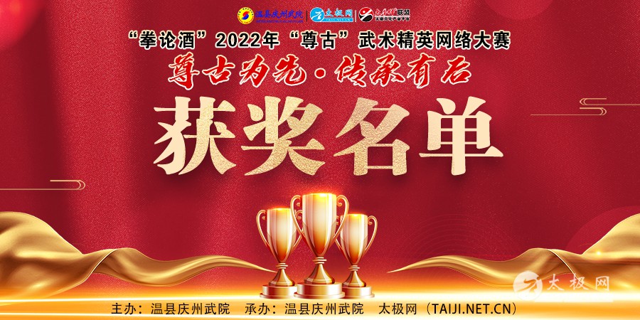 “拳论酒”2022年第三届“尊古”武术精英网络大赛经过5天网络展播持续高能燃烧圆满收官。本届赛事以“尊古为先·传承有后”为主题,依托“互联网+武术”传播手段,创新武术传播模式,对“尊古”太极体系发展进行的一次的网络“大阅兵”,从而集中展示扩大尊古武学思想影响力。大赛的策划和组织得到了太极拳发源地温县相关单位及各地尊古太极拳组织和广大武术爱好者的大力支持,自报名启动至展播仅一月时间,受到了广大拳友和团队的积极响应和参与,最终经组委会审核通过,511部参赛作品入选展播,受到拳界广泛肯定和赞扬。 大赛全体同台展播点赞从3月11日开始,截至15日17:00收官,平台累计网络访问量216余万次,投票点赞38余万次,广大拳友们互动留言频繁刷屏,连续5天燃爆太极人的朋友圈,互联网赋能“尊古”武学成为武术圈一道亮丽的风景线。 本着"公开透明、客观全面、权威公正"的评审原则,在大赛展播点赞的网络基础上,组委会邀请专业裁判员组成强大的评审阵容为大赛裁判工作提供坚实保障,让大赛兼具观赏性和权威性。 现迎来了万众期待的奖项公布阶段。在此,大赛组委会向广大参赛选手、评委会以及关注大赛的拳友们表示衷心感谢。大赛颁奖典礼将择期举行。 现将大赛获奖名单公布如下(排名不分先后) 中年组陈式太极拳一等奖 350 潘益敏 347 金剑荣 348 徐美秀 429 渠冰 341 许加亭 196 汪士亮 477 杨学华 321 邵健 483 芦俊 345 左莉莉 104 陈琳 137 王松山 514 Anthony Relator 531 马明启 338 龚保勤 99 查美珍 349 施惠刚 76 陶宗林 240 蔡自侠 150 郑延滨 246 孙华中 440 米国永 247 魏飞鹏 479 陈菲 459 张琴 316 富熙主 244 张军 243 饶彩霞 102 严龙生 106 甘菊芳 384 陈奕 254 万田标 351 陈建雄 188 林冬梅 151 王秋梅 101 桂红 181 李斌 460 曹开奎 528 陈凤吟 550 刘军卫 509 郑光连 441 陈福柱 532 李昭红 281 陈骏 508 朱媛媛 439 赵小通 545 郭立新 330 王晓丽 229 杨拉妹 543 秦向红 432 何安荔 34 谢嘉敏 416 马海明 82 董钊藩 268 胡自力 420 陈嫣 23 马坤 445 王洪武 382 李刚 276 陈春梅 250 陆培燕 407 林章秀 495 谈燕 490 佘静 519 黄均玉 320 王秀君 86 许林福 504 丁洁 中年组陈式太极拳二等奖 548 傅翠英 109 陈胜刚 392 王敏 326 郭岩红 428 徐文洁 433 苏剑华 203 张国庆 249 安华 232 陈凤 190 李荣玲 518 IreneHu 200 张建闻 112 蔡伟珍 391 金峰 403 曾未然 352 阮宏 353 陶金华 319 李忠庆 179 刘可 413 陆富 395 周金英 304 赵永平 362 庞丽珍 39 靳庆民 100 郑卫兵 114 邝宪宜 141 刘林鑫 40 Nelson Tseng 344 邹冰 157 王超 396 陈海燕 35 林志清 405 余昌德 85 陈国林 537 韩昌容 337 李文波 32 陈选道 448 全连 33 黎明 84 刘国勇 291 周晓星 507 朱莉 500 周晓梅 496 夏红梅 322 周晶 195 王大华 358 王程 中年组陈式太极拳三等奖 81 陈涛 22 谢爱保 37 赵文江 245 张堃 197 徐华 189 黄文勋 248 刘群超 412 叶田 222 刘光伟 194 任代忠 41 Junko Tsuchida 286 张文雅 38 韦伟 36 余样生 171 鹿伟军 241 孙克梅 185 贺慧 406 肖霞珍 415 潘翠珍 521 沈松 393 王朝良 332 罗朝炎 417 蒋以新 418 陈明根 465 曾国 354 张伟莲 中年组陈式太极器械一等奖 266 顾秀萍 383 李刚 77 陶宗林 451 刘辉 423 冯军 515 Anthony Relator 103 严龙生 271 胡自力 289 张文雅 510 郑光连 237 苏秋来 340 王克敏 442 周鸿杰 363 庞丽珍 279 陈春梅 404 曾未然 178 王晓丽 385 顾秀萍 278 陈春梅 534 李昭红 284 刘长龙 283 刘长龙 290 周晓星 314 常丽琴 327 齐凤洲 315 杨俊红 331 胡世平 199 胡光惠 中年组陈式太极器械二等奖 269 胡自力 481 包德蓉 270 胡自力 452 王江 474 何家洪 280 陈春梅 517 Anthony Relator 277 陈春梅 552 胡毅洁 535 罗玉容 544 权玉乐 285 刘长龙 287 张文雅 476 李爱华 中年组陈式太极器械三等奖 288 张文雅 294 李舒宏 480 邹玲 155 郑延滨 346 左莉莉 516 Anthony Relator 450 李成梅 551 骆紫梅 中年组尊古太极拳一段一等奖 140 季建勇 523 胡光碧 131 戈镭 83 王素平 132 张贝易 135 林秀国 139 孙历耘 136 徐银红 152 陈华媚 130 陈惊雷 299 陈昶威 267 胡自力 282 刘长龙 293 李舒宏 中年组尊古太极拳一段二等奖 238 李建华 133 蔡晓春 128 陈美华 145 吴崇肖 154 倪大海 146 南翔 143 陈雷 129 虞伟华 153 赵秀媚 127 陈建平 142 方顺平 298 黄懿韵 中年组规定太极拳、健身气功及其他武术套路一等奖 180 胡世平 463 李建华 471 罗方华 47 刘光付 162 高俊杰 46 杜珊影 386 陈少娟 472 罗方华 533 李昭红 493 谈燕 177 王晓丽 198 胡光惠 497 夏红梅 492 佘静 503 丁洁 中年组规定太极拳、健身气功及其他武术套路二等奖 191 朱永芳 536 罗玉容 182 王秀琼 491 佘静 414 陆富 186 刘红梅 224 陈明芳 11 苗沿秋 494 谈燕 225 韩昌容 187 刘红梅 461 陈美英 15 潘辉 193 秦晓侠 223 陈升贵 中、老年组其它太极器械一等奖 8 李红兵 546 谷素芹 192 朱永芳 524 吴海金 中、老年组其它太极器械二等奖 527 曾庆慧 462 陈美英 12 王兆利 17 潘辉 16 潘辉 老年组陈式太极拳一等奖 311 朱然 329 王华照 325 刘凤霞 342 张秀荣 339 王克敏 239 赵元珍 158 李烔珠 431 金仲鑫 397 刘书跃 111 贾翠环 13 卢秋盛 110 贾翠环 184 姜夕碧 361 周小红 297 虞雪兰 499 李蓓 老年组陈式太极拳二等奖 501 朱春玲 24 李相宾 466 周丽华 522 周谦 228 许瑞华 159 白凡敏 506 王兆云 292 戴龙飞 454 燕文芳 444 王春月 296 张进 505 刘晓珊 394 王云玉 317 李长有 老年组陈式太极拳三等奖 408 吴万如 160 潘明星 183 刘文 512 Joan Tay 411 周丽华 227 