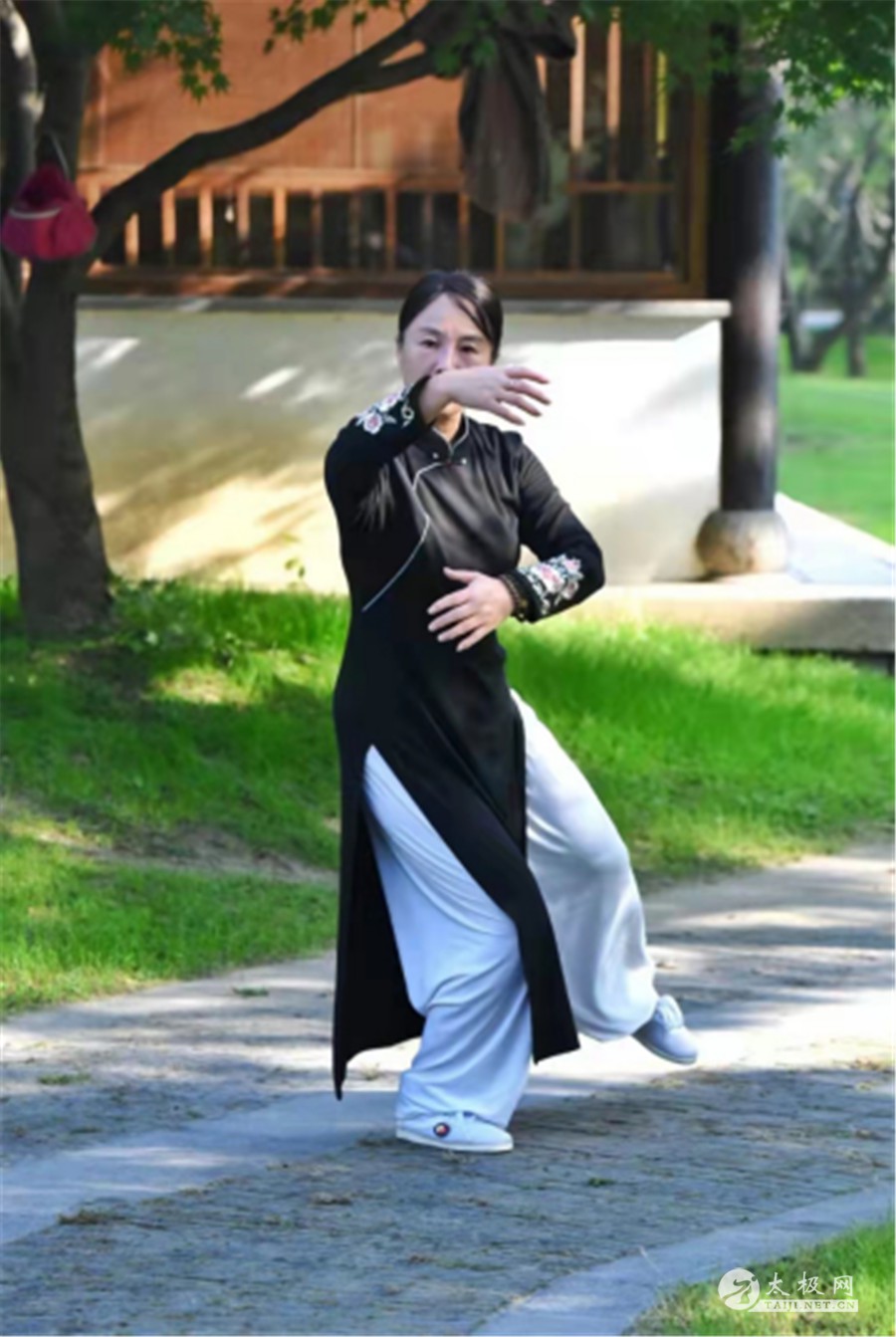 在跟随师父学拳的前三年里,丁婵每天操练杨氏85拳三到四遍,无论是数九寒冬还是盛夏酷暑从未间断。得意于师父的悉心教导,她的拳技进步很快,古琴也突破了瓶颈、水平提升到心中预期的高度。随着习练地越久,她对与太极拳的热爱在心底扎下了跟,越练越痴迷。练拳至今,已十年有余,十年间她深耕拳技、研拳不辍,对于传统杨氏85式太极拳有了自己体悟。 丁婵认为:学拳之初先要先盘架子,每一个招式的高度、角度都要严格按照规矩拳理规范自己。招熟之后,要懂得用意,如此才能达到气与力合,动作才能放松自如,轻灵流畅。丁婵将自己对于太极拳和古琴的体悟相糅合,练拳中操琴,操琴中练拳,经过长期的习练,逐渐将两者相融贯通,琴韵拳韵相互渗透,形成了她自己的琴太极风格,拳法里多了份古琴的幽远苍劲,琴声中多了份太极的悠然含蓄。 丁婵目前在扬州、杭州两地教拳,并自编了杨氏太极拳37式进行传授推广,深受学员们的好评。她说现在取得的成绩要感谢自己的师父。师父自幼年学拳,一生都在习练杨氏85式,他不仅是一位名师,还是一位杰出的电力科学家。无论是工作还是教拳,他都是一位治学严谨、德高望重的明师。回忆起与师父相处的点点滴滴,勾起她太多的记忆。 曾经,在师父答应她教授她太极拳的第二天,他们约好了六点半开始练拳,可是当天早上突然下起了大雨,当她赶到练拳地点的时候,师父已经到达、冒雨在等着她。当时的她感动之余,更是庆幸可以遇见这么一位德行高尚的师父,心底下决心一辈子都会跟随师父学拳。 曾经,在师父的课堂上,也是她上师父的第一节课上,她带了一个笔记本,上面记录着师父的授课内容。师父发现之后,开心地表示:他教了不少的学生,她是第一个带着笔记本来学拳的学生,相信她一定能打好拳,还能有所成就。之后,师父便收她为弟子,是开山弟子,也是关门弟子。 如今,师父已经80岁了,步入耄耋之年,可是依然精神矍铄,步伐稳健,每天晨练未曾间断,依旧风采不减、很好的领练85式太极拳。师父于丁婵而言,是精神依托,是方向,是道路,也是光明,指引和照亮着她前行的太极路。 2021年,丁婵率领琴太极团队参加第七届太极拳网络视频大赛,荣膺2021年度最美太极团队的称号。丁婵表示,这次参赛视频是她带领琴太极团队在西安世博园一处树林茂密的空地进行演练录制的,该视频曾在彩视上发表,一个月内有3万余人的点阅量,至今点阅量已经超过10万人次,本次该视频代表琴太极团队出战赛事,荣获最美太极团队的殊荣。感谢大赛组委会和评委专家对琴太极团队拳技的肯定和好评。感谢太极网为拳友们提供一个可以展示风采和交流学习的平台,能够和如此多高水平太极表演的团体同台竞技深感荣幸。本次参赛让琴太极团体全体成员打开了眼界,欣赏学习了更多的拳技。并表示琴太极团队愿意和太极网开展更深维度的联系和合作,参加太极网组织的赛事、直播活动,发表有关太极拳的相关文章,为太极拳的普及和推广做出更多的努力。 获奖视频:琴太极集体杨氏85式