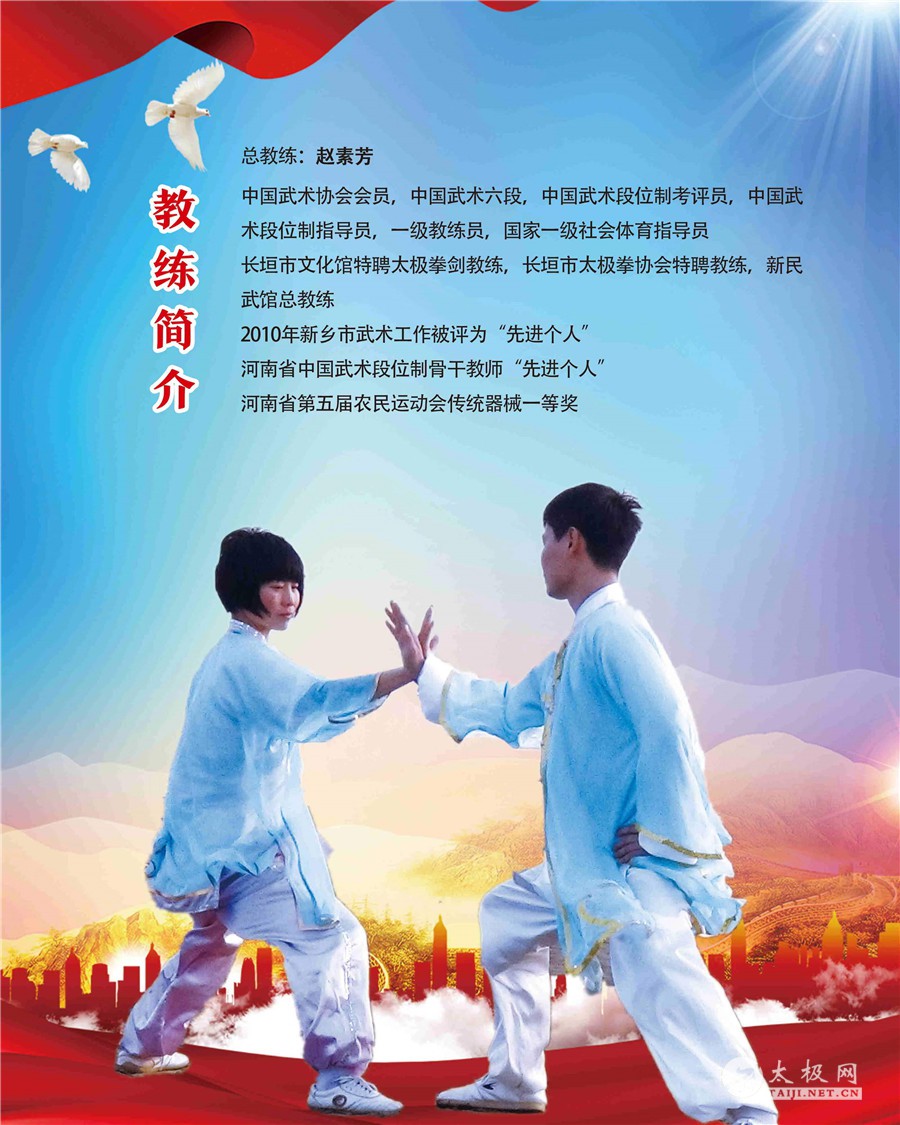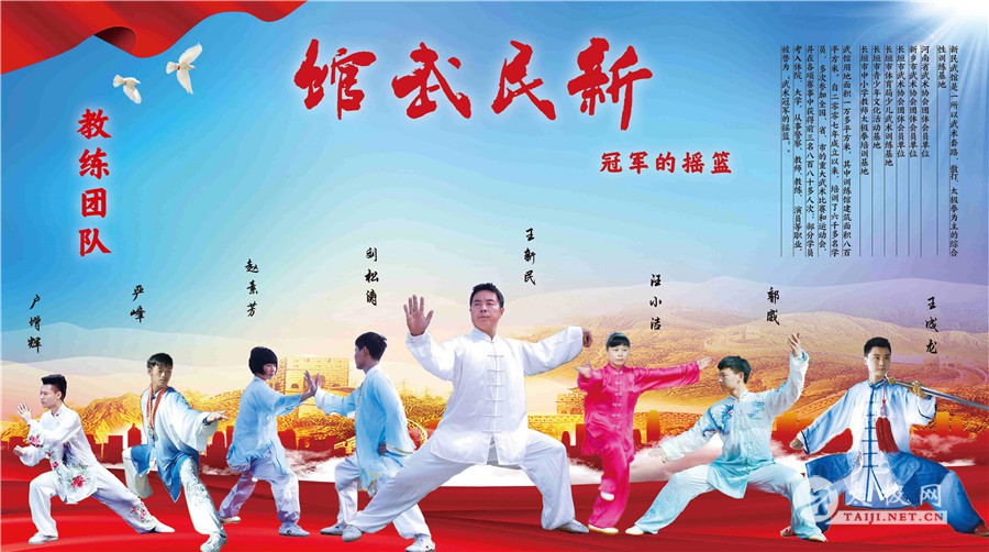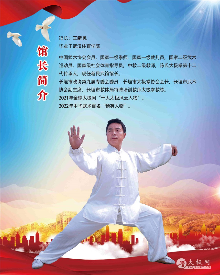 新民武馆是一所以武术套路、散打、太极拳为主的综合性训练基地,是河南省武术协会团体会员单位、新乡市武术协会团体会员单位、长垣市武术协会团体会员单位、长垣市体育局少儿武术训练基地、长垣市青少年文化活动基地、长垣市中小学教师太极拳培训基地。 武馆用地面积一万多平方米,其中训练馆建筑面积八百平方米。自二零零七年成立以来,培训了六千多名学员,多次参加全国、省、市的重大武术比赛和运动会,并在各项赛事中获得前三名八百八十多人次;部分学员考入体院、大学,从事警察、教师、教练、演员等职业,被誉为“武术冠军的摇篮”。 馆长:王新民 毕业于武汉体育学院 中国武术协会会员,国家一级拳师、国家一级裁判员,国家二级武术运动员,国家级社会体育指导员,中教二级教师,陈氏太极拳第十二代传承人,现任新民武馆馆长。 长垣市政协第九届专委会委员,长垣市太极拳协会会长,长垣市武术协会副主席,长垣市教体局特聘培训教师太极拳教练。 2021年全球太极网“十大太极风云人物”。 2022年中华武术百名“精英人物”。 教练:王成龙 中共党员 毕业于河南大学武术与民族传统体育专业 运动员等级:国家二级 裁判员等级:国家二级 社会体育指导员水平:国家一级 中国武术四段 2012年新乡市第十届运动会武术比赛陈氏太极剑金牌 2017年山东济南世界"武林大会"男子太极拳术一等奖 2017年山东济南世界"武林大会"男子太极器械一等奖 2017年“河大杯”太极拳精英赛男子乙组太极器械一等奖 2019年“河大杯”杯太极拳精英赛传统太极器械男子乙组第一名 全国太极拳健康工程系列活动2019年太极拳公开赛男子乙组太极剑一等奖 总教练:赵素芳 中国武术协会会员,中国武术六段,中国武术段位制考评员,中国武术段位制指导员,一级教练员,国家一级社会体育指导员 长垣市文化馆特聘太极拳剑教练,长垣市太极拳协会特聘教练,新民武馆总教练 2010年新乡市武术工作被评为“先进个人” 河南省中国武术段位制骨干教师“先进个人” 河南省第五届农民运动会传统器械一等奖 教练:汪小洁 国家一级社会体育指导员,国家二级拳师,中国武术四段,河南省武术协会会员,二级教练员,长垣市太极拳协会理事。 2017年长垣市第三届运动会 陈式太极拳金牌 陈式太极器械金牌 2017年河南省首届传统武术大赛 太极拳一等奖 太极器械一等奖 2018年河南省第六届太极拳大赛 传统太极拳一等奖 太极器械一等奖 , 2018年河南省第二届传统武术大赛 陈式拳太极拳一等奖 陈式太极器械一等奖2019年河南省第三届武术大赛 太极拳一等奖 太极器械一等奖 2021年长垣市第一届运动会陈式太极拳金牌 陈式太极器械金牌。 报名热线:13569819056 / 15670531555 武馆地址:地址长垣市蒲东南关 |