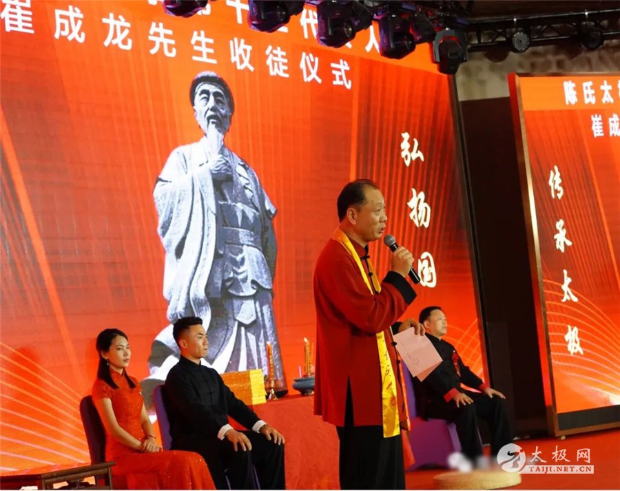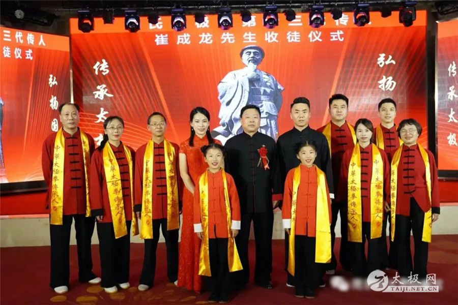 世间百行,无祖不立。太极神功,创自廷公。传数百载,流布五洲。陈氏太极,嫡传正宗。东武弟子,一脉相承。六月十一日下午三时零八分陈氏太极拳第十三代传人崔成龙收徒仪式在南京隆重举行。崔成龙先生的恩师,陈氏太极拳第十二代传人,中国武术七段,非物质文化遗产陈氏太极拳代表性传人,国际太极年会太极十杰,国际太极拳文化传播大使,中华太极拳杰出传承人,郑州东武太极研修院院长张东武应邀出席。 活动特别邀请到了海澜集团创始人、全国政协委员、江苏省武术运动协会主席、江苏省武术运动协会太极拳委员会会长周建平先生担任本次收徒仪式的见证人。 活动还邀请了中共江苏省委统战部非公经济处处长马晓光先生,江苏省体育局武术运动管理中心主任吴勇先生,江苏省体育局武术运动管理中心副主任、江苏省武术运动协会秘书长殷建伟先生,江苏省武术运动协会副主席、江苏省武术运动协会太极拳委员会副会长兼秘书长沈厚锋先生,江苏省武术运动协会副主席、国际级武术裁判张东宇先生,江苏省武术运动协会副主席王海逸女士,江苏省武术运动协会副秘书长、张东武先生入室弟子吴颖女士,江苏省武术运动协会副秘书长张夏静女士,江苏万达原野旅游公司董事长、东武太极研修院南京分院荣誉院长张阅斌先生,江阴市太极拳协会副会长、东武太极研修院新桥分院院长、张东武先生入室弟子朱正洁先生,江阴新桥太极学会副会长强正平先生,江阴新桥太极学会副会长陆斌先生,南京市老年人体育协会太极拳专委会副会长兼秘书长俞敏女士,南京海联物业服务有限公司董事长林建树先生,南京高业房产经纪有限公司董事长赵秀琴女士,江苏中源工程管理股份有限公司总裁丁先喜先生,江苏兴生生物医学工程有限公司董事长李禹诺女士,海澜集团文联副主席孙畅谣女士,海澜东武太极队教练 、张东武老师入室弟子常跃辉先生以及海澜东武太极队的队长们。出席本次收徒仪式的还有崔成龙先生的同门师兄弟郭大强、陈林忠、陈计超、陶安、杨小洪、曾安妮、张健以及东武太极研修院南京分院家人们共 计130余人。 张东武先生讲话 陈氏太极拳第十二代传人,中国武术七段,非物质文化遗产陈氏太极拳代表性传人,国际太极年会太极十杰,国际太极拳文化传播大使,中华太极拳杰出传承人,郑州太极研究院院长张东武先生说,拜师不代表学艺的终止,而是要知道方向,看清身上的担子,加倍努力为太极事业的发展传播做出自己的努力。祝贺弟子崔成龙又添新丁,鼓励弟子们继续将陈氏太极拳发扬壮大。 周建平先生讲话 海澜集团创始人、全国政协委员、江苏省武术运动协会主席、江苏省武术运动协会太极拳委员会会长周建平先生对张东武先生和他的弟子们弘扬太极文化高度赞扬,对崔成龙先生收徒表示祝贺,他表示,太极文化博大精深,魅力无穷,希望与大家一起继续传承发扬太极拳,弘扬中国传统文化,为太极拳的发展作出积极的贡献。主持人宣布仪式正式开始后,恩师张东武带领弟子崔成龙及夫人李瑞祭告祖师爷,敬香!行礼! 祭告祖师爷 预备弟子展示太极拳老架一路拳架 师爷张东武检验预备弟子拳架,肯定预备弟子们认真训练,遵守门规,祝贺顺利通过本次考核。 大师姐瞿小涛领读入门誓词 随后,新入门弟子范永利、张宴生、陈晓、刘何香、张晨淹、吴月明、徐易锐、顾梓萱、顾梓涵行拜师礼、递交拜师贴,崔成龙师父为弟子们一一披挂绶带、传承证书,以示薪火传承。仪式进行有条不紊、庄严肃穆。 弟子们行拜师礼并合影 再传弟子代表范永利向师爷敬茶 师父崔成龙及师母李瑞带领弟子向师爷张东武跪拜,并向见证人及嘉宾鞠躬表示感谢。 新弟子代表陈晓发言 崔成龙先生致辞 崔成龙对恩师张东武,见证人周建平夫妇及莅临的各位领导、嘉宾们表示诚挚的谢意,崔成龙坦言东武太极研修院南京分院在师父的关爱、教导下,在各位领导、社会各界的大力支持下得到了长足的发展,也取得了一些成绩。东武太极研修院南京分院始终秉承以发扬武术之精髓,弘扬武者之精神,传承弘扬陈氏太极拳及其蕴含的传统文化思想为已任,把正宗的太极拳文化带给大家。收徒,续的是前世今生缘分!授徒,继的是国粹传承血脉!崔成龙表示,在今后的日子里,将像师父一样,一如既往的将秉持太极拳传承人的准则,教拳育人,培养出更多优秀的人才,让太极拳传播后继有人,为太极拳事业的蓬勃发展提供强大的助力,肩负好传承和弘扬太极文化的历史使命! 太极名家张东武老师授课 张老师拆招示范 拜师仪式结束后,太极名家张东武老师为在场的弟子和学员们带来了生动且精彩的太极讲座。现场气氛热烈,张老师的精彩授课多次被掌声打断。特别是张老师现场示范如何拆招,大家听的认真练得起劲,纷纷撸起袖子比划,通过实践演习,使大家从太极拳招数细节上领悟的清晰明了,从内涵上有了更深一步的体会。大家纷纷表示,要练好太极拳,传承好太极拳精神,弘扬传统文化,为太极拳的发展贡献自己的力量。 合影留念 来源:南京成龙太极拳馆 |