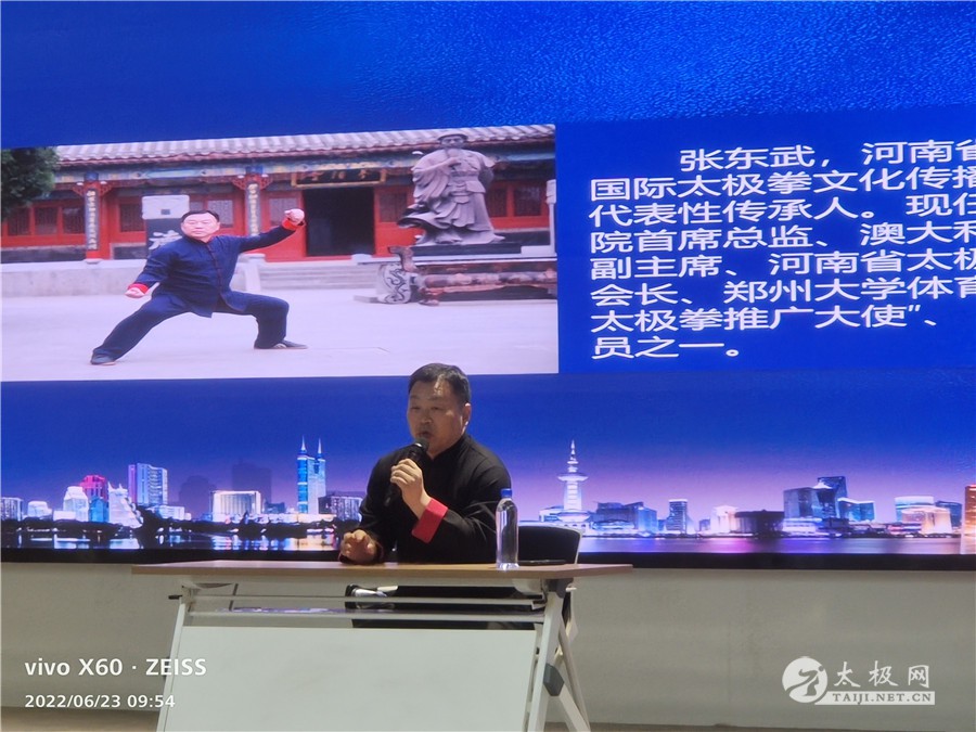 2022年6月23日上午,由甘肃省太极拳协会主办的“喜迎二十大、助力甘肃太极拳发展”太极拳拳理拳技公益讲座在兰州科技创新中心会议室隆重举行,来自甘肃省各市、县的百余名太极拳爱好者参加活动。活动在当地引起极大轰动和热烈反响。 李超、张东武、陈冲、陈志伟(从左至右) 河南东武太极研修院院长张东武、陈家沟太极拳武校校长兼总教练陈冲、陈家沟太极拳功夫学校校长陈志伟等名家及太极网总编李超等赴兰参加讲座。 甘肃省太极拳协会会长刘建华,协会高级顾问郭辉、马忠胜,党支部书记张生彦,秘书长关巧玲,副会长施爱香、张小武、秦川、张晓莉等嘉宾出席活动。 甘肃省太极拳协会会长刘建华致欢迎辞 刘建华代表甘肃省太极拳协会及广大爱好者欢迎太极拳发源地的名师名家和太极网一行来到甘肃,开展高层次的太极拳交流互动。通过此次公益讲座活动,让甘肃地区广大太极拳爱好者感受和学习正宗太极拳,助推西北地区的太极拳传承与推广。 李超受聘为协会高级顾问 张东武受聘为协会高级顾问 陈冲受聘为协会高级顾问 陈志伟受聘为协会高级顾问 随后甘肃省太极拳协会与太极网、河南东武太极研究院、陈家沟太极拳武校、陈家沟太极拳功夫学校等进行了战略合作签约仪式,并聘任李超、张东武、陈冲、陈志伟为甘肃省太极拳协会高级顾问,甘肃省太极拳协会党支部书记张生彦颁发聘书。 太极网总编李超致辞 太极网总编李超在致辞中对甘肃省太极拳协会的盛情邀请以及众位太极名家的支持表示感谢。太极网与甘肃省太极拳协会是多年的“好友”及战略合作伙伴,见证了协会在刘建华会长等骨干精英的带领下发展越来越好,有力推动了甘肃省太极拳事业的传承、推广与普及。双方在线上线下都进行了紧密的合作,连续举办了多届“甘肃省太极拳网络大赛”,线下共同组织了“朝圣敦煌-首届敦煌武术交流大赛”,受到了拳界广泛关注和好评。受聘为协会顾问,倍感责任、压力和动力,后续会加强合作,共同为西北地区太极拳事业贡献力量。 张东武、陈冲、陈志伟、毛红东太极拳展演 张东武名家表演 陈冲名家表演 陈志伟名家表演 毛红东名家表演 张东武名家讲座 陈冲名家讲座 陈志伟名家讲座 甘肃省太极拳协会副会长毛红东主持活动 张东武、陈冲、陈志伟三位太极拳名家进行了太极拳拳法、拳技的名家讲座,为各市县的太极拳爱好者带来了一场文化盛宴,现场掌声不断。与会拳友纷纷表示通过聆听此次名师名家的讲座,对太极拳的理解提升了一个档次,活动在热烈和谐的氛围中圆满结束。 新闻来源:甘肃省太极拳协会 |