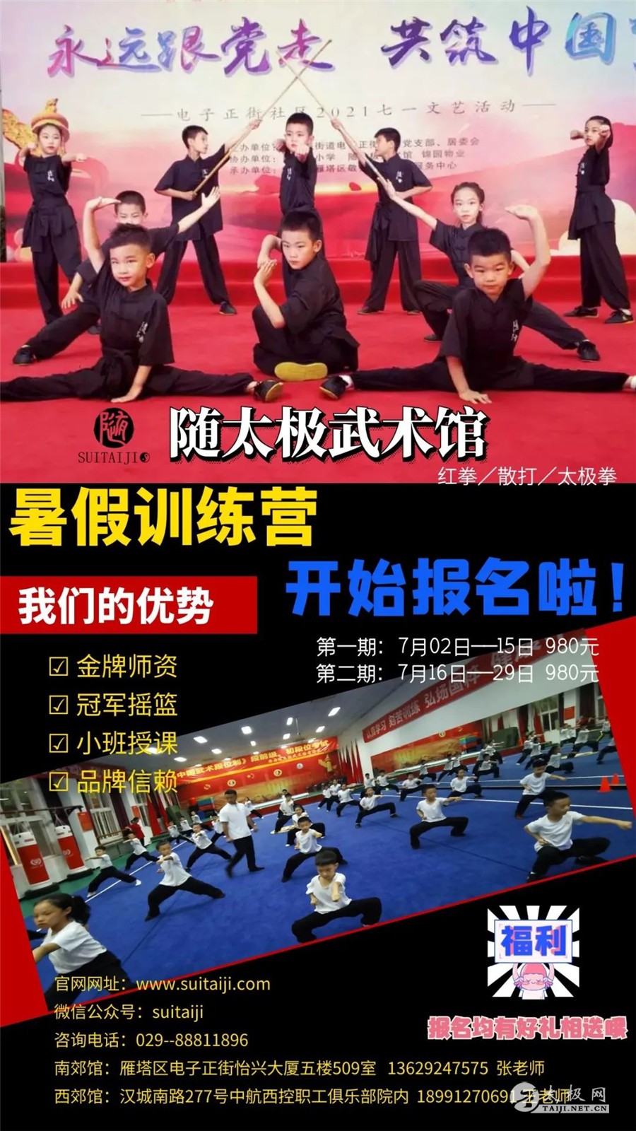 一、习武年龄: 四岁以上少年儿童均可报名 二、学习内容: 武术礼仪、武术基本功、武术套路、自卫防身、散打、太极拳等 三、开课时间: 第一期(12次课):7月2日—7月15日 第二期(12次课):7月16日—7月29日 四、学费:980元/人 优惠政策: 1. 7月2日前报名第一期立减200元,7月3日后恢复原价;7月15日前报名第二期立减200元,7月16日后恢复原价。单期均送训练包一个。 2.两期连报学费优惠至1380元,赠送夏季训练服一套。 注:优惠政策第一条与第二条不能重叠。 五、咨询电话: 13629247575张老师 18991270691王老师 |