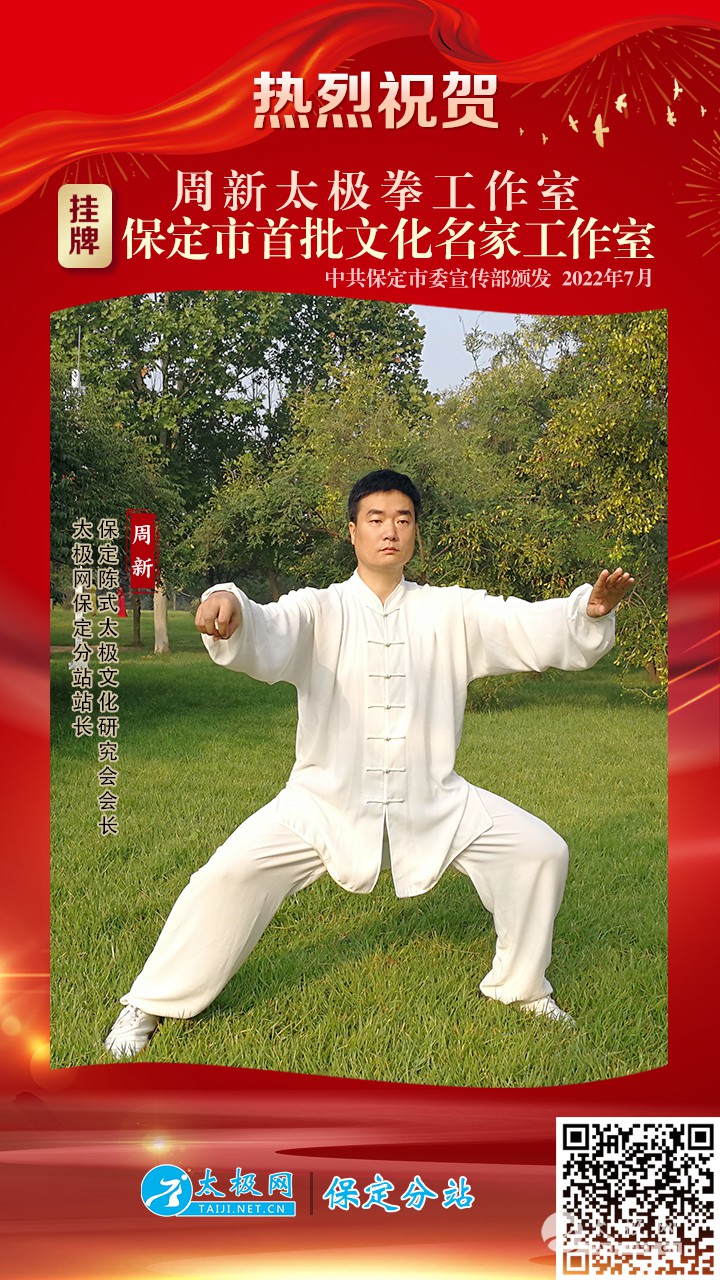 (太极网保定分站 讯)文化共享,文明浸润。2022年7月10日,保定市首批文化名家工作室授牌揭牌仪式在莲池文化中心举行,中共保定市委书记党晓龙出席仪式并揭牌,河北省广播电视局党组书记、局长王离湘致辞,河北省总工会副主席韩立群出席仪式,保定市委常委、宣传部长曹海波主持仪式,保定市委常委、秘书长侯晓平参加仪式。 “周新太极拳工作室”是首批“保定文化名家工作室”中唯一获此殊荣的专业太极拳工作室,体现了中共保定市委市政府对中华优秀传统文化杰出代表太极拳的高度重视与弘扬,也是对太极拳传承人周新老师的充分认可与肯定。于周新老师来说,是太极拳传承人的极高荣耀,更是沉甸甸的责任和担当,矢志不渝传承和弘扬人类非遗太极拳文化,务实深耕争做新时代文明的践行者。 太极拳是世界级非物质文化遗产,起源于明末清初,距今已有400多年历史,目前已传播到150多个国家和地区,全球有3亿多人在习练太极拳。 太极拳富含我国传统养生、医学、哲学等重要文化因素,太极拳的习练不受年龄、性别、环境因素影响,它集修心养性、健身技击于一体,是可以和我们相伴一生的康养文化运动。周新太极拳工作室周新,保定陈式太极文化研究会会长、陈式太极拳第十三代传承人、中国武术协会会员、武术散打裁判员、社会体育指导员、太极网保定分站站长。 因公益授课、助力全民健康等成绩突出,周新先后被中央文明办等单位授予“中国好人”“河北好人”“榜样拳师·感动河北”“保定好人”“保定市道德模范”荣誉称号;被太极网、太极拳传承人联合会、大拳师联盟等联合授予“最美太极人”“太极拳形象大使”荣誉称号。 综合来源:保定陈式太极文化研究会官微 责编:小田 |