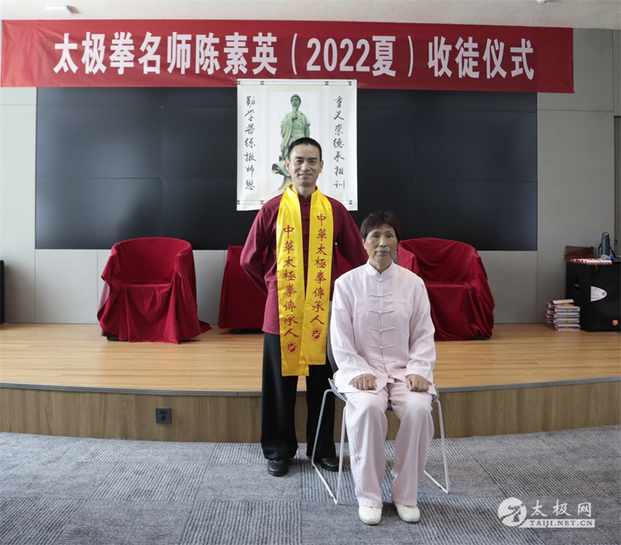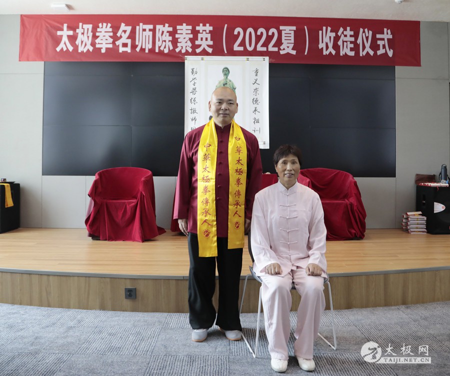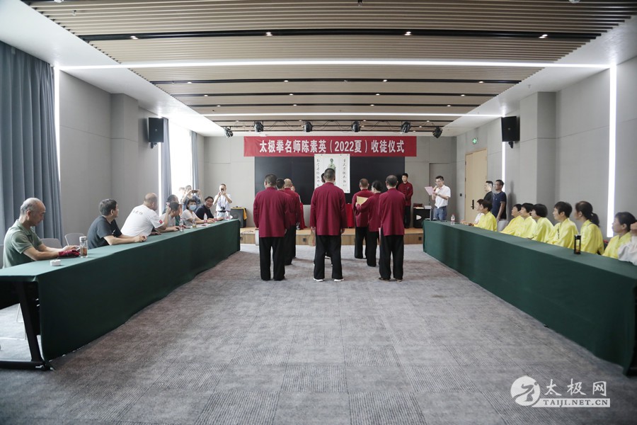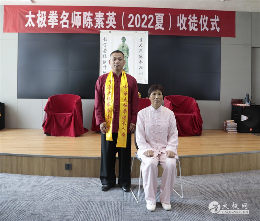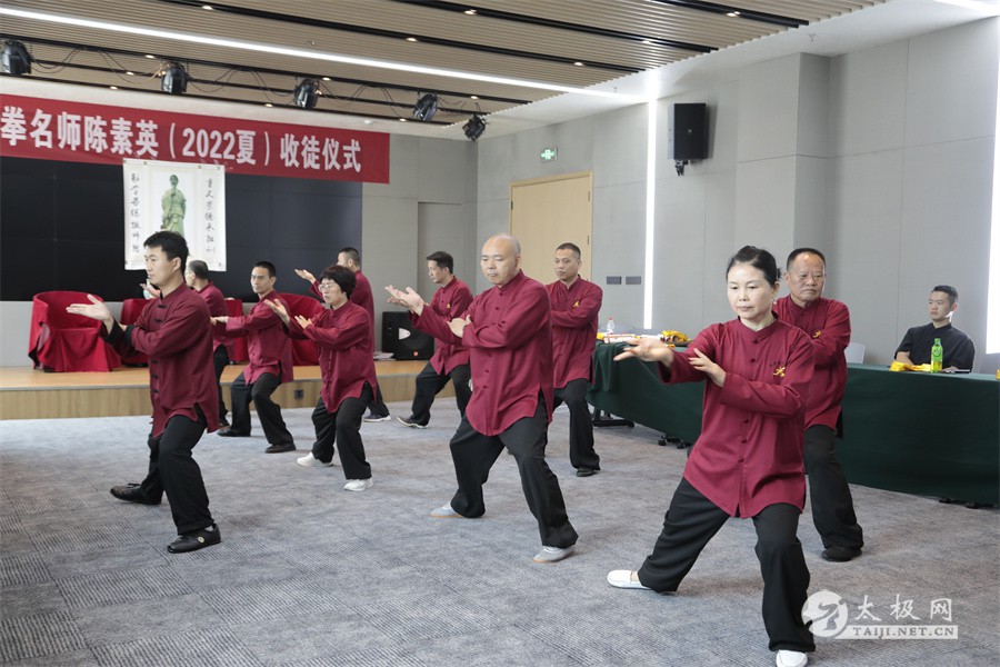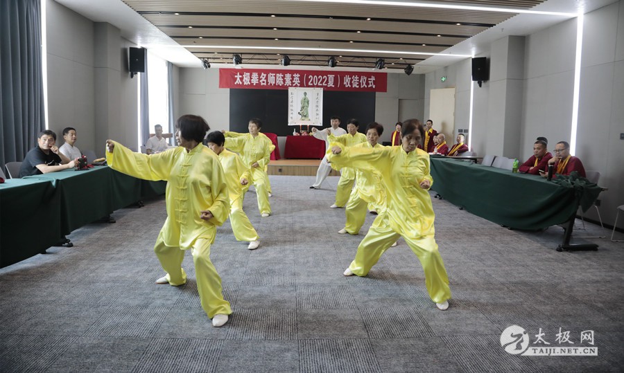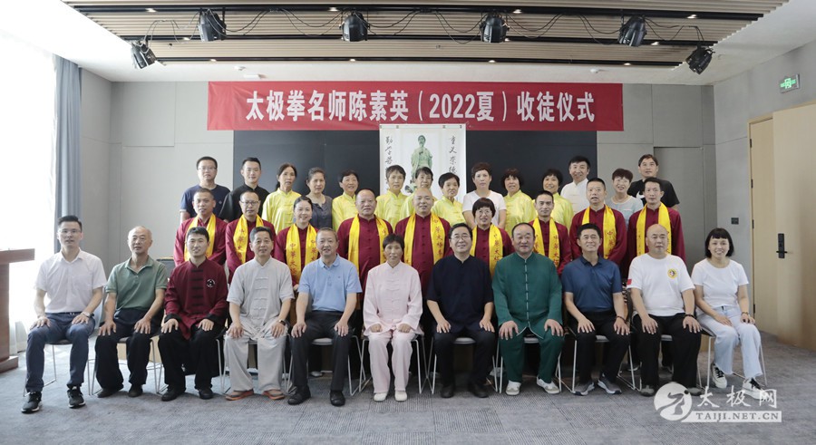 (太极网讯)“师者,传道授业解惑也!”。2022年7月17日,有太极“双刀女皇”之美誉的陈家沟太极拳名师陈素英于温县星程大酒店举行收徒仪式。吴正明、蒋虹、侯金永、汤立华、王涤非、吕梅仙、陈益明、徐新 、邹午军等九名优秀太极拳爱好者通过拜师仪式拜入陈素英老师门下,成为陈氏太极拳第十二代传承人。承担起传承太极拳、弘扬太极文化的使命。
