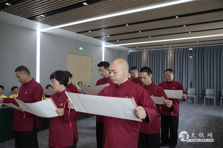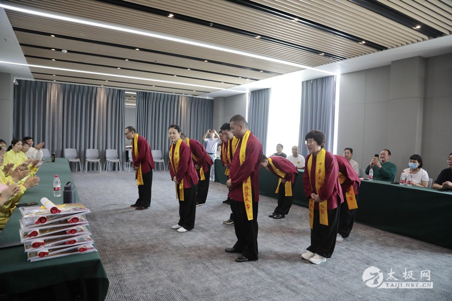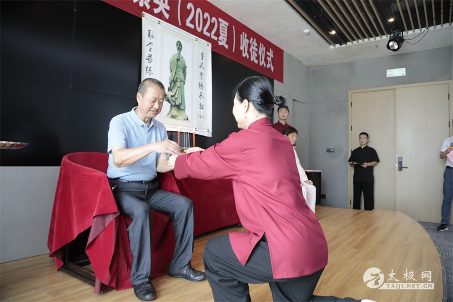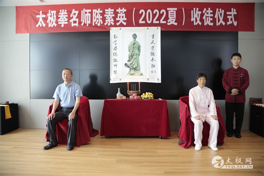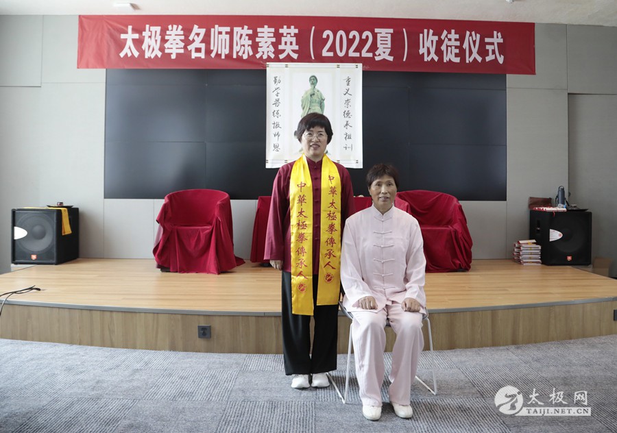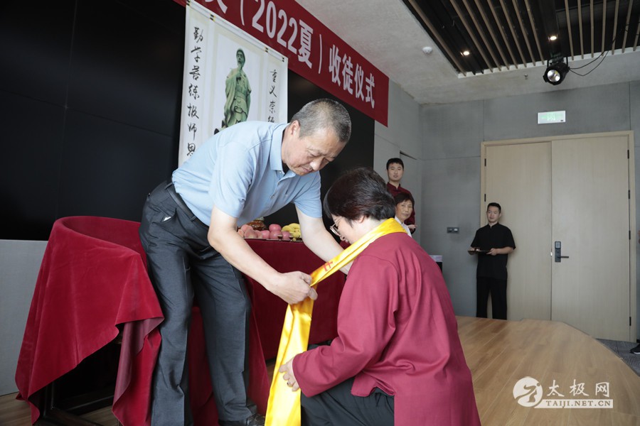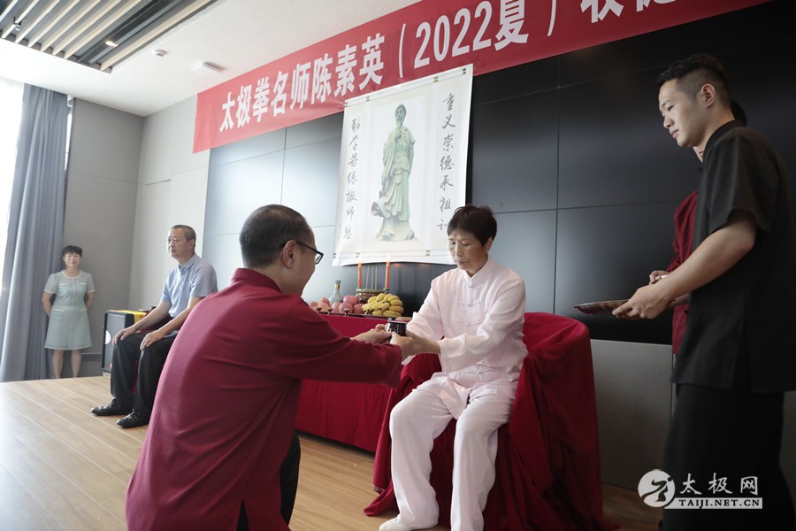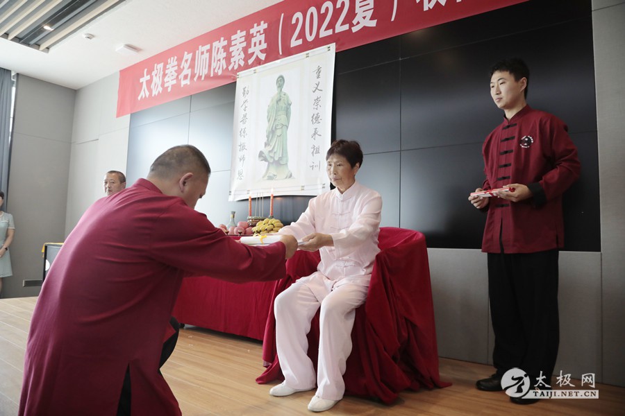 (太极网讯)“师者,传道授业解惑也!”。2022年7月17日,有太极“双刀女皇”之美誉的陈家沟太极拳名师陈素英于温县星程大酒店举行收徒仪式。吴正明、蒋虹、侯金永、汤立华、王涤非、吕梅仙、陈益明、徐新 、邹午军等九名优秀太极拳爱好者通过拜师仪式拜入陈素英老师门下,成为陈氏太极拳第十二代传承人。承担起传承太极拳、弘扬太极文化的使命。