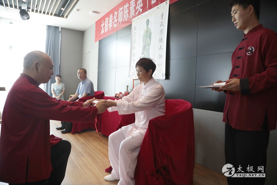 陈素英老师向众弟子训诫表示,希望新入门弟子恪守门规祖训,认真习练太极拳,用心体悟太极文化,真正肩负起传承太极拳,弘扬太极文化的历史使命,为太极拳事业的发展不懈努力,为太极拳的传播和推广努力奋斗。