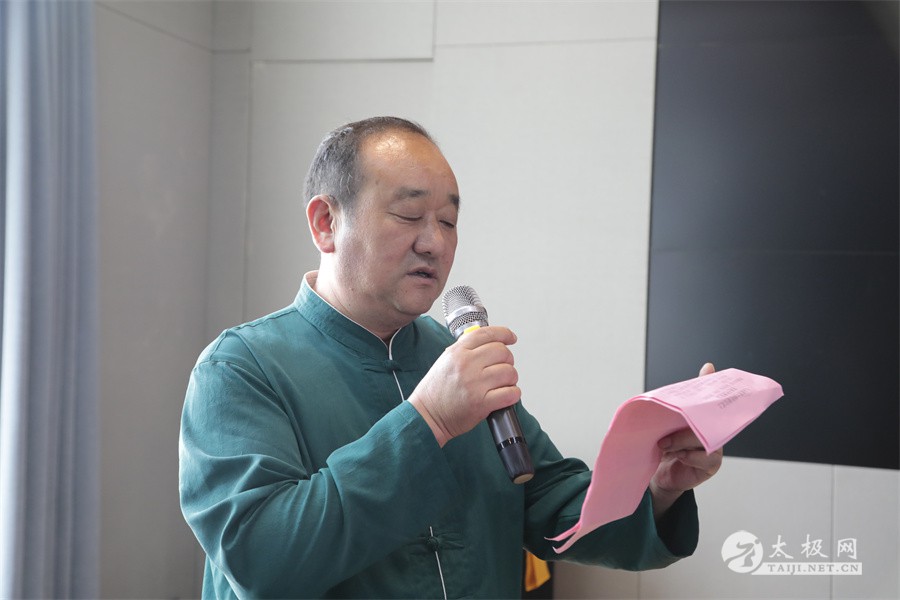 弟子代表涡阳县武协主席程浩发言 师父陈素英向弟子训话