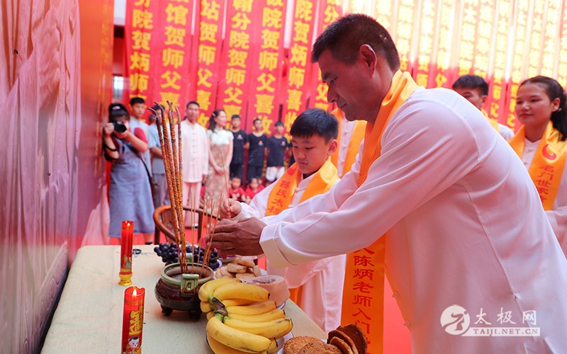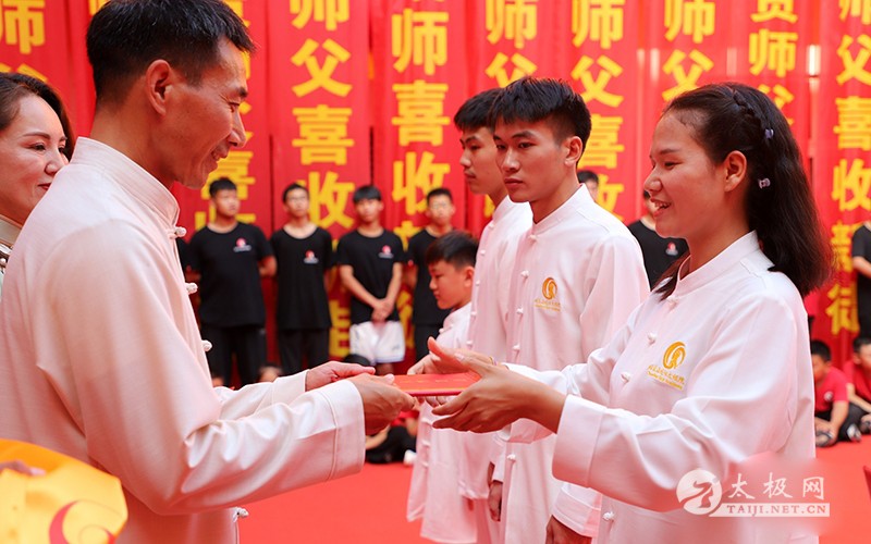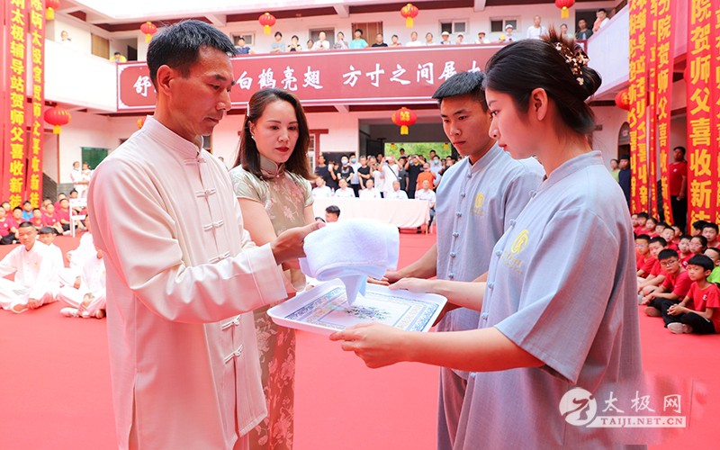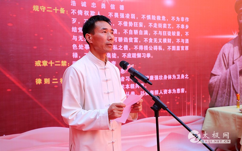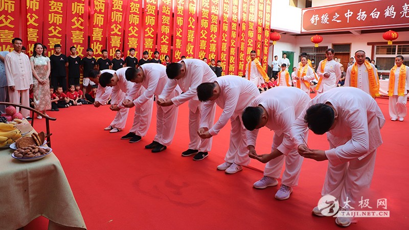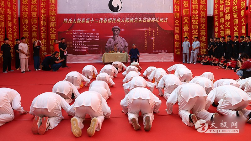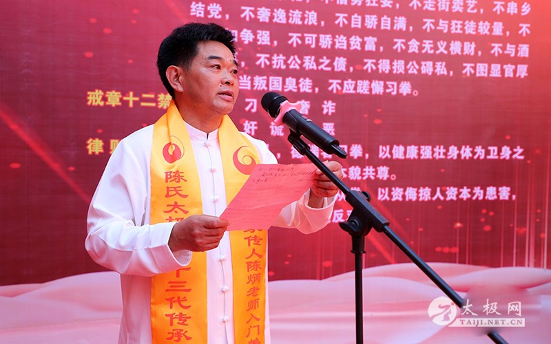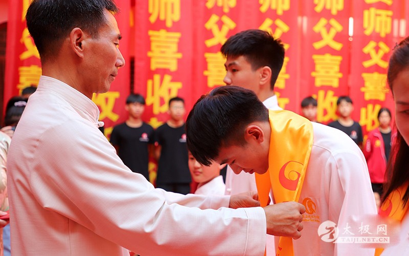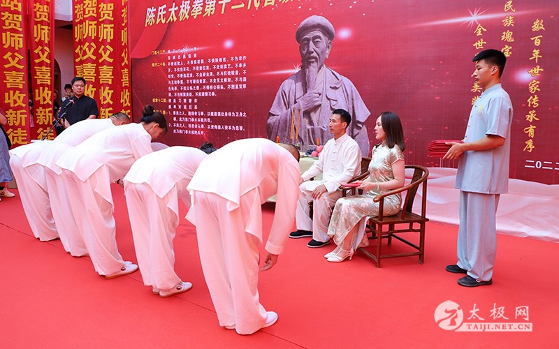 2022年7月20日,陈氏太极拳第十二代传人、省级非遗代表性传承人、陈家沟国际太极院院长陈炳老师收徒仪式在太极拳发源地温县陈家沟隆重举行。11名太极拳爱好者经过重重考核拜在陈炳老师门下,正式成为陈式太极拳第十三代传承人,将与师父陈炳老师一道奔向传承太极文化、共享健康生活的新征程! 莅临现场的领导及嘉宾 温县太极拳武术文化管理中心主任任海林,温县陈家沟景区管理局局长胡腾飞,陈氏太极拳十一代传承人陈小星大师,陈家沟村村支书陈冲,陈家沟陈氏家族理事会主任陈一华以及陈炳老师众多弟子学生出席活动,收徒仪式由陈铁柱主持。 仪式在国歌声中拉开帷幕,首先由陈家沟家族理事会会长陈一华致辞,陈氏太极拳第十三代传承人郑赢全宣读新入门弟子名单及门规戒律,陈炳老师宣读祭祖文。 陈一华致辞 陈家沟陈氏家族理事会主任陈一华对陈炳老师收徒表示祝贺,他对陈炳老师的武德和拳技给与高度肯定,寄望望新弟子们能够努力学习,肩负起传承和传播太极拳的使命。 陈炳老师宣读《祭祖文》 郑赢全宣读新入门弟子名单及门规戒律 太极拳历经百年,生生不息,拜师礼仪也是一种中华传统武术文化的传承。拜师仪式上,准弟子依列向师父师母行拜师礼递拜师帖,师父师母回帖、为新入门弟子披挂绶带,新入门弟子向太极拳始祖及历代宗师敬香,以示薪火相传。最后,陈炳带领新入门弟子向自己的恩师陈小星大师行叩拜礼,感念师恩与培养之情。收徒仪式在领导嘉宾们的见证下圆满礼成。 祭祖仪式 新入门弟子递交拜师帖 向师父师母行跪拜礼 师父师母向新入门弟子回帖及披挂绶带 陈炳老师带领新入门弟子向恩师陈小星行叩拜礼 新入门弟子依次上香 师父训诫 陈炳老师在致辞中寄望新入门弟子练好拳、做好人。以传承人身份严格要求自我,谨守门规戒律,刻苦钻研拳理拳法,成长为太极拳传承发展的中坚力量。将携手大家研修太极,共同把太极拳事业做大做强,造福和谐健康社会。 新入门弟子代表张海发言 新入门弟子代表张海在发言中表示非常高兴能够拜入陈炳老师门下,今后将会谨遵师父教诲,恪守门规祖训,精心感悟太极真谛,为早日成为优秀的太极拳传承人不断努力,为太极拳事业的发展贡献自己的力量。 陈冲致辞 陈家沟村村支书陈冲作为见证人代表致辞,他对众位新入门弟子成为传承人表示祝贺,期待大家携手共同把太极拳发扬光大,同时欢迎大家常来太极拳发源地温县陈家沟。 新入门弟子向现场领导及嘉宾行礼 仪式现场,陈炳老师带领新入门弟子演练太极拳和谐十三式,拳如行云流水,连绵不断,招式切换无迹,一气呵成,在一招一式中,将刚柔并济、内外兼修的太极风韵展现地淋漓尽致,尽显太极风范。 陈炳老师带领弟子演练《和谐十三式》 新入门弟子与师父及嘉宾合影 仪式最后,出席本次收徒仪式的全体嘉宾和新入门弟子以及陈炳老师及师母合影留念,共同记录下这一珍贵时刻。 责编:申烜臣 |
