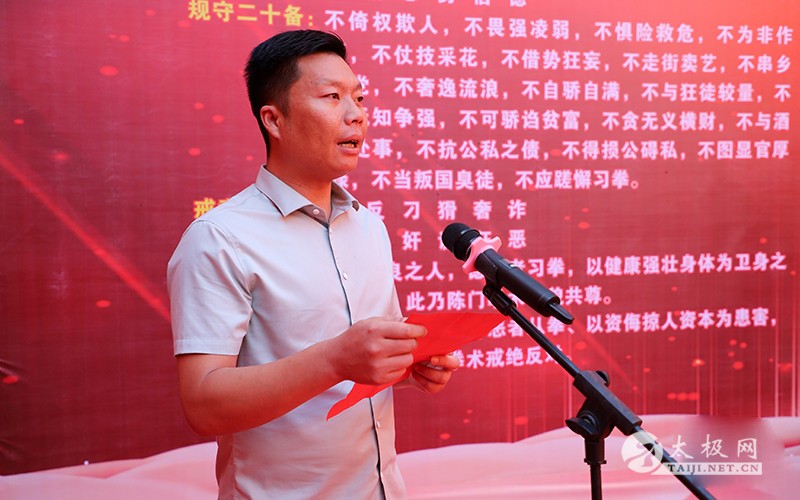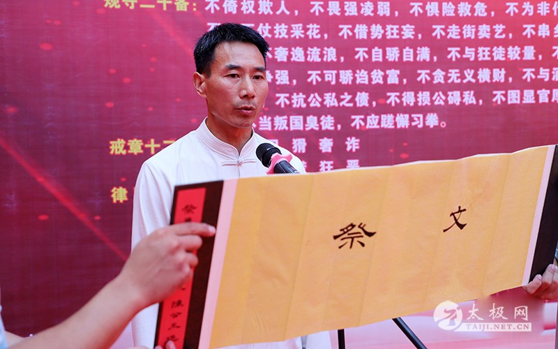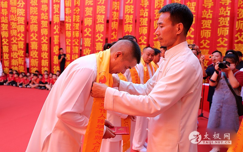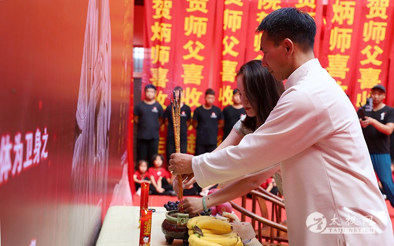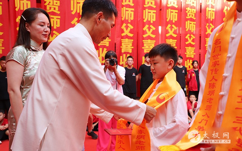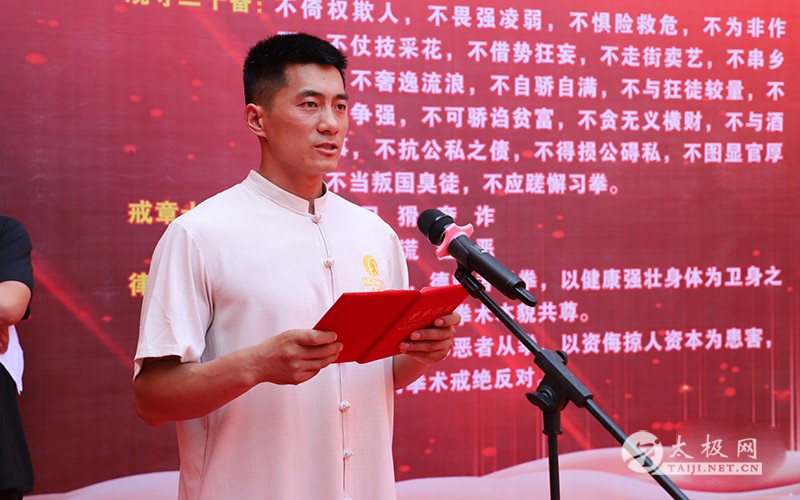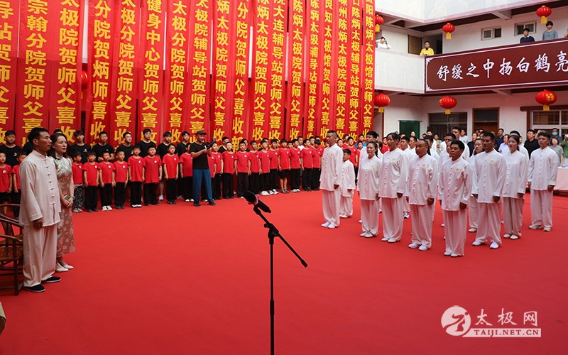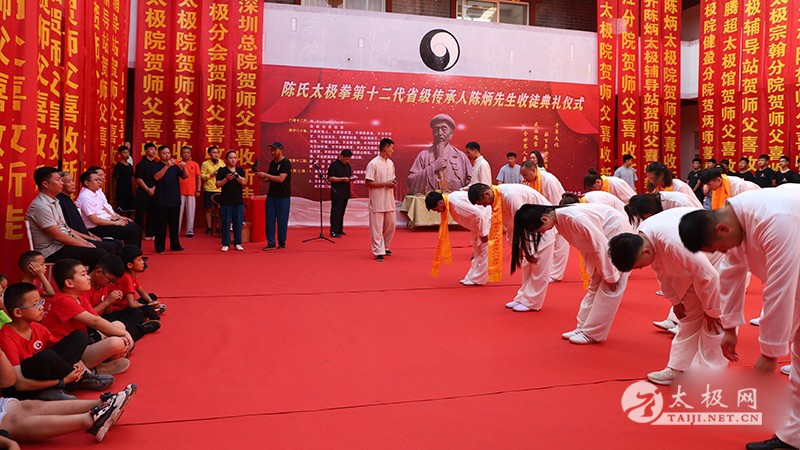2022年7月20日,陈氏太极拳第十二代传人、省级非遗代表性传承人、陈家沟国际太极院院长陈炳老师收徒仪式在太极拳发源地温县陈家沟隆重举行。11名太极拳爱好者经过重重考核拜在陈炳老师门下,正式成为陈式太极拳第十三代传承人,将与师父陈炳老师一道奔向传承太极文化、共享健康生活的新征程! 莅临现场的领导及嘉宾 温县太极拳武术文化管理中心主任任海林,温县陈家沟景区管理局局长胡腾飞,陈氏太极拳十一代传承人陈小星大师,陈家沟村村支书陈冲,陈家沟陈氏家族理事会主任陈一华以及陈炳老师众多弟子学生出席活动,收徒仪式由陈铁柱主持。 仪式在国歌声中拉开帷幕,首先由陈家沟家族理事会会长陈一华致辞,陈氏太极拳第十三代传承人郑赢全宣读新入门弟子名单及门规戒律,陈炳老师宣读祭祖文。 陈一华致辞 陈家沟陈氏家族理事会主任陈一华对陈炳老师收徒表示祝贺,他对陈炳老师的武德和拳技给与高度肯定,寄望望新弟子们能够努力学习,肩负起传承和传播太极拳的使命。 陈炳老师宣读《祭祖文》 郑赢全宣读新入门弟子名单及门规戒律 太极拳历经百年,生生不息,拜师礼仪也是一种中华传统武术文化的传承。拜师仪式上,准弟子依列向师父师母行拜师礼递拜师帖,师父师母回帖、为新入门弟子披挂绶带,新入门弟子向太极拳始祖及历代宗师敬香,以示薪火相传。最后,陈炳带领新入门弟子向自己的恩师陈小星大师行叩拜礼,感念师恩与培养之情。收徒仪式在领导嘉宾们的见证下圆满礼成。 祭祖仪式 新入门弟子递交拜师帖 向师父师母行跪拜礼 师父师母向新入门弟子回帖及披挂绶带 陈炳老师带领新入门弟子向恩师陈小星行叩拜礼 新入门弟子依次上香 师父训诫 陈炳老师在致辞中寄望新入门弟子练好拳、做好人。以传承人身份严格要求自我,谨守门规戒律,刻苦钻研拳理拳法,成长为太极拳传承发展的中坚力量。将携手大家研修太极,共同把太极拳事业做大做强,造福和谐健康社会。 新入门弟子代表张海发言 新入门弟子代表张海在发言中表示非常高兴能够拜入陈炳老师门下,今后将会谨遵师父教诲,恪守门规祖训,精心感悟太极真谛,为早日成为优秀的太极拳传承人不断努力,为太极拳事业的发展贡献自己的力量。 陈冲致辞 陈家沟村村支书陈冲作为见证人代表致辞,他对众位新入门弟子成为传承人表示祝贺,期待大家携手共同把太极拳发扬光大,同时欢迎大家常来太极拳发源地温县陈家沟。 新入门弟子向现场领导及嘉宾行礼 仪式现场,陈炳老师带领新入门弟子演练太极拳和谐十三式,拳如行云流水,连绵不断,招式切换无迹,一气呵成,在一招一式中,将刚柔并济、内外兼修的太极风韵展现地淋漓尽致,尽显太极风范。 陈炳老师带领弟子演练《和谐十三式》 新入门弟子与师父及嘉宾合影 仪式最后,出席本次收徒仪式的全体嘉宾和新入门弟子以及陈炳老师及师母合影留念,共同记录下这一珍贵时刻。 责编:申烜臣 |