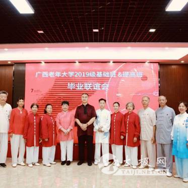 圆我太极梦,最美夕阳红! 广西老年大学2019级陈氏太极拳提高班&基础班毕业联谊会 2022年7月29日,对于广西老年大学2019级陈氏太极拳提高班、基础班的学员们来说是一个重要的日子!因为,今天他们毕业了! 这天的上午,他们来到广西南宗乐道太极院聆听了广西老年大学拳剑专业特聘教授董志鸿老师的最后一节课《太极功法与太极拳的关系》。董老师从最基础的桩功功法开始讲起,详细解析了功法的重要性、功法与太极拳套路的关系,以及练习过程中的变化与应用。让学员们好像又回到了刚刚开始学习太极拳的那间教室一样。课堂上,董老师告诉学员:太极拳的每一个动作虽然千变万化,但定势时都要回到桩功的状态,这就是所谓的“一步一桩”;太极拳要做到“慢而不断,快而不乱”等等。 董老师在给学员上课 学员们在乐道太极院宽敞的大教室上课 课程即将结束时,董老师不忘叮嘱学员:结业不等于结束,太极拳学习没有止境。太极拳学习的毕业,是太极拳练习的开始,是进入了一个新的学习阶段! 最后,董老师为每一位学员颁发了由乐道太极院为学员们个人订制的“结业证书”,并与学员合影留念。 董老师给19级提高班学员颁发“结业证书” 董老师为19级基础班学员颁发“结业证书” 董老师为太极侠侣颁发“结业证书” 董志鸿教授、尹培莹老师与提高班学员合影留念 董志鸿教授、尹培莹老师与基础班学员合影留念 当天下午,由两个毕业班班委组织的《广西老年大学2019级基础班&提高班毕业联谊会》在春晖大酒店隆重举行! 左:毕业班学员代表曾民 右;21级学员代表党晓华 毕业班学员曾民代表毕业班全体学员讲话,他回顾了在校五年(基础班2年、提高班3年)太极拳的学习生活,肯定了乐道太极院的办学方式。21级学员党晓华代表区、市老年大学基础班学员感谢毕业师兄师姐的“传帮带”精神,毕业班师兄师姐在教室中流下的汗水,将是他们要继承的精神。 董老师在联谊会上讲话 老师,您辛苦了!学员代表(左起)张甦、黄有瑞、党晓华献花 19级提高班班长毛光明(右二)、基础班班长容国辉(左二)向董老师、尹老师、王老师赠送锦旗。锦旗内容:武德高尚,桃李天下。师恩难忘,铭记心上。 董老师为毕业班学员代表授“广西南宗乐道太极院徽章”,上图为提高班学员代表,下图为基础班学员代表。 联谊会的第一个小高潮是全体与会人员合唱《乐道是我家》——我有一个梦,我有一个家,我是乐道人,乐道是我家。这首歌是由董志鸿老师作词,卫东老师原唱。朗朗上口的歌词,激情荡漾的旋律,激起了所有学员的心灵共鸣!他们都自觉地站了起来,把个人演唱演绎成了全体合唱,掀起了本次联谊会的第一波高潮! 红彤彤的功夫扇开启了联谊会的表演的序幕 21级区、市老年大学学员代表表演的老架一路十三式 学员葛红、李荣芳夫妻表演了《老师,老师,我想你》,表达了对老师的爱意与尊敬。 多次获得赛事金牌的学员曾民、覃家远表演陈式太极拳42发劲 王铭剑、尹培莹老师带领学员表演的拳剑串烧迎得阵阵掌声 终于迎来了令人激动的时刻!联谊会压轴节目开场啦,董志鸿老师迈着稳健的步伐走上舞台开始了表演。 董老师的表演将联谊会推向了高潮,学员们意犹未尽。 我们毕业了!青春可以不散场,银发不输黑发人!我与太极结良缘,健康伴我度余生!祝福所有老年学员:老有所学,老有所为,老有所乐! 本站责编:申烜臣 |