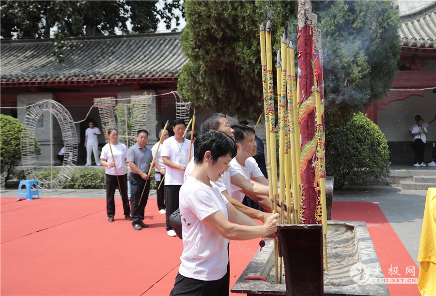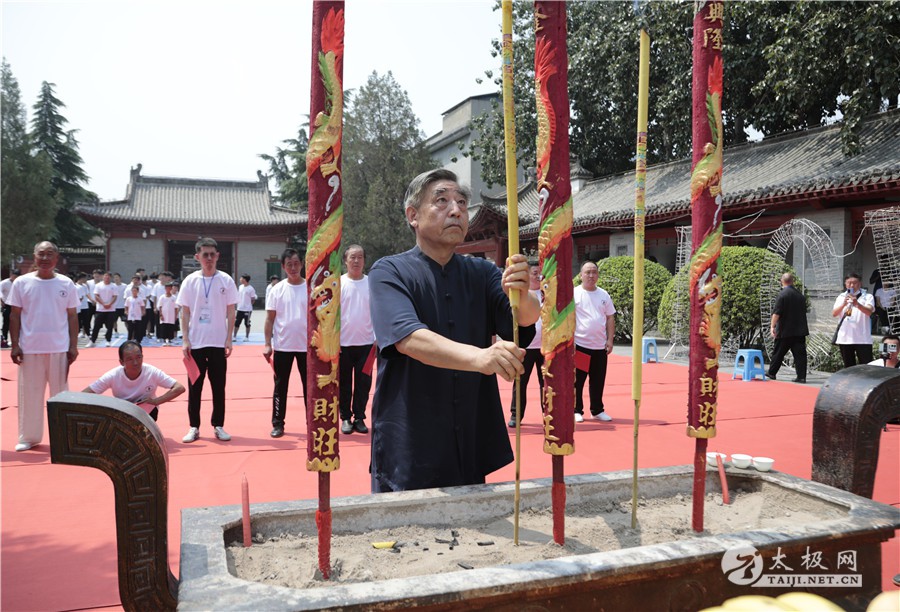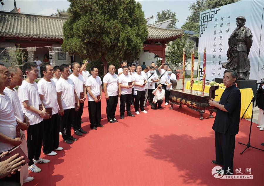 太极拳祭祖仪式 (太极网报道)8月3号上午,正值第六届陈家沟陈式太极拳国际交流大赛期间,作为大赛的主题活动之一,由陈家沟陈氏家族举办的太极拳祭祖大典在太极拳祖祠隆重举行。陈家沟陈氏第十九世守门人、陈家沟太极拳学校校长陈小星,大赛组委会执行主席、陈家沟太极拳学校总教练陈自强率众弟子及传承人祭拜太极拳始祖陈王廷,缅怀太极先辈,重温初心牢记传承,继往开来推广太极拳。 陈小星率众弟子传承人向太极拳始祖祭拜 陈小星及新入门弟子合影 在陈氏家族理事会及众多太极拳传承人见证下,陈小星大师收徒传承仪式举行,李玉成、郭长城、朱沛霖、张堂华、黎建伟、李家民、葛成民、马冲舟、徐衹山、李印峰、马武云、陈小群等12名太极拳爱好者通过传统拜师仪式正式拜入陈小星门下。 陈氏家族理事会见证代表 陈家沟陈氏家族族长陈景安、家族理事会主任陈一华,理事会成员代表陈有雷、陈国胜、陈三根、陈占成,太极拳优秀传承人代表陈恩、 杨贵杰、杨建平、马永军、李小华、符开辉、马力、董黎明、唐英、薛玲、吴怀洋等参加仪式。 陈小星祭祖上香 陈小星向弟子训诫 陈小星在收徒仪式上告诫弟子,首要是传承好太极拳,踏实练拳练功夫,然后是推广好太极拳,让大众健康受益,造福和谐社会。 新入门弟子代表朱沛霖发言 新入门弟子代表、甘肃省平凉市武术运动协会主席朱沛霖表示,非常荣幸如愿拜入陈小星大师门下,将会以传承人身份严格要求自我,谨遵师父教诲,恪守门规戒律,勤修研悟太极拳,为太极拳的传承推广贡献自己的力量。 弟子代表陈恩致辞 陈家沟太极拳杰出传承人代表陈恩在致辞中表达了对师父陈小星及陈家沟的感恩之情,并表态将继续以太极拳的传承推广为毕生事业追求。陈恩驻扎福建厦门开馆传拳育人,影响卓越,是众多奔波在外传承和推广陈家沟太极拳的传承人缩影和典范。 陈一华主持仪式 陈景安致辞 陈小星宣读祭祖文 太极拳祭祖仪式现场 据悉,陈家沟陈氏家族理事会、陈家沟陈氏太极拳协会每年都会定期举办太极拳祭祖大典活动,旨在让广大传承人通过传统仪式接受太极文化熏陶和洗礼,表达对太极拳及历代先师前辈的感恩和敬畏之情,坚定传承推广太极拳的责任和担当。 责编:申烜臣 |