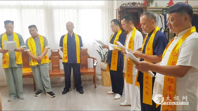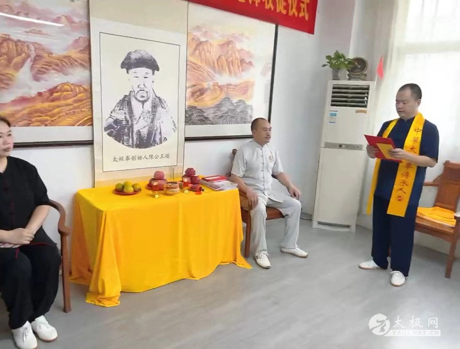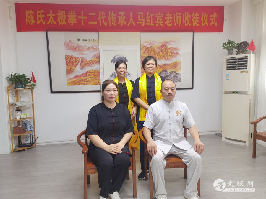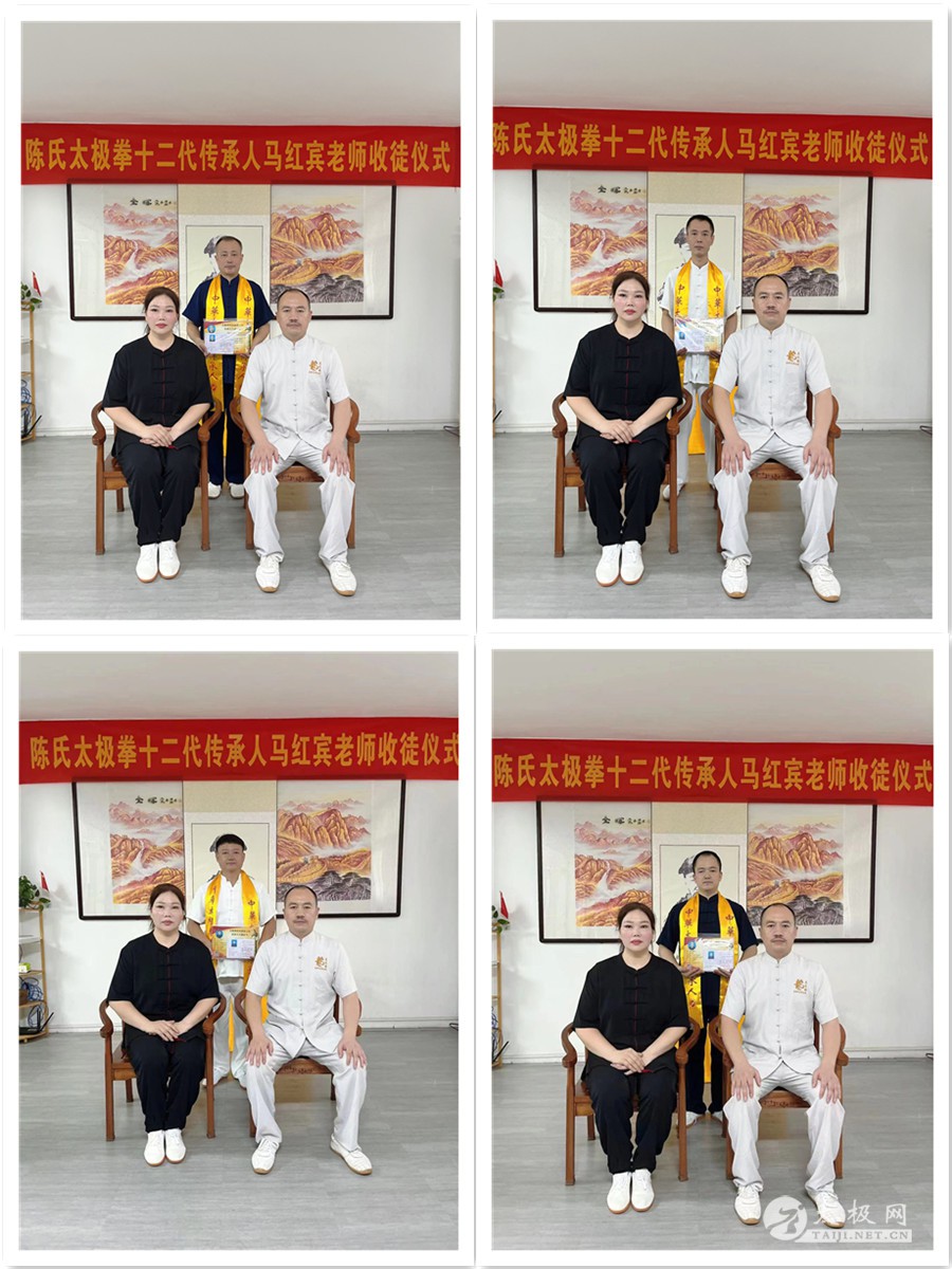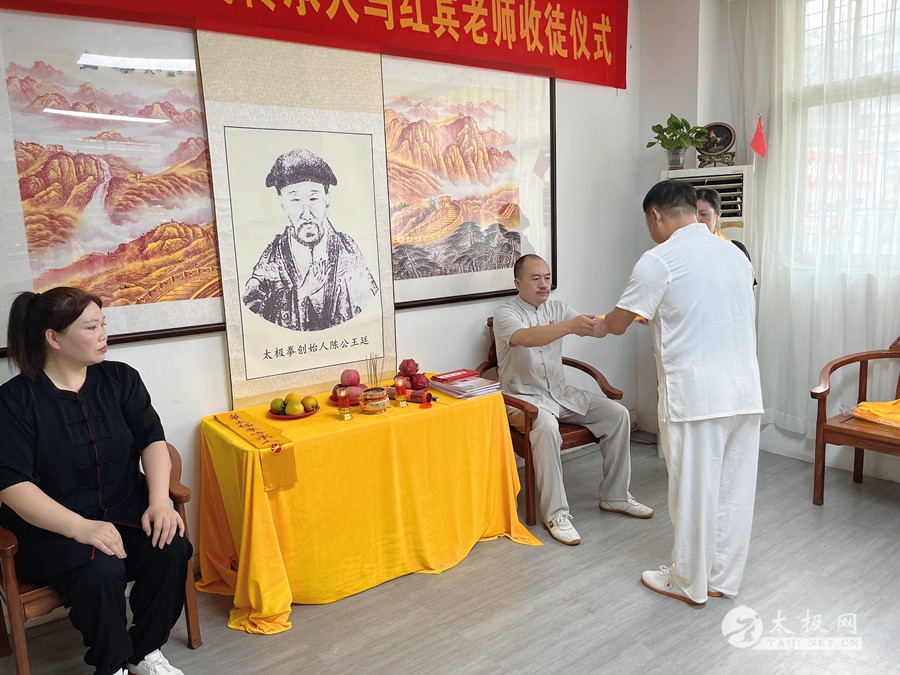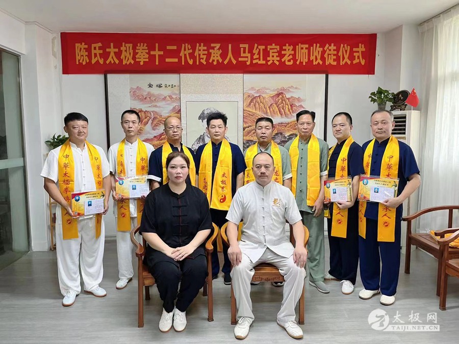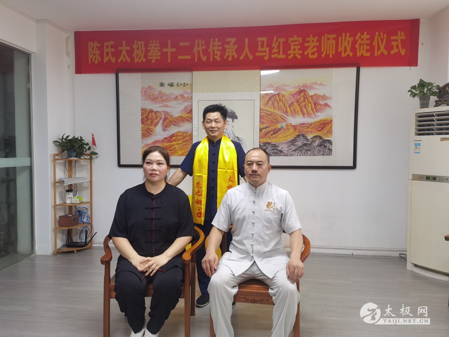 (太极网讯)中华优秀传统文化太极拳,薪火相传,生生不息。2022年7月30日,当代太极拳名家、陈式太极拳第十二代传人马红宾收徒仪式于广东省揭阳市龙之韵太极拳俱乐部举行。本次拜入马红宾老师门下的有吴小彤,黄二军,何小灯,黄庆东等四名优秀的太极拳爱好者。通过传统拜师仪式正式成为陈式太极拳第十三代传承人,肩负起传播太极拳,弘扬太极文化的责任使命。 新入门弟子上前向师父、师母行鞠躬礼,师母为弟子披挂太极拳传承人绶带。随后,新入门弟子依次向师父师母递交拜师帖、行拜师礼、敬拜师茶。 |