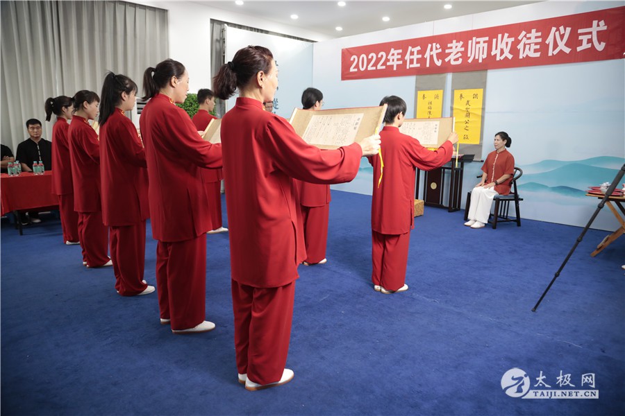 (太极网讯)2022年8月16日,陈氏太极拳第十二代传承人任代老师开山收徒仪式在位于温县春城国贸的太极网演播室内隆重举行。侯世豪、龙亮、宋伊伊、张苗、慕冰、胡艳玲、高诗雨、李茹萍、韩翠平等九名太极拳爱好者通过传统拜师仪式拜入任代老师门下,成为陈氏太极拳第十三代传承人。另有任政霖、赵四青两名准弟子因疫情原因未能到达现场,但拜师心切,经师父及同门特批,一并允纳门下。他们将承担起传承太极拳、弘扬太极文化的使命。 温县文化馆馆长、县非物质文化遗产保护中心主任闫忙种,太极网创始人、温县太极拳传承人联合会主席刘洪奇,任代老师的同门师兄弟:李道友、武国有、张小红、李春香、慕鸿渊、谢兰青、王东红、殷爱青以及任代老师的亲朋好友、弟子学员等共同见证,收徒仪式由太极网总编李超主持。 全体人员向太极拳始祖陈王廷鞠躬 全体弟子宣读拜师帖 仪式遵循传统,严谨规范,简洁庄重。新入门弟子依次上前递交拜师帖、行拜师礼、敬茶,师父回帖、颁发传承人证书,并为弟子披挂绶带。 师父回帖颁发传承证书、披挂绶带 师父任代率全体弟子向太极拳始祖陈王廷叩拜 新弟子代表龙亮发言 新弟子代表龙亮表示非常激动和荣幸拜师,成为任代老师的入室弟子,成为陈氏太极拳的正式传人,接受更加严格、专业的训练。将更加珍惜师徒缘分,勤修研悟,努力成为合格的太极拳传承人。 师父任代向弟子训话 任代老师表示,今天是太极人生中值得纪念的重要时刻。承蒙师父恩准,在诸位领导和师兄弟的见证下,正式开山收徒。从此刻起,弟子们要尊守门规戒律、做好人、练好拳,尊师重道、坦城和善、不忘初心。承担起传播弘扬太极之责,团结本门师兄弟,为光大我门奋斗努力。 见证人闫忙种致辞 闫忙种在致辞中代表温县非物质文化遗产保护中心对任代老师收徒传承表示祝贺,他称赞任老师是陈氏太极拳优秀传承人,寄望弟子们在师父带领下继续努力,将太极拳传承推广事业发扬光大。 见证人刘洪奇致辞 刘洪奇对任代老师喜收新徒、新弟子得拜良师表达了衷心祝贺,他表示非常高兴在太极网演播室见证任代老师的开山收徒仪式,任老师德艺双馨、谦虚低调、为人师表,期待任老师及众弟子在太极拳传承道路上走的更高、更远。 全体弟子向见证人及各位嘉宾鞠躬致谢,仪式在庄严和谐的气氛中圆满礼成。 师父与弟子合影留念 新入门弟子与师父合影留念 任代老师弟子学员进行太极拳展演 太极拳档案:任代,1960年出生于太极拳发源地温县。王西安大师入室弟子、陈氏太极拳第十二代传承人。现为中国武术六段,一级社会体育指导员,王西安拳法研究会副会长,温县老年体育协会特聘总教练。 自幼在陈家沟跟随陈云亭之子陈万海习练陈氏太极拳传统套路,颇得真传。1999年结识王西安大师,系统跟随王西安大师精研陈氏太极拳老架、新架、推手及长短器械,拳技精湛,多次被研究会外派授拳,教学经验丰富。 曾多次参加全国大型太极拳比赛 2002年参加全国农民运动会荣获太极拳传统套路第一名。 2007年参加焦作市第十一届运动会获太极拳第一名。 2008年参加焦作市农民运动会获太极拳一等奖。 2014年参加全国武术开赛获得女子成人组冠军。2017年参加国际太极拳交流大赛荣获太极拳新架一路第一名、太极单剑第一名。2019年参加全国太极拳公开赛荣获陈式太极拳传统套路第一名、太极器械双剑第一名。2019年10月参加全国老年太极拳邀请赛个人荣获拳、剑第一名,率队获团体第一名。 责编:申烜臣 |