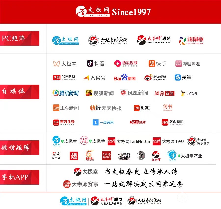 太极网微信矩阵粉丝数百万,官微“太极拳”,每日更新太极拳资讯、文章、视频。