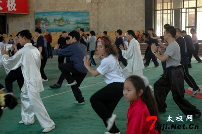 5月1日是长假第一天,也是享誉世界的陈式太极拳大师王西安亲授老架一路提高班和擒拿培训班开班的日子。这天一大早,位于温县黄河路东段的温县太极武术馆便分外热闹起来,来自法国、韩国、上海、浙江、江苏、深圳、山东、广西、佛山等百余名太极拳爱好者以及王西安拳法研究会会员都纷纷赶来参加此次培训,俨若学生,一丝不苟认真听课,不放过这次难得的学习、提高机会。这些学员中,有的是习拳多年的王大师弟子或研究会会员,也有的是初练太极拳、慕名而来的太极拳爱好者。职业更是五花八门,有学识渊博的学者,在校读书的大学生,政府部门工作的领导,还有的是各地分会的教练。他们对太极拳的痴迷尤其让人感动,王西安拳法研究会山东省淄博市分会的乔秀军、王大海等十三名会员为了不耽误听课,千里迢迢连夜开车赶来;徐州的张以彬先生在网上看到大师授课的消息,按时到达温县报到后,不顾一夜坐火车的劳累,上午认真听完大师的授课,中午休息时间也悄悄在武馆苦练,丝毫不敢懈怠;焦作的中学生申思临近中招考试也不放过这次深造的机会,来自河南鹿邑的刘斌、桑守惠先生是王西安拳法研究会会员,自称是刚入门的“笨学生”,对王西安大师这次办提高班非常满意,恰好满足了他们系统规范学习、了解陈式太极拳老架一路内涵的愿望。因为工作太繁忙,1日黎明他们就乘车,到温县时已是下午两点,当大家问他们累不累时,他们笑了说,能有这样跟大师学习的机会太难得了,哪敢谈累啊!