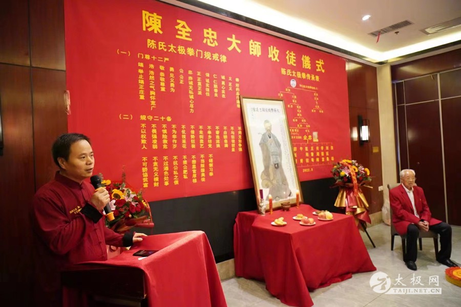 (太极网讯)太极之风盛行的古城西安,因为众多传承人与太极拳发源地温县陈家沟的根源联系,在武术界有着“小陈沟”的美誉,(引自太极网大型太极专题片《东南西北太极人之陈全忠》)在这里,被太极界敬仰尊重的“村长”陈全忠大师已经98岁高龄了,这位太极寿星依旧精神矍铄。年近百岁,依旧每天坚持练拳、教拳,诠释着太极拳的蓬勃生命力和灿烂魅力。 2022年9月11日,陈家沟陈氏十九世、陈氏太极拳第十一代传承人陈全忠大师迎来了98岁生日,与此同时,一场意义非凡的收徒传承仪式在西安举行,田长明、行敏、王嵘、任伟、张萌、刘延勇、李国富、何湖梅、王鲁峰、赵刚锐、牛青等11名太极拳爱好者通过传统仪式拜师陈全忠,谱写着太极传承薪火永燃的盛世篇章。 陈全忠上香祭拜太极拳始祖 仪式遵循传统,简洁庄重。陈全忠向太极拳始祖陈王廷像敬香行礼,告知先祖薪火传承。新入门弟子依次递交拜师帖、行拜师礼,师父回帖,流程规范严谨。 陈全忠 陈全忠大师在训话中告诫弟子,要以传承人的身份严格要求自我,恪守太极拳门规祖训,认真练好拳、做好人,为早日成为合格的太极拳传承人不懈努力,为太极拳的传播和推广做出应有的贡献。 吴颖锋致辞 老弟子杰出代表吴颖锋在致辞中与众位新同门共勉,希望大家用心传承师父的品德和技艺,弘扬太极拳非遗,弘扬中华优秀传统文化。 张萌发言 新入门弟子张萌表示,感恩师父带领走上真正的太极大道,永远以师父为榜样,刻苦练功,团结同门,发展壮大陈全忠大系,助力太极拳传承推广。 陈晖发言 仪式策划负责人陈晖在发言中表达了他作为陈氏太极拳十三代传承人应有的责任和担当,感恩成长生活于太极拳世家陈氏家族,感恩爷爷陈全忠及家族长辈们的栽培,将携手众位传承人共同奋斗,共享太极拳的健康与快乐。 见证人陈西立致辞 陈全忠之子陈西鹏、陈西立作为见证人致辞,他们寄望新入门弟子们继续刻苦修习太极拳,共同致力于弘扬太极,造福大众健康、和谐社会。仪式在热烈和谐的氛围中圆满礼成。 陈丽和陈晖太极拳表演 新入门弟子太极拳展演 全体合影留念 陈全忠,1925年出生,河南温县陈家沟人,陈家沟陈氏十九世。师承陈守礼,陈式太极拳第十一代传承人。陈全忠是当代陈氏太极拳杰出代表人物,他的传奇武艺和高尚武德享誉拳界,堪称当代太极大家典范,被誉为“当代太极拳活化石”,为太极拳走向世界做出了突出贡献。陈全忠年近百岁,依旧身体力行领衔太极传播第一线,对弘扬中国太极文化、全民健身、健康中国具有重要意义。 《东南西北太极人》陈全忠:敢问苍天再借20年 2009年,太极网大型太极专题片《东南西北太极人》开播,其中《陈全忠:敢问苍天再借20年》专题片备受瞩目,引发拳界高度关注和强烈热议。多年来太极网有幸见证了陈全忠大师在太极拳非遗传承推广道路上的发展历程,时隔十余载,让我们跟随太极网经典影像记录再次重温这部激动人心的太极传奇大片。 责编:申烜臣 |