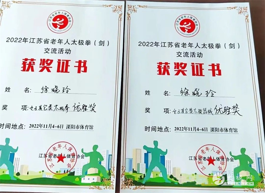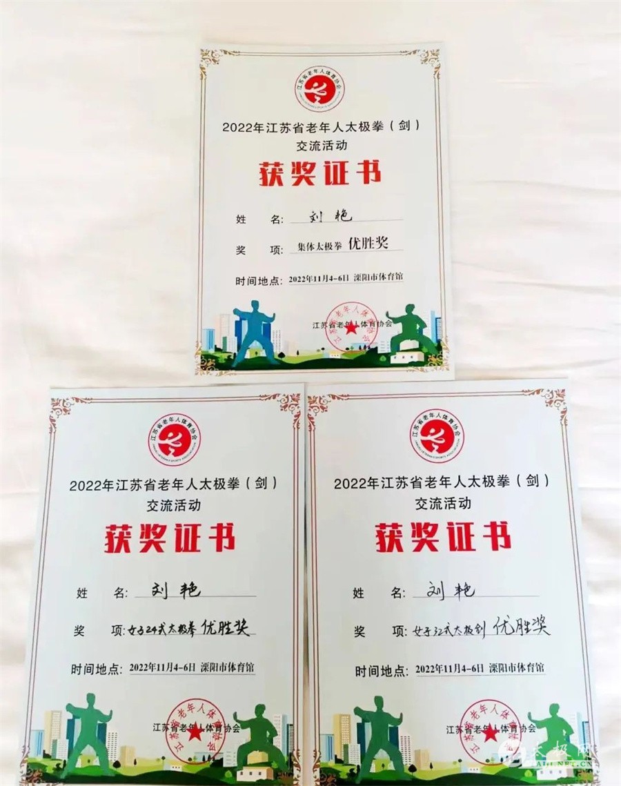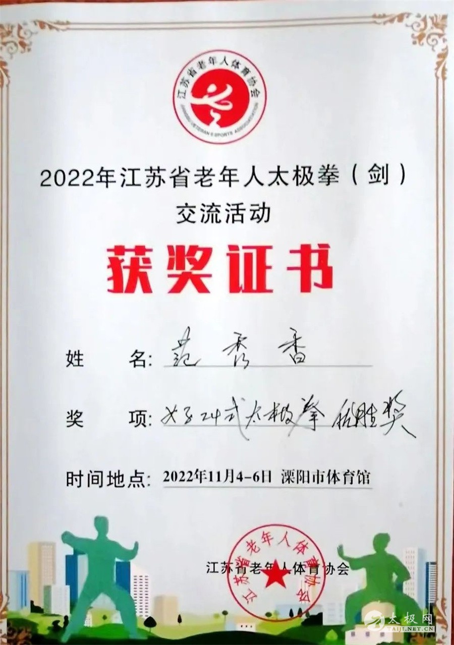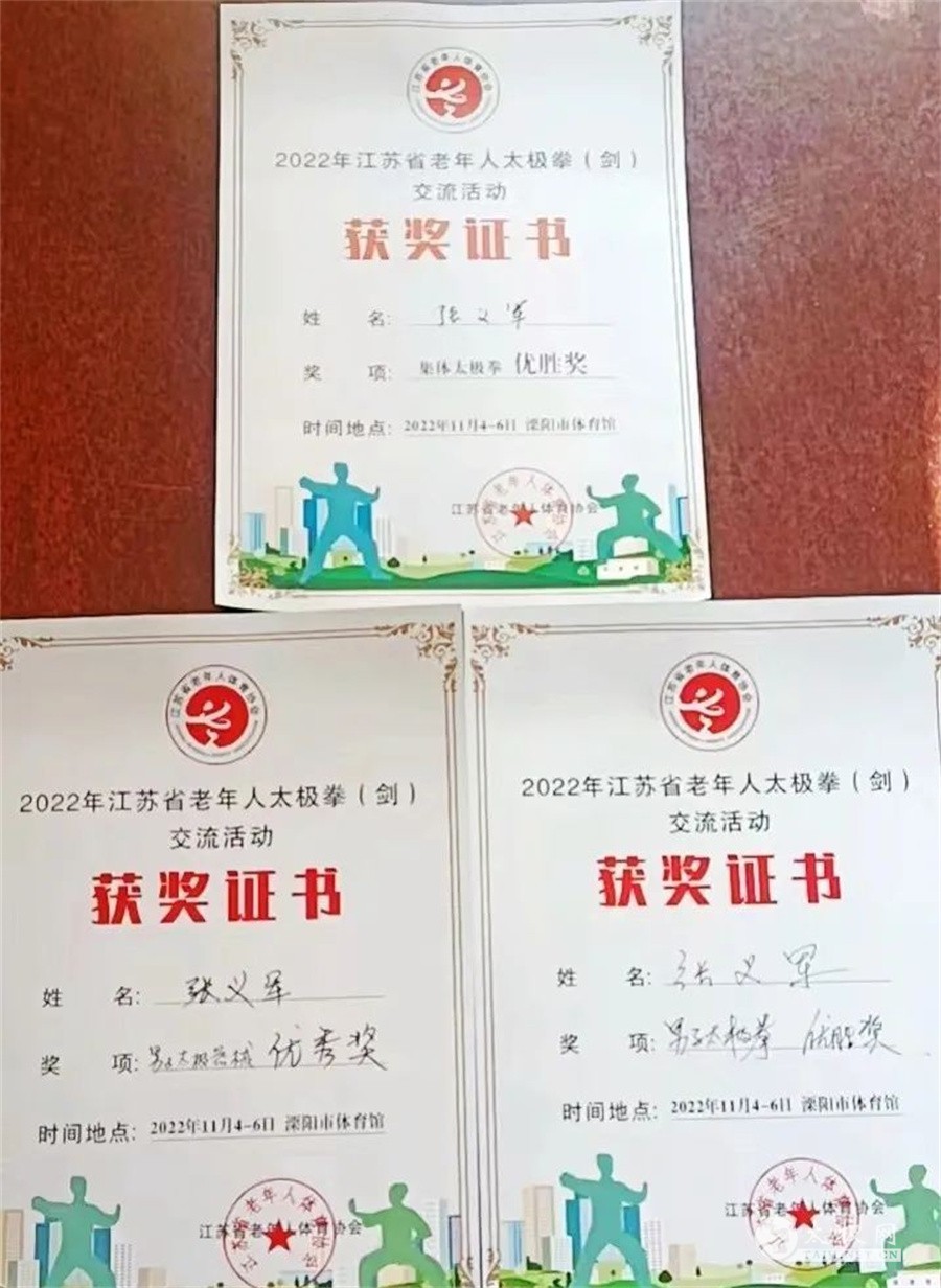 11月6日,“奋进新时代,健身我先行”2022年江苏省老年人太极拳(剑)交流活动在常州市溧阳市奥体国际花园体育馆落下帷幕。来自全省13支老年人体协代表队近200人参加了8个大项、125个小项的比赛。连云港市老年体协太极拳代表队囊括多项集体与个人优胜奖,载誉而归。 本次交流活动分为太极八法五步、集体与个人24式及42式太极拳、集体与个人32式太极剑等项目。连云港市老年体协派出了由孙宗凤为领队、共8人组成的参赛团队。比赛场上,他们个个表现不俗,连获佳绩,为连云港市争得了荣誉。 太极拳集体项目比赛中 队员们在候场 经过三天紧张角逐,最终,连云港市代表队荣获了太极拳集体优胜奖,其中7名队员均获得了个人优胜奖。在太极器械项目中,张文成、刘艳、蒋宗美、徐晓玲4人均获得了太极剑个人优胜奖。 比赛结束后举行了隆重的颁奖仪式,江苏省老年人体育协会副主席兼秘书长孙海连先生为集体项目优胜奖获得者颁奖。 江苏省武术运动协会副会长、江苏省老年人体育协会太极拳专委会主任张东宇先生为集体项目优秀奖颁奖。 赛后,连云港市老年体协专委会主任胡昌振先生十分高兴地说:“通过参加这次交流活动,暨相互切磋交流了太极拳技艺,展示了老年朋友良好的精神风貌,又加深了彼此间感情,增进了友谊”。 近年来,连云港市老年人体育协会太极拳专委会不仅十分重视骨干队伍的培养,也十分注重发挥各基层辅导站点、健身俱乐部的示范带动作用,更是重视培养队员们积极向上的团队精神和勇于吃苦、甘于奉献精神。太极拳专委会曾多次组织参加全国、省、市各类武术赛事和交流展示活动,均取得了优异成绩,并得到了各级领导及参赛人员的一致好评。 2022年11月7日,连云港市老年体协鼓类专委会三个健身团队,参加了连云港市首届社区运动会健身秧歌和健身腰鼓的比赛,并分别了获得了一等奖和二等奖。 |
