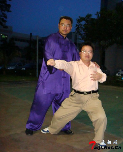 | 2007年5月25日——6月9日,焦作槐园拳社社长、陈式太极拳名家陈骁伍先生应广东东莞清溪镇的太极拳爱好者邀请,前往传拳授艺。陈骁伍老师精湛的拳艺、深入浅出、通俗易懂的太极拳理论讲解受到了当地拳友的一致好评。 感谢网友“书生”提供照片。