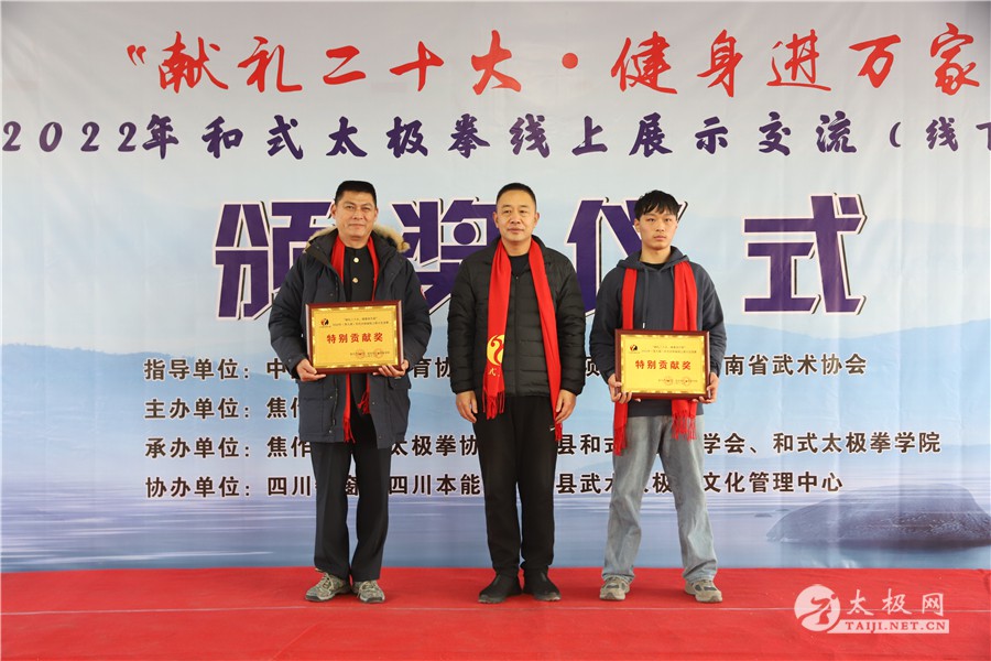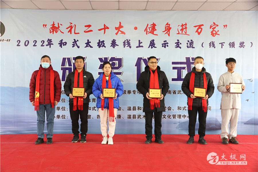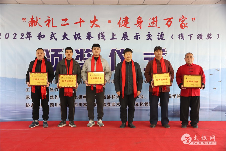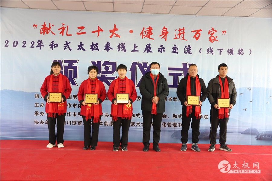 2023年1月7日,“献礼二十大·健身进万家”——2022 年和式太极拳线上展示交流活动线下颁奖仪式于温县和式太极拳学院隆重举行。 焦作市体育局副局长宋国宪,温县县委常委、宣传部部长史玉龙,温县人民政府副县长王欢欢,温县文旅局局长张俊峰,焦作市体育局群体科科长范小波,温县太极拳武术文化管理中心主任任海林,温县赵堡镇党委宣统委员范小涛,和式太极拳代表性传承人和有禄、和宝森、和定乾等领导嘉宾出席活动。 裁判长秦旭普宣布比赛成绩 和有禄致辞 国家级非物质文化遗产和氏太极拳代表性传承人、温县和式太极拳学院院长和有禄在致辞中向各位领导嘉宾对和式太极拳的发展给予的关心和支持表示感谢,他说:近年来,随着全民健身的持续推进以及健康中国战略的稳步实施,国家对优秀传统文化的传承保护工作日益重视,经历百余年传承底蕴深厚、内涵丰富的和式太极拳取得长足发展,在当代定能走向更大更广的舞台、发挥更大的时代价值。 王欢欢致辞 温县人民政府副县长王欢欢致辞,她代表县委县政府对各位领导嘉宾的到来表示热烈欢迎,对活动的成功举办以及获奖选手表示祝贺,寄望大家立足温县、面向世界,再接再厉为和式太极拳的传播和太极拳事业做出更多、更大贡献。 宋国宪讲话 焦作市体育局副局长宋国宪在讲话中对活动的成功举办表示祝贺,对和式太极拳的发展以及和有禄老师等代表性传人表示高度肯定,寄望大家继续努力,为太极文化走向世界积极贡献。 范小涛、和宝森颁奖 张长有、陈修军颁奖 张俊峰颁奖 王欢欢为获奖单位颁奖 和有禄为获奖单位颁奖 史玉龙为获奖单位颁奖 宋国宪为获奖单位颁奖 展演环节 据了解,交流活动开展以来,得到了全国各地和氏太极拳传人、爱好者的积极相应,本次活动的开展,既是广大太极拳人以实际行动,庆祝党的二十大胜利召开,喜庆太极拳成功申报世界非物质文化遗产两周年,也是广大太极拳人凝心聚力,贯彻落实《全民健身计划(2021-2025)》,推动太极拳运动发展、助力健康中国建设的具体体现。 获奖名单: 优秀传承人: 朱 霞 马 五 林仁华 张德成 史永雷 王培华 马文慧 倪晓源 郑承忠 张玉宣 张亚松 王 武 十佳人气奖: 郭子琦 张承山 谢文军 邱 霞 刘亚欢 毛仁民 刘建洪 宋兰芳 王瑞云 胡爱菊 优秀组织奖: 湖北省麻城市老体协太极拳专委会 贵阳花溪和为贵太极拳队 华武功夫 湖南省衡阳市衡南县云集太极队 贵州遵义和氏太极拳队 广东省映月湖和式太极队 焦作市和式太极拳协会 洛阳市嵩县和式太极拳协会 苏州市吴江区太极拳协会和式分会 淮安市洪泽区和式太极拳学会 特别贡献奖: 四川本能康健康管理有限公司 四川省和式太极文化发展有限公司 温县和式太极拳学会 湖北省襄阳市和式太极拳研究会 |