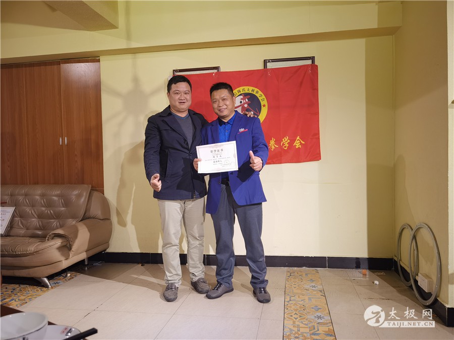 2023年1月7日,东莞鸿信太极拳学会为参加2022年“拳论杯”第八届太极拳网络视频大赛参赛的获奖选手举行了颁奖仪式,同时颁发了鸿信太极内部奖项。在张辉老师的号召组织下,交流活动取得圆满成功。活动旨在永远缅怀范鸿信大师,倡导坚持练拳修德。 师父张辉和罗亿华馆长分别发言 颁奖及交流活动和谐热烈。鉴于蔡锡文在分会的威望与表现以及发展需要,经范鸿信太极拳学会开封总会同意,特委任蔡锡文为——鸿信太极东莞分会副会长。 鉴于汤志斌在分会的威望与表现以及发展需要,经开封总会同意,特委任汤志斌为——鸿信太极东莞分会爱心会执行会长。 鉴于梅自成在分会的威望与表现以及发展需要,经开封总会同意,特委任梅自成为——鸿信太极东莞分会副秘书长。 东莞鸿信太极团队的徐勋章、陈溪泉、汤志斌、吴荣忠、龙艾、龙懋,不忘初心、练拳刻苦、崇尚荣誉,深受同门好评,被评为“尊师重道奖”。 东莞鸿信太极团队的罗亿华、李金辉、汤志斌、陈根,多年来为了鸿信太极的发展任劳任怨、劳心劳力,表现突出。被评为“突出贡献奖”。 蔡锡文、黄锦锡、徐勋章、胡凤英等人在2022年的太极拳教学中,不辞劳苦、耐心指导,被评为“优秀教练员”。 徐勋章、胡凤英、陈根、汤志斌、龙懋、龙艾、吴荣忠、陈溪泉、张应林、李丕昌、戴军辉、姚勇明、胡建超、邱生恩、邓江、卫宏、廖正祥、黄课等陈氏太极拳第十二代传承人在2022年各项活动中,时刻谨记师训,以武修德。被评为“优秀传承人”。 谢荣广、凌军、王菁璇、王梓乔、叶运田、梅一尘、郑绍峰、邓检志、曹英、张建国、邓端、龙成、江受印、林红秀、蒋欣棣、梅自成、潘东祥、黄剑等团队成员2022年度表现优异,积极参与各项活动,被评为“优秀会员”。 黄皓博、梅自成、秦雨蝶等新学员,自入会以来,表现优秀,积极参加各项活动,被评为“最佳新人”。 最后大家纷纷踊跃发言表示,在今后的日子里,将永远谨记范鸿信大师生前教诲,更加刻苦练拳、积极参加各项赛事和武术活动,为太极拳的传承发扬做出积极贡献。