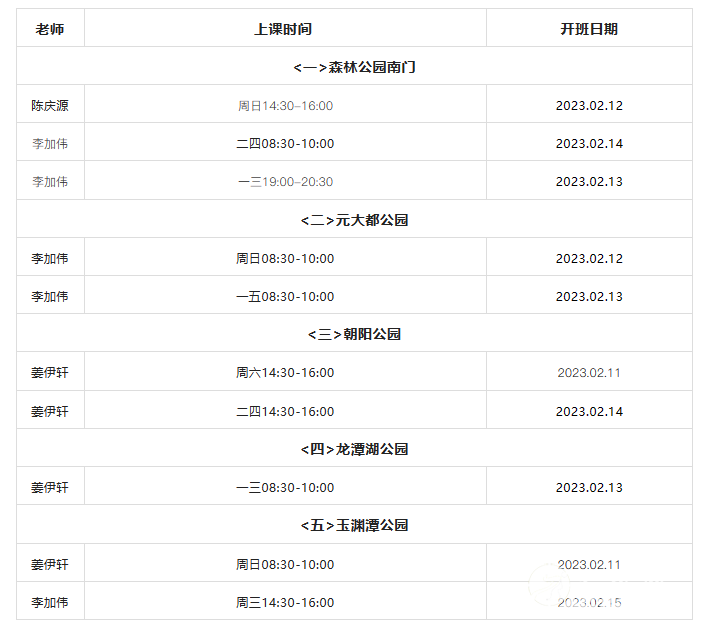 北京陈庆源太极拳馆2023年02月份太极拳初学班已经开始报名了---报名咨询热线 010-5702 8836 / 135 2033 0062,联系人:姬老师 陈老师 。 培训目标:强身健体、陶冶情操,开发智慧、弘扬中国传统文化,传承尚武精神,促进中国传统武术的发展。 招收对象:零基础、成人、亲子、中老年、学生; 我们为学员开设的班次有亲近大自然户外班、精品室内班两种: 1、长套路户外班【推荐】,教授内容《太极养生功+桩功+缠丝功+陈氏太极拳老架一路75式》,费用:3300元(赠电子版教材) 课时:共33个小时课程,每次一个半时,22次课,8人内小班授课,保证教学质量,选择一周两次课的班,三个月可以完成学业;选择一周一次课的班,半年可完成学业。陈氏太极拳老架一路是太极拳爱好者日常生活中每天必练的经典套路之一,是初学者最好的选择;老架一路是最古老的一套太极拳法,保留了太极拳的原本练法,内容丰富、全面,动作舒展、大方,以柔为主,具有极高的健身养生价值,更蕴含着防身自卫的功能。 2、短套路户外班,教授内容《太极养生功+桩功+缠丝功+陈氏太极拳十六式养生功》,费用:1500元(赠电子版教材),课时:共15个小时课程,每次一个半时,10次课,8人内小班授课,保证教学质量,选择一周两次课的班,五周可以完成学业;选择一周一次课的班,两个半月可完成学业。本班教授的套路—陈氏太极拳精要十六式由陈氏太极拳老架一路75式里的十六个基础动作组编而成。此拳短小精炼,以柔为主,柔中有刚,动作舒展大方,适合想在短时间内学会一套拳法的初学者,日常坚持练习,能达到强身健体,怡养性情的效果。 3、【特惠班次】户外零基础太极拳班推出年会员课程活动,原价150元一节课,加入会员每节课将不超过75元,会员班的特点:不限次、不限地点、不同老师的课都可以上、全年制,超实惠。来的次数越多,一节课单价越低,4800元/年/不计次/多场地学习;会员班的终极目标:通过常年的学和练,不断提高自己的拳术水平,达到最佳的锻炼效果;学习内容《太极养生功+桩功+缠丝功+陈氏太极拳老架一路75式》。 1、短套路室内班,教授内容《太极养生功+桩功+缠丝功+陈氏太极拳十六式养生功》,费用:2700元(赠电子版教材),课时:共15个小时课程,每次一个半时,10次课,8人内小班授课,保证教学质量,选择一周两次课的班,五周可以完成学业;选择一周一次课的班,两个半月可完成学业。本班教授的套路—陈氏太极拳精要十六式由陈氏太极拳老架一路75式里的十六个基础动作组编而成。此拳短小精炼,以柔为主,柔中有刚,动作舒展大方,适合想在短时间内学会一套拳法的初学者,日常坚持练习,能达到强身健体,怡养性情的效果。 2、长套路室内班【推荐】,教授内容《太极养生功+桩功+缠丝功+陈氏太极拳老架一路75式》,费用:5940元(赠电子版教材) 课时:共33个小时课程,每次一个半时,22次课,8人内小班授课,保证教学质量,选择一周两次课的班,三个月可以完成学业;选择一周一次课的班,半年可完成学业。陈氏太极拳老架一路是太极拳爱好者日常生活中每天必练的经典套路之一,是初学者最好的选择;老架一路是最古老的一套太极拳法,保留了太极拳的原本练法,内容丰富、全面,动作舒展、大方,以柔为主,具有极高的健身养生价值,更蕴含着防身自卫的功能。 《基本功》部分包括:太极养生功、桩功、陈氏太极拳特有的缠丝劲训练、圆意感的训练、重心倒换规律的训练、进退顾盼定五行步的练习,为学好太极拳套路打好坚实的基础。正式学习套路前,我们会教大家太极拳的基本功内容。在长期的教学过程中发现,基本功对练好太极拳有着双重作用,它不但是初学者的首选科目,更是有一定基础的学员强化和提高自身动作准确性的重要方法,所以建议大家认真对待基本功,正所谓:“练拳不练功,到老一场空”。教学过程中我们将每个单式动作细分成几个小节,并结合动作的实际用法教授大家,由于动作剖析的清楚到位,从而使学者可以学到一套明白拳。 <馆长亲授班> 一、馆长清新大自然户外班 授课老师:陈庆源 教授内容:《太极养生功+桩功+基本功+陈式太极拳老架一路75式》 上课时间:每周日14:30-16:00 上课地点:森林公园南门站【B口】 开班时间:2023年02月12日 班次模式:户外精品班次,15人满班 课程费用:3300元/期/33小时/22次 二、馆长室内班 授课老师:陈庆源 教授内容:《太极养生功+桩功+基本功+陈式太极拳老架一路75式》 上课时间:每周一和周二19:30-21:00 上课地点:陈庆源太极拳馆总馆(金泉时代1218室) 开班时间:2023年02月13日 班次规模:精品小班,8人满班 课程费用:6800元/期/33小时/22次/含服装鞋子 三、馆长室内全年制vip会员班 授课老师:陈庆源 教授内容:《太极养生功+桩功+基本功+陈式太极拳老架一路75式》 上课时间:每四19:30-21:00 上课地点:陈庆源太极拳馆总馆(金泉时代1218室) 学期:2023年02月16日-2023年12月31日 班次规模:精品小班,8人满班 课程费用:13800元/年/含服装鞋子 福利:馆长室内全年制vip会员班的同学,学期内可以参加庆源太极拳馆户外所有站点的《太极养生功+桩功+基本功+陈式太极拳老架一路75式》课程,不限次,等同于送了4800元的户外全年老架一路单科目会员班,初学时能反复跟班多学、多练会更好。 报名方法: 1、欢迎您到陈庆源太极拳总馆报名学习,地址:北京市朝阳区大屯里317号楼(金泉时代三单元1218室),地铁15