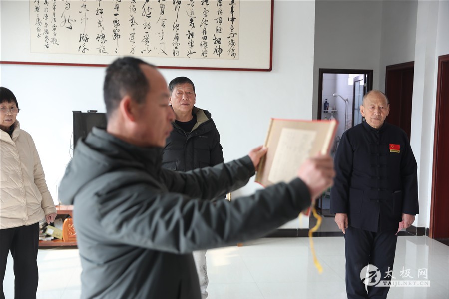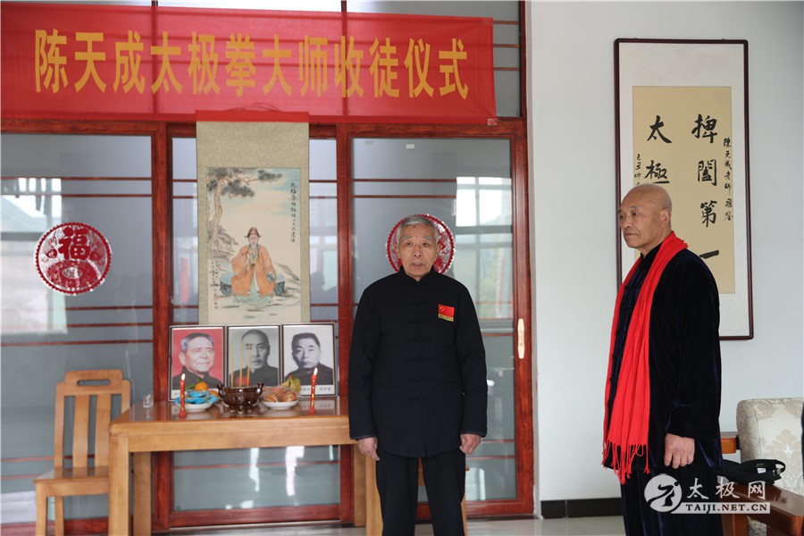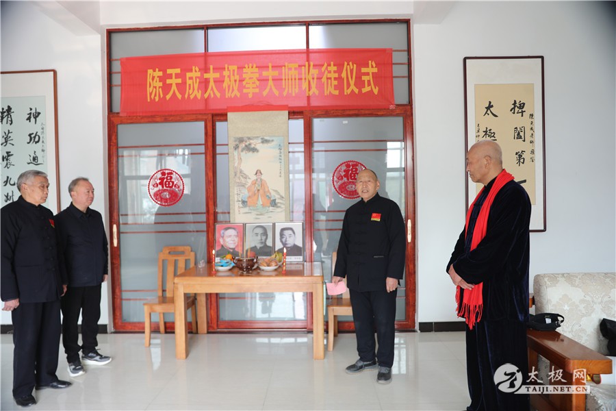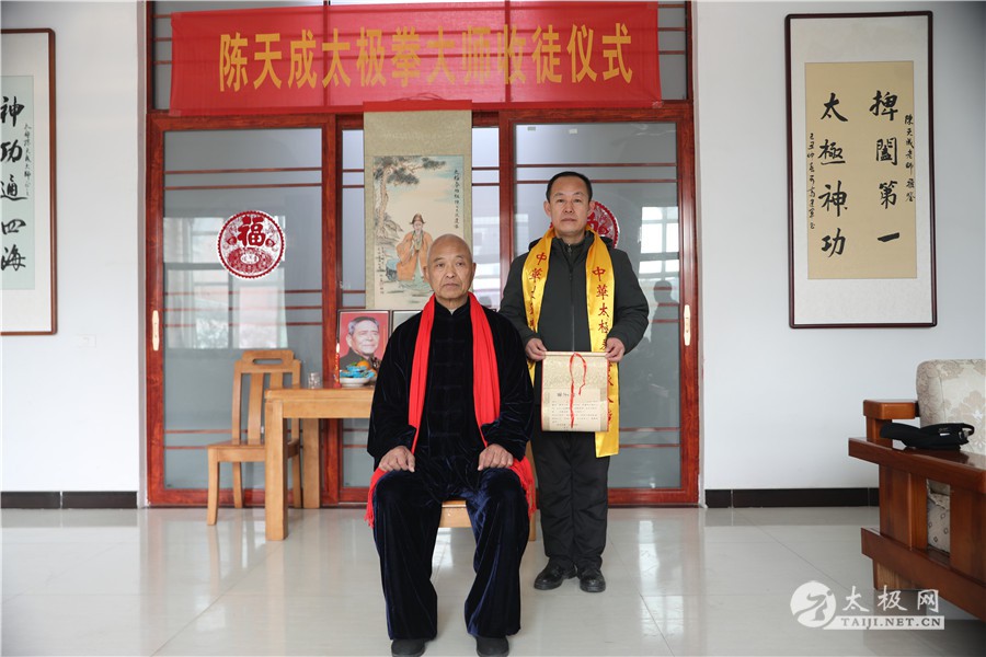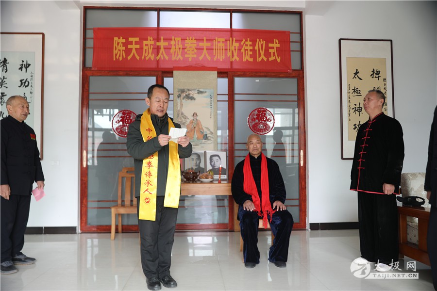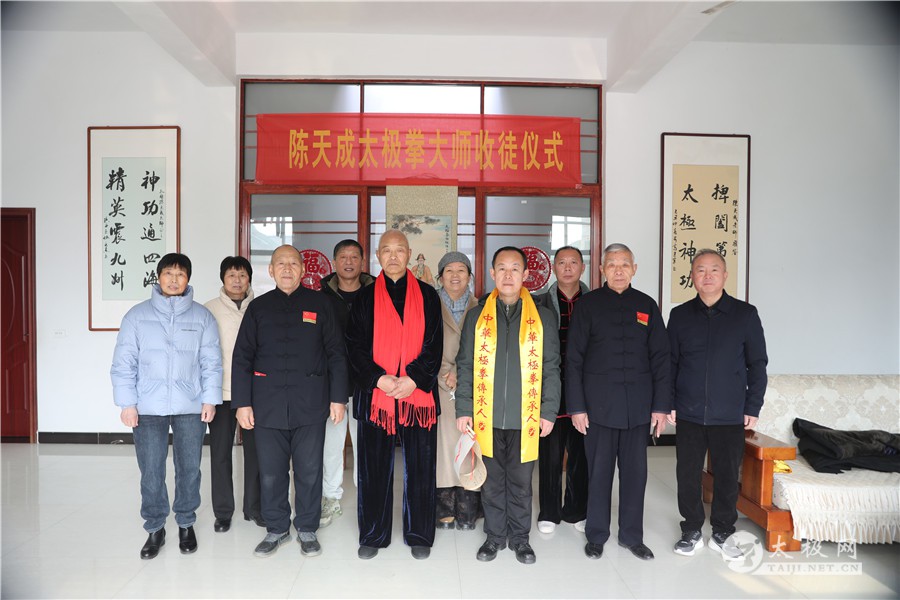 (太极网讯)2023年2月6日,太极拳名家陈天成收徒仪式于温县陈家沟家中举行。太极拳爱好者杜小平经过重重考核终如愿拜师于陈天成大师门下,成为陈家沟陈氏太极拳第十二代传人。 出席本次仪式的有陈家沟陈氏家族理事会陈一华、陈石岩,太极网创始人/温县太极拳传承人联合会主席刘洪奇,太极拳名师陈素英,陈紹光,白宝华等嘉宾应邀出席。 陈石岩主持收徒仪式 仪式遵循陈家沟拜师礼制,古朴庄重。师父陈天成祭拜太极拳祖师上香、敬酒,以告慰祖先香火有序传承有继,感谢先辈创拳传拳之辛劳,祈求祖师佑泽师门。新入门弟子宣读拜师贴,并向师父敬拜师茶、行叩拜礼。 师父回帖并为弟子披挂绶带 弟子杜小平发言 弟子杜小平表示非常荣幸能成为陈天成名师入室弟子,成为陈氏太极拳第十二代传人。今后会谨遵师父教诲,恪守门规祖训,继先贤绝学,精心感悟太极真谛。 刘洪奇致辞 见证人刘洪奇致辞,对陈天成名师的拳艺和武德给予了高度的评价。并向杜小平表示祝贺,希望杜小平继承传统,弘扬国粹。跟师傅学好拳,为传播中华传统文化作出应有贡献。 |