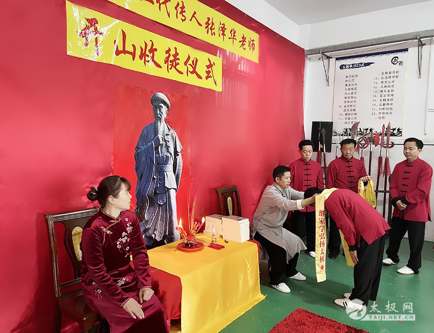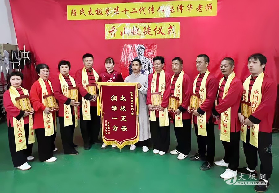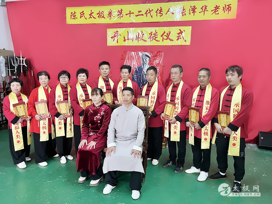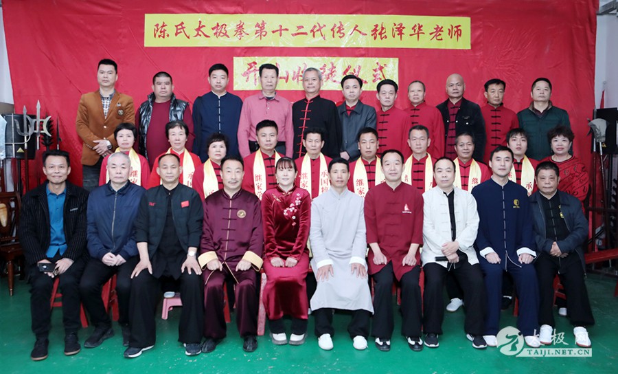 (太极网讯)2023年2月15日,陈氏太极拳第十二代传人、太极拳名家张泽华老师收徒仪式在潮汕汕头举行,郭锦映、欧文廷、马楚光、郭泽丰、孙宏惠、郭文英、郭学英、连婵秋、邱群英、彭承亮、马礼顺共十一位太极拳爱好者拜入门下,正式成为陈氏太极拳第十三代传承人,肩负起传播太极拳、弘扬太极文化的使命和担当。 出席仪式的领导嘉宾有:深圳市社群太极拳协会会长刘强、深圳陈式太极馆长魏勰、天一太极馆馆长赵天一、深圳市德顿太极会馆会长李盾、深圳建东太极书院创始人吴健东等。 收徒仪式现场 收徒仪式庄重古朴,张泽华带领新弟子们祭拜太极拳历代宗师,以告太极传承再续薪火,弟子将秉承“弘扬太极,造福一方”的宗旨,弘传太极,光大本门,也请祖师保佑弟子光本门技艺!新入门弟子依次向师父行拜师礼、递交拜师帖、敬拜师茶。张泽华老师分别为入门弟子披挂传承绶带,在众人的见证下,收徒仪式圆满礼成。 新入门弟子代表郭锦映发表感言,他表示要衷心地感恩张泽华师父,感谢师伯师叔、同门师兄弟,是他们让我与太极结缘,领我走进太极之门,并传授太极之功。非常荣幸能够拜入张泽华老师门下,今后将以师父为楷模,团结在师父门下,以弘扬太极拳为己任,尊师重德、团结师门、恪守门规。以传承人的身份严格要求自我钻研太极拳,弘扬人类非遗太极拳,造福社会和大众。 张泽华老师向新弟子训话,并对莅临活动的嘉宾及拳友们表示感谢,告诫新入门的弟子能够恪守门规祖训,用心练拳,时刻将练拳传拳放在心中。用心去体悟太极文化的博大精深,努力成为合格的太极拳传承人,为传播和弘扬太极拳文化作出自己应有的贡献。 魏勰作为见证人代表首先对新入门弟子表示祝贺,并嘱托他们一日为师、终身为父,希望大家不负师恩,在张泽华老师的带领下教学相长,寄望弟子们能认真学习太极拳,发展和弘扬太极拳文化,为太极拳传承注入了新鲜的血液。
