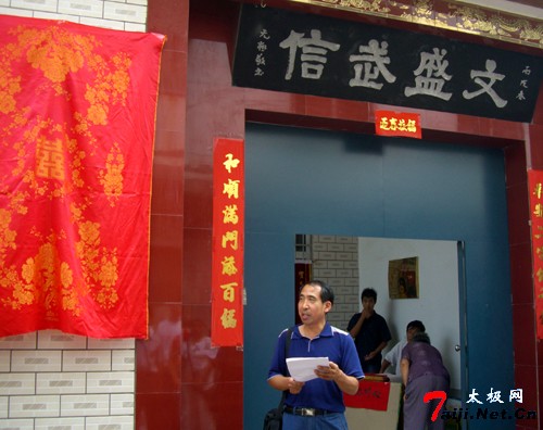 温县太极拳研究发展中心秘书长原福全主持揭牌仪式 2007年7月26日,温县和式太极拳学会成立三周年迁址揭牌仪式在温县商贸城和有禄先生的新居举行。