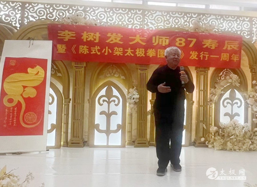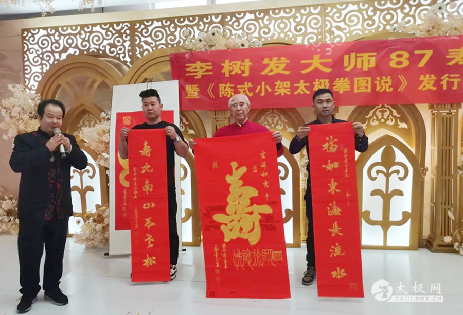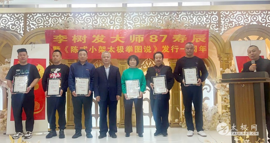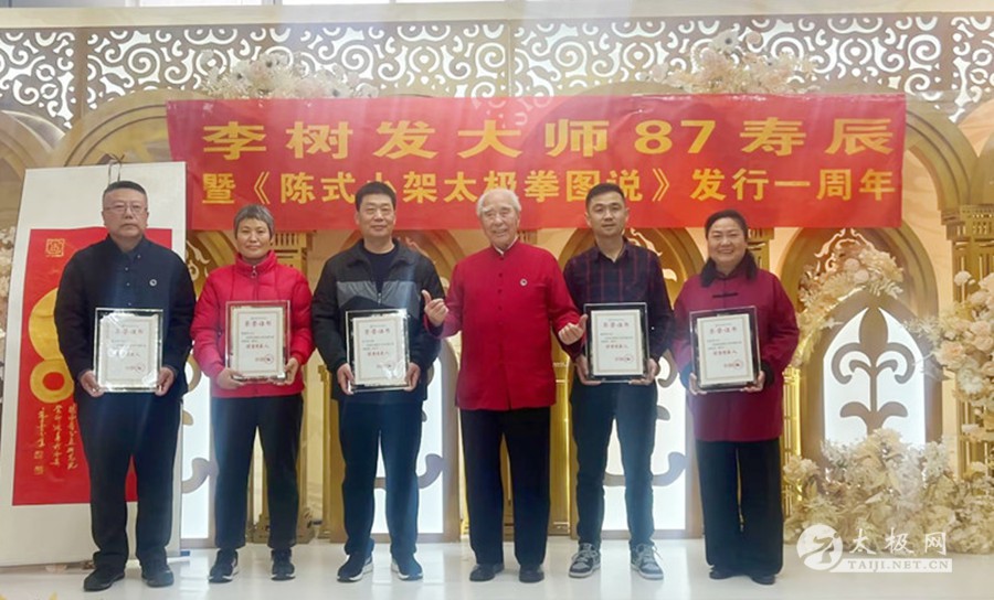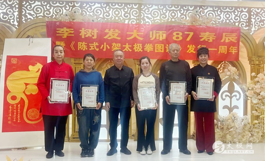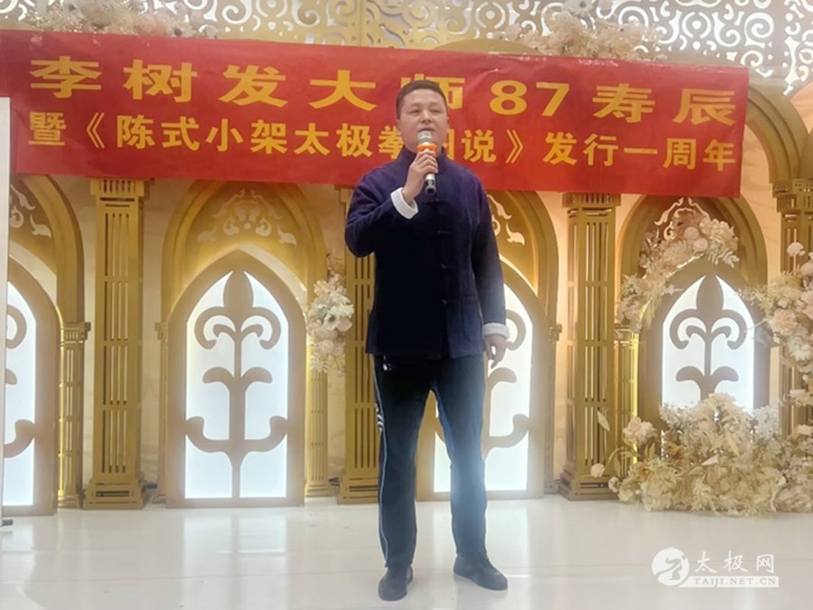 2023年2月25日,太极拳大师李树发87岁寿辰暨《陈式小架太极拳图说》发行一周年活动在古城西安举行。太极网创始人刘洪奇携伉俪张惠芳专程从太极拳发源地温县到会祝贺,西安陈金鳌太极拳学会会长刘永强、西安陈金鳌太极拳学会常务副会长赵学法、职胜奇等嘉宾出席,西安陈金鳌太极拳学会铁岭分会、濮阳分会、郑州分会、安康分会等多个外地分会代表团赶赴西安参会共贺。活动由西安陈金鳌太极拳学会常务副会长张勇刚主持。 张勇刚主持活动 李树发老师在开场致辞中感谢与会嘉宾及门下弟子,不远千里来古城西安为他祝寿。论坛开始,李树发老师讲述了陈式小架太极拳的诸多习练技巧、功法及提高要领。他深情回忆了当年一代太极拳宗师陈金鳌的传拳历史和故事,其技法之严谨值得后人学习和研究。 西安陈金鳌太极拳学会会长刘永强分享了习练太极拳进阶阶段的各种状态,太极拳习练者招熟、懂劲、神明的三个态势。 太极网创始人刘洪奇论述了太极拳的文化产业,并从陈家沟太极拳的起源及各家太极拳的发展而产生的社会效应等方面作了分享。 西安陈金鳌太极拳学会常务副会长张勇刚论述了太极拳习练者应要注意的几个方面,对《陈式小架太极拳图说》一书的相关技术方面做了阐述,特别感谢了太极网对“图说”一书出版给予的大力支持。 西安陈金鳌太极拳学会常务副会长职胜奇分享了太极拳的缠丝劲道,并阐述了劲道运行在太极拳习练上的重要性。 西安陈金鳌太极拳学会副会长赵学法就太极拳习练风格进行了分享,他强调要注意动作的完整性,并做了演示。西安陈金鳌太极拳学会铁岭分会会长祝洪海则分享了他习练太极拳的一些体会。 李树发老师的得意弟子、陕西书画研究院院长刘平特意书写了中堂“寿”字和对联为师父祝寿,太极网创始人刘洪奇向李树发老师赠送了大拳师太极礼服。弟子常为田也为师父书写了“寿”字中堂··· 会间,西安陈金鳌太极拳学会对表现突出并为太极拳弘扬做出卓越贡献的会员进行了表彰,祝洪海、葛宝英、韩鸿伟、万可庆、杨博龙、闵宝兰、李伟锋、易凯、张占飞、朱连胜、黄德明、刘利贤、刘平、庞晓青、王亚利、孙富民、石占斌、张媚娜、刘凤兰、房建福等20名会员受到嘉奖。 祝寿环节,李树发老师的家人献花献礼,热闹和谐。女儿李英代表家人致辞。老寿星李树发老师戴上寿星帽,亲切蛋糕,全场祝寿人员,齐唱生日歌,祝福李树发老师,生日快乐,身体健康。宴会厅,回荡着为老师祝寿的欢声笑语。最后由弟子王春秋代表全体弟子致辞,共同祝福恩师身体健康、幸福快乐,感恩师父传拳授道。 李树发太极档案:生于1937年,河南封丘人,师承一代太极拳宗师陈金鳌,陈式太极拳第十代传承人。2006年和同门师兄弟创建西安陈金鳌太极拳学会,现为学会名誉会长,2016年太极网、温县太极拳传承人联合会向其授予“终身成就奖”,太极拳年会颁发太极拳大师称号,门下弟子三百余人,门下分会遍布大江南北。2022年完成了《陈式小架太极拳图说》一书的写作,并于香港出版发行,发布会在古城西安举办。此书是以陈式小架太极拳一路和二路的拳架及理论为主的论著,由开始书写到完稿成书用时三年,著作的出版为太极拳弘扬起到了积极作用。 文图:张勇刚 责编:申烜臣 |