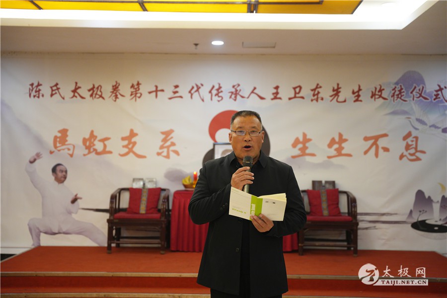 (太极网讯)三月的沂州大地,春意盎然;碧波的沂水河畔,绿枝招展。3月19日,陈氏太极拳(马虹支系)第十三代优秀传承人王卫东先生开山收徒仪式于临沂宾馆酒店内隆重举行。赵立君、时舒然、黄河、曹浩荣、李敬辉、冯东、王元新、刘旭昌、刘士伟、陈冲等十名热爱传统陈氏太极拳的有志学子,躬身拜入门下,他们将续写一幕传承和发扬的唯美篇章。 出席仪式的嘉宾有:原郯城县武术协会常务副主席、查拳门第四代优秀传承人、临沂金马武术馆馆长朱丙金,陈氏太极拳网校校长陈彦胜,郯城武术协会副主席、山东刘辉太极工作室创始人刘辉,郯城县第五实验小学党总支书记李彦刚,郯城武术协会副主席徐少华,临沂市人民广场传授站站长张燕,郯城传授站站长陈宇,莒南传授站站长彭春辉,新沂市传授站站长杨洪江、刘香柱,新沂市经济开发区传授站站长狄伟,郯城东城新区传授站站长孙小伟,郯城县白马河太极传授站站长周斌。以及同门师兄弟和郯城、临沂市的各位拳友等。 来自临沂市武术协会副主席张学金,临沂市电子科技学校校长杨军,郯城县人民政府教育督导室主任解成光未能参加本次收徒仪式,纷纷发来贺电祝贺。张海英先生、陈宇女士作为本次收徒仪式的见证人。 弟子代表赵立君宣读拜师帖 新入门弟子依次上前行拜师礼、递交拜师贴、敬拜师茶、叩拜,然后师父回帖泽赠礼物。 新入门弟子代表刘士伟表态发言:师父领进门,修行在个人,今已入门,希望各位弟子以后能够勤学苦练,不辱师门,为弘扬传统太极文化做出自己应有的贡献。 王卫东带领新入门弟子拜见师爷以及同门师叔师伯 王卫东师父、陈氏太极拳第十二代优秀传承人刘辉讲话 嘉宾代表朱丙金讲话 陈氏太极拳网校校长陈彦胜讲话 见证人陈宇致辞 王卫东师父对弟子讲话 弟子太极拳展演 学员太极拳展演 表演环节 弟子和师父合影 合影留念 太极拳档案: 王卫东先生,山东兰陵人,师承太极拳名家、陈式太极拳第十二代优秀传承人刘辉先生。现任郯城县武术协会理事、山东刘辉太极工作室教练员、中国武术五段、中国温县陈式太极拳联合会高级教练员。自2009年追随师父刘辉习练陈氏太极拳至今,研究习练传统陈氏太极拳的拳理、拳法、套路、器械等。多年来多次组织和参加省、市、县、以及国际国内太极拳各种交流竞赛活动,获得各类奖牌四十余枚的好成绩。十几年来,为发扬太极文化、弘扬国粹做出了积极贡献,学员遍及山东、陕西、黑龙江以及临沂、郯城、费县、莒南、莒县、临沭、苍山、沂南、蒙阴等地。 责编:申烜臣 |