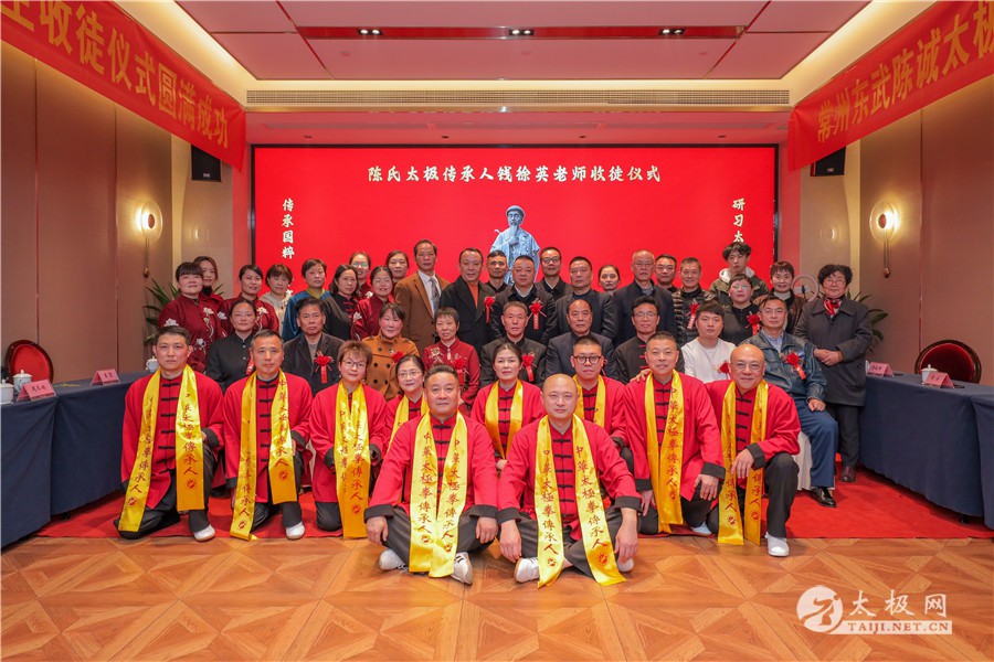 (太极网讯)3月26日上午,陈氏太极拳传承人钱徐英老师收徒仪式在江苏常州九洲环宇大酒店举行。赵阿明、高春红、曹旭平、袁玉萍、张华平、吴剑锋、夏萍、陈敏杰、吕孟良、曹烨等10名太极拳爱好者通过传统拜师仪式拜入钱徐英门下,正式成为陈氏太极拳传承人,肩负起传承推广太极拳的使命和责任。 江苏省武术协会副会长/常州市武术协会会长杨国大,江苏省武术协会理事/常州市武术协会秘书长袁黎,江苏省武术协会理事/常州市武术协会副会长周冬林,常州市武术协会副秘书长朱莉,江苏九洲创投基金总经理严志伟,常州市天宁区餐饮商会会长/江苏文笔山庄集团有限公司董事长陈振,太极名家张东武弟子/陈氏太极拳第十三代传承人常跃辉、陶安、朱正洁,常州市孟河太极协会会长张银根,常州市新北区东武陈诚太极分会会长杨建耀,江阴横土太极协会会长肖惠琴邓嘉宾出席并见证了本次仪式。 钱徐英致辞 师父钱徐英告诫弟子要努力学习、认真钻研、持之以恒、把太极拳练好,为弘扬太极文化做贡献。希望弟子们要遵守门规戒律,刻苦练拳,承担起弘扬传播太极之贵,认真学习太极拳技艺,为传播和弘扬太极拳文化作出自己应有的贡献。努力前行,不忘初心! 钱徐英同门师兄弟朱正洁致辞 太极拳档案: 钱徐英:师承太极名家张东武先生和徐勤兰女士,江苏省武术协会理事、常州市武术协会副会长、中国武术六段、一级社会体育指导员、一级武术教练员,2020年太极网传播盛典“十大杰出传播奖”获得者,2021年度“最美太极人”荣誉获得者,现任常州东武陈诚太极协会、常州青龙太极协会会长,常州市老年大学、常州市青龙老年大学太极拳教练。 责编:申烜臣 |