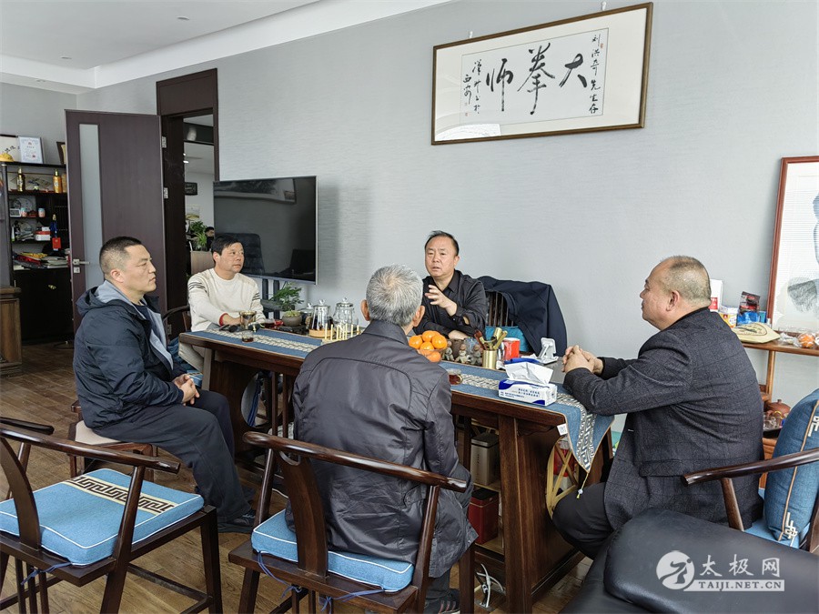 (太极网讯)2023年4月7日,位于太极拳发源地温县的太极网总部内高朋满座,来自甘肃兰州、广东东莞、河南开封等地武术协会相关负责人一行到访,以武会友,交流非遗太极拳、书法、正骨等。 在太极网创始人刘洪奇、总编李超以及太极网团队的热烈欢迎和接待中,甘肃省太极拳协会副主席、兰州市武术协会主席李永忠,东莞市武术协会监事长、太极网东莞分站站长张辉,开封市武术协会太极拳专委会主任、太极网开封分站站长张明等来宾就武术太极拳等共同话题促膝长谈,友好互动。 陈家沟太极拳代表性传承人陈俊凌,陈家沟太极拳武校校长陈冲,焦作市市级非遗“晁氏正骨”代表性传承人晁前进等人就太极拳和传统正骨等技法和产业发展等与众位来宾进行了深入探讨,交流活动在热烈和谐的氛围中取得圆满成功。 |