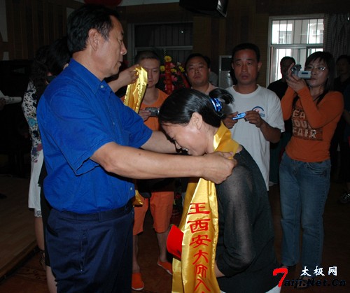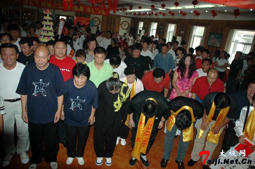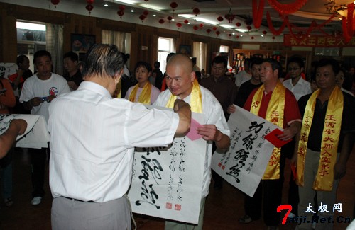 ——写在王西安大师六十四华诞之际 又是一年秋风爽,又到硕果累累时。8月29日,王西安大师六十四华诞寿宴之际,来自五湖四海的拳友又欢聚一堂,共同庆祝恩师六十四岁华诞。同时,来自全国各地的十五名拳友在大师华诞之际,有幸成为大师的入室弟子,喜圆了一生夙愿。 中国民间武术家联谊会会长孙德育也特地赶来为大师祝寿,同时,因各种原因未能赶来祝寿的山东、北京以及日本、美国等地的弟子们纷纷发来贺信、贺电,为恩师寿诞送上真挚的祝福,祝老师永远健康长寿!桃李满天下! 王西安拳法研究会会长阎素杰在庆祝仪式上讲话,并代表研究会及各地分会的会员们祝大师生日快乐。她说,弟子们每年都会不辞辛苦赶来为老师祝寿,这是博大精深的太极拳把大家凝聚在一起,也是恩师多年的心血栽培让我们结下师生情谊。这些年来,王西安大师一直不顾年事渐高,含辛茹苦传授拳技,就是为了让每个弟子都早日学有所成,特别是对王西安拳法研究会的每一点成长,都倾尽了老师毕生的心智和汗水。如今,我们拳法研究会能呈蓬勃发展之势,我们的学员能在“两赛一节”中遍地开花,连获殊荣,都凝聚着恩师的心血! 弟子们学拳如何同样也是恩师的牵挂。为了检验弟子们一年来的学拳成果,王西安拳法研究会特在温县武术馆举办了名家点评会,王西安大师和部分名师名家一起观看了常轩伟、祁广明、乔秀军、李京京、玄风、法弟拉、徐盛、朱力俊等人的太极拳表演。大家在互相沟通交流中,再次提高了拳技。 王西安大师收徒仪式上,李胜青、祁广明、祁俊平、李林鹏、张先军、孙永、邓世怀、郑顺利、朱力俊、史风、邹伟健、潘涛、刘雅娟分别向大师呈请了各自的拜师帖,并共同行拜师大礼。王西安大师也高兴地向他们一一颁发了传承书,分别赠送了绶带。在激动人心的时刻,弟子们围绕在恩师身旁,认真聆听着门规戒律,新入室弟子朱力俊也激动地说出了此刻的心情。 拜师仪式上,温县体育局局长宋明军、民间武术家联谊会会长孙德育也发表了热情的讲话,在对大师生日表示热烈祝贺的同时,对王西安拳法研究会近年来的蓬勃发展给予了高度肯定,希望大家都携起手来,为武术事业的发展壮大作出更加应有的贡献! [page]