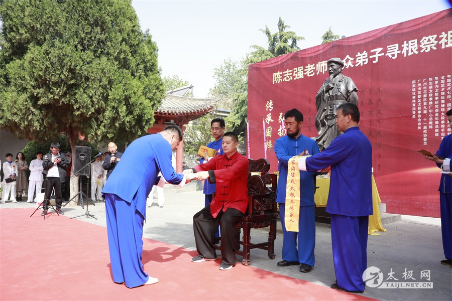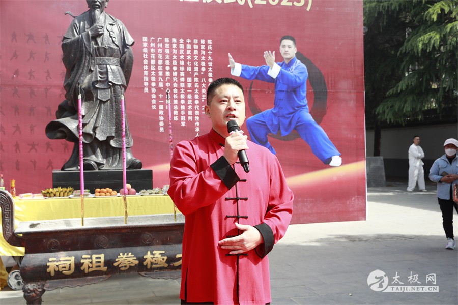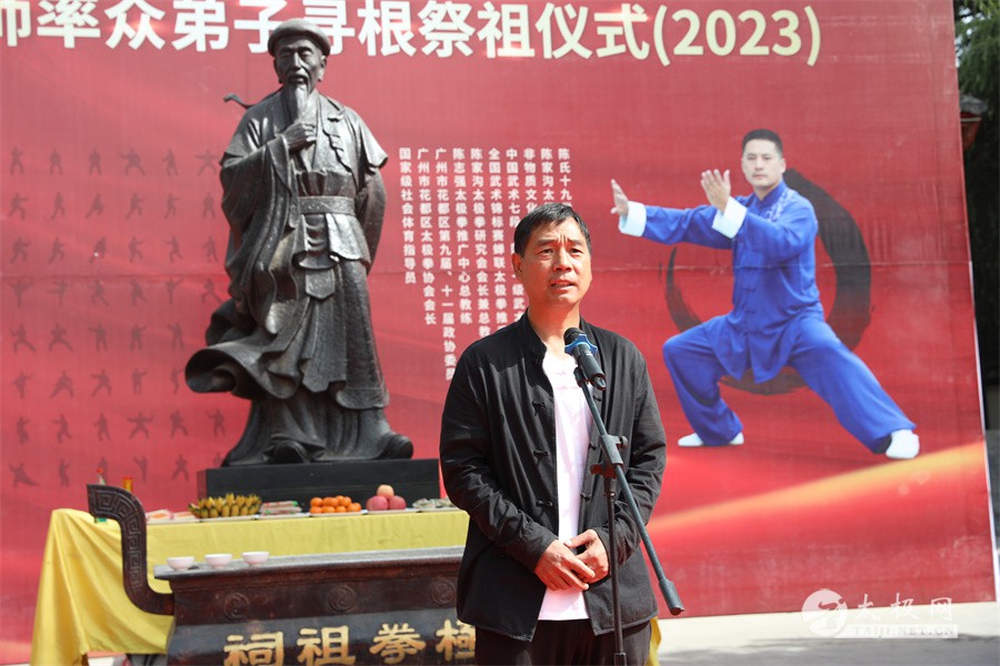 (太极网报道)2023年4月16日,陈家沟陈氏第十九世、陈式太极拳第十二代传人陈志强率百余名弟子学员走进太极拳发源地温县陈家沟,举行隆重的祭祖仪式,并于太极拳祖祠举行收徒传承仪式,米玉廷、刘西峰、郭荣彬、赵东萍、王庆安、许红、郭荣建、郑立新、董凤英、郭敏、刘晓莉、房绍伟、刘海涛、王兵等14名太极拳爱好者通过传统拜师仪式在太极圣地拜入陈志强老师门下,成为陈式太极拳传承人,将肩负传承太极拳、弘扬太极文化的责任和使命。 陈志强,1974年生于太极拳发源地陈家沟,中国武术七段、国家级社会体育指导员、中国武术段位考评员、指导员、国家一级武术裁判、一级拳师、陈氏十九世太极拳传承人、陈家沟太极拳“八大天王”之一、非物质文化遗产项目陈氏太极拳代表性传承人、广东省群众喜爱的社会体育指导员、广东省优秀社会体育指导员、焦作市“优秀太极之家”、广州市花都区第九届、十一届政协委员、韶关市武术协会技术顾问、广州市花都区太极拳协会会长、陈志强太极拳推广中心总教练。 仪式遵循传统,简洁庄重。陈志强老师宣读拜祖文,并向太极拳先祖上香、祭酒、行礼,告示收徒传承。准弟子们齐读拜师帖后,依次上前向师父陈志强递帖,行拜师大礼。 陈志强老师向弟子训话,寄望新入门弟子练好拳、做好人。以传承人身份严格要求自我,谨守门规戒律,刻苦钻研拳理拳法,成长为太极拳传承发展的中坚力量。 新入门弟子代表热情而诚挚的发言表达了拜师的激动和感恩之情,深深受益于太极拳的她表示,今后将会谨遵师父教诲,恪守门规祖训,精心感悟太极真谛,为早日成为优秀的太极拳传承人不断努力,为太极拳事业的发展贡献自己的力量。 新老弟子和学员依次向太极拳先祖上香,表达崇敬和缅怀之情,彰显着太极拳代代相传、薪火相承的生机。随后,现场进行了精彩的太极拳表演,众弟子在陈志强老师的带领下武动太极神韵,为本次活动画上一个圆满的句号。 责编:小七 |