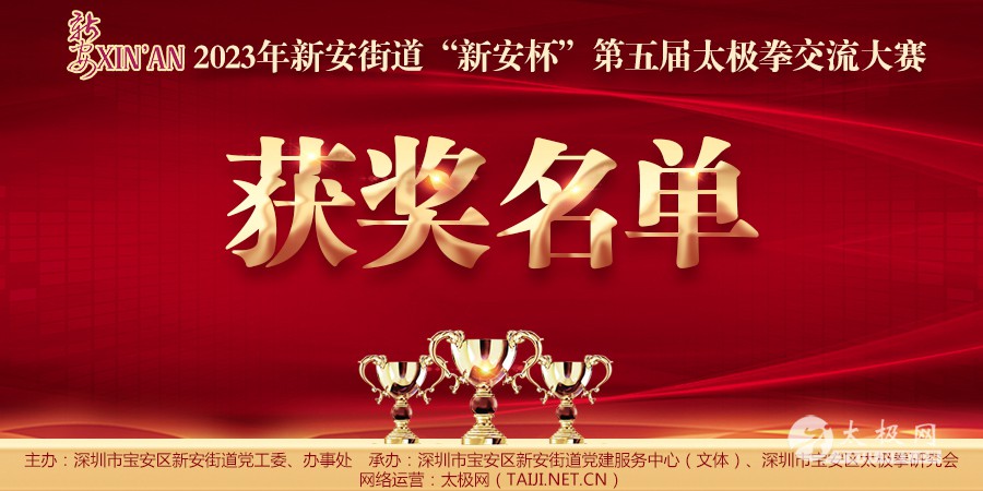 为了响应“发展全民健身、建设健康中国”的号召,同时倡导市民积极参与体育锻炼,展示新安街道文化体育运动的蓬勃发展,由深圳市宝安区新安街道党工委、办事处主办,深圳市宝安区新安街道党建服务中心(文体)、深圳市宝安区太极拳研究会承办,太极网提供全程网络服务的2023年新安街道“新安杯”第五届太极拳交流大赛(网络赛)再度成功起航。 大赛一经发起,各地太极拳组织积极响应,最终累计3000余人参赛,精选1671部参赛作品(含集体项目)参与展播。 本着"公开透明、客观全面、权威公正"的评审原则,组委会邀请专业裁判员组建强大的评审团队为大赛裁判工作提供了坚实保障,最终评审出合规视频1667部。在此对广大参赛选手、团队及裁判评委们一并表示衷心的感谢!现将获奖名单公布如下: 获奖名单 青少年组前五名215 陈科昊 陈式传统太极刀 696 寇春杰 陈式太极剑 933 何沼君 陈式太极拳 517 蔡光宇 陈式太极拳 1711程果果 和式太极拳 成年组陈式拳械类前五名 1921杨国威 陈式太极剑 483 刘立辉 陈式49式太极剑 1368陈友町 陈式春秋大刀 639 刘军立 陈式太极49剑 122 沈 宇 陈式太极双刀 成年组杨式及其他拳械类前五名 760 郑利芳 42式太极拳 57 刘 刚 太极五形通背枪 1736和文超 和式太极棍 1580郑青平 42式太极剑 367 刘雪英 吴式45式太极拳 老年组陈式拳械类前五名 1077王俊岭 陈式56式太极拳 32 薛 建 陈式太极单剑 1085刘素花 陈式49式太极剑 1404王立新 陈式26式太极拳 188 干龙香 陈式49式太极剑 老年组杨式及其他拳械类前五名 833 郑宜兰 42式太极拳 1587戚玉连 42式太极拳 754 马昌凤 32式太极剑 1062丁淑玲 传统杨氏太极刀 1583黄首祥 36式太极刀 集体项目前六名 340 河北省邱县新马头镇队 280 高阳武术研究会 1231深圳市东乐社区太极拳辅导站 1271中洲太极拳辅导站 870 深圳市宝安静思园太极队 1528大竹县东湖太极队 以下排序不分先后 青少年组拳术类 933 何沼君 一等奖 214 陈科昊 一等奖 517 蔡光宇 一等奖 1711程果果 一等奖 1724和睿熙 一等奖 1740赵昕怡 一等奖 1038黄 灿 一等奖 314 吕安然 一等奖 103 许晋瑞 一等奖 1733和钰凯 一等奖 126 焦奥博 一等奖 661 张馨文 一等奖 1745李芷萱 一等奖 1717和 楠 一等奖 967 何彦霖 一等奖 388 付曼绮 一等奖 1752张鑫雯 一等奖 1006阮昊天 一等奖 735 宋梓萁 一等奖 1763张 森 一等奖 1729和仁爱 一等奖 1834郭嘉乐 一等奖 1720和文悦 一等奖 1504李嘉浩 一等奖 1741梁思成 一等奖 1500江卓远 一等奖 1709和敏杰 一等奖 1723和书辉 一等奖 1746宋书瑶 一等奖 1754孙浩然 一等奖 316 郑显威 二等奖 695 寇春杰 二等奖 1757廉熠辰 二等奖 1767卫佳豪 二等奖 1769卫青毅 二等奖 1779赵艺豪 二等奖 1771任恒宇 二等奖 1761郭润泽 二等奖 1730和博华 二等奖 221 胡肖肖 二等奖 1731和怡扬 二等奖 1533李奕坤 二等奖 1749和铭志 二等奖 1727王谦益 二等奖 1726杨亚轩 二等奖 1747鲍皓楠 二等奖 1785韩玉琪 二等奖 1783殷子祺 二等奖 1759廉熠轩 二等奖 1738和铖哲 二等奖 1748李长宇 二等奖 1526阮健婷 二等奖 1714李宇鑫 二等奖 1715程明豪 二等奖 1750和铭杰 二等奖 1836徐一航 二等奖 1728徐子轩 二等奖 1716王晨宇 二等奖 1718尹炳皓 二等奖 1742和恩旭 二等奖 1743鲍彦玉 二等奖 1751鲍一晨 二等奖 975 罗昱勋 二等奖 1765张轶普 三等奖 1781王宸烨 三等奖 1775廉荣阳 三等奖 506 郭思龙 三等奖 1734程致远 三等奖 1725程 睿 三等奖 1722和法旭 三等奖 1773王希荣 三等奖 1737和志轩 三等奖 1739王学钊 三等奖 1713李夏一 三等奖 1753申梓阳 三等奖 1907毋豫坤 三等奖 1777张文轩 三等奖 1712和怡萱 三等奖 1744李钰洋 三等奖 1710和浩尘 三等奖 1548李 卫 三等奖 1719和梓玥 三等奖 662 张恒睿 三等奖 1755宋林函 三等奖 1015李承昊 三等奖 1292张鼎析 三等奖 1787郭瑾汐 三等奖 青少年组器械类 215 陈科昊 一等奖 770 何沼君 一等奖 565 蔡光宇 一等奖 696 寇春杰 一等奖 968 何彦霖 一等奖 389 付曼绮 一等奖 737 宋梓萁 一等奖 1772任恒宇 一等奖 1758廉熠辰 一等奖 1039黄 灿 一等奖 315 吕安然 一等奖 46 陈怡瑄 一等奖 1835郭嘉乐 一等奖 1837徐一航 一等奖 318 郑显威 二等奖 128 焦奥博 二等奖 1770卫青毅 二等奖 1764张 森 二等奖 1766张轶普 二等奖 1768卫佳豪 二等奖 1732和怡扬 二等奖 1784殷子祺 二等奖 1788郭瑾汐 二等奖 1760廉熠轩 二等奖 1776廉荣阳 二等奖 1782王宸烨 二等奖 1549李 卫 二等奖 1286张楚析 二等奖 973 罗昱勋 二等奖 1721和文悦 二等奖 1774王希荣 三等奖 1780赵艺豪 三等奖 1786韩玉琪 三等奖 1778张文轩 三等奖 1762郭润泽 三等奖 1424张隽鑫 三等奖 1481尹璐菲 三等奖 1450刘 栩 三等奖 1288张鼎析 三等奖 1449贺 乐 三等奖 1491邓雅琪 三等奖 成年组陈式太极拳 1326陈友町 一等奖 609 颜昭平 一等奖 724 曹新华 一等奖 1349施巨来 一等奖 568 段东辉 一等奖 655 王志聪 一等奖 603 陈兰枝 一等奖 319 罗邦涛 一等奖 310 张鹤英 一等奖 915 罗光育 一等奖 1462黄秋爱 一等奖 811 夏翠娟 一等奖 300 骆占杰 一等奖 89 尹 航 一等奖 121 沈 宇 一等奖 110 阮 洋 一等奖 19 林科丞 一等奖 204 陈 征 一等奖 1119金 雪 一等奖 1531张升一 一等奖 1 刘福生 一等奖 615 赵春丽 一等奖 1433欧文廷 一等奖 29 兰惠玉 一等奖 1512张爱玲 一等奖 664 刘 静 一等奖 369 江中保 一等奖 1262张小兴 一等奖 1377孙宏惠 一等奖 1919朱永芳 一等奖 1348李国强 一等奖 1166郭