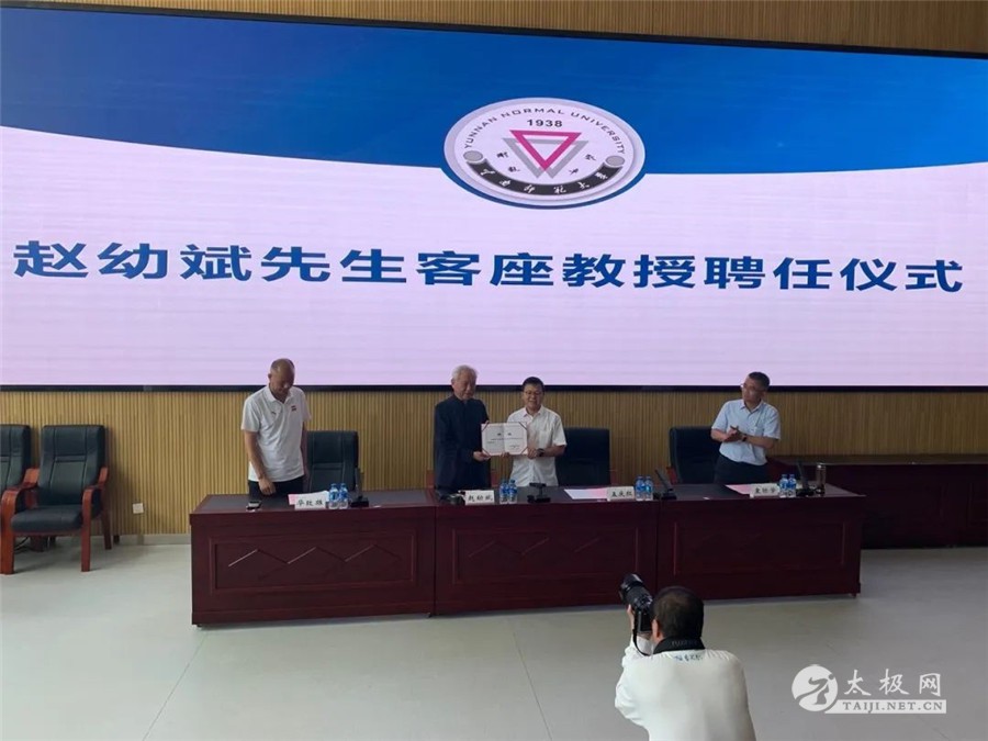 2023年6月1日下午,中国武术协会委员、杨氏太极拳第五代嫡传人赵幼斌先生受聘为云南师范大学客座教授仪式在云南师范大学呈贡校区学前教育大楼301报告厅举行。云南师范大学副校长孟庆红,云南省老体协武术专委会常务副主任、原云南省纪委正厅级监察专员王勇,云南省教育厅二级巡视员朱金陖,云南省武术协会副主席杨勇,体育学院领导班子成员,以及爱好武术的200余名师生代表出席了活动,聘任仪式由体育学院党委华致雄书记主持。 聘任仪式上,华致雄书记简要介绍了赵幼斌先生的基本情况;随后,孟庆红副校长为赵幼斌先生颁发了客座教授聘书,并发表讲话。 他表示,云南师范大学是一所具有体育特色的高校,是云南省培养体育师资的的重要基地。多年来,学校坚持以学生为本,重视教学与课外活动的结合,增强学生体质,促进学生身心健康。武术作为中华文化的重要组成部分,在云南师范大学的开展也是如火如荼。学校开设武术与民族传统令专业,大学体育开设武术项目,校武术代表队多次参赛获奖;使武术文化得到了很好的传承和发展。 孟庆红副校长认为,太极拳作为中国的四大国粹-中华武术的重要组成部分,应该让更多的年轻人去传承发展。传承武术不仅可以推进云南师范大学武术文化的发展,还可以传承中国武术传统,为中国文化做出贡献。同时,他希望通过借助师大这个平台,把太极拳进一步推向世界。 赵幼斌先生对云南师范大学聘任他为客座教授表示感谢。他认为,云南师范大学是一所历史悠久的高等学校,杨氏太极拳进校园,可以促进学生的学习和交流。他表示,今后尽个人最大努力为学校发展做出自己应有的贡献。 随后,赵幼斌先生向云南师范大学体育学院进行赠书,袁际学副院长(主持工作)接受赠书。 聘任仪式结束后,赵幼斌先生进行现场授课,对杨氏太极拳的练拳基本要求进行了具体的讲解说明。 讲座最后,袁际学教授对此次讲座进行了总结。他真诚感谢赵幼斌先生接受云南师范大学体育学院的邀请,为体育学院师生带来了一场精彩的、生动的讲座;希望未来赵幼斌先生有更多机会与学院师生深入交流,更好的传承中华传统文化。本次讲座在师生们热烈的掌声中圆满结束。 |