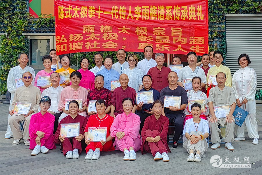 2023年7月22日上午,陈氏太极拳第十一代传人李雨樵谱系传承典礼在深圳隆重举行。 历时两个多月,雷慕尼先生门下李雨樵老师部分弟子申报材料统一收集工作全部完成,本次《陈氏太极拳传承网信息申报》前期共计上传55名弟子申报资料,其他弟子下一阶段也将陆续上报上传! 典礼伊始,李雨樵老师带领弟子们集体演练了陈氏太极拳老架一路以及自己创编的雷慕尼陈氏太极拳45式,以告慰祖先在天之灵!感念先辈造拳之辛! 接下来,李老师为深港两地的弟子们颁发了《太极拳传承谱系工程传承人入谱证书》,并和大家合影留念!其他国内外的弟子们未能前往典礼现场,甚是遗憾! 传统文化:传的是技艺;承的是血脉!众弟子将会在师父李雨樵的带领下,谨记祖训,恪守陈氏雨樵太极师训「弘扬太极,彰显内涵,和谐社会,康乐人生」,为祖国传统文化瑰宝太极拳的传承传播继续努力! 众弟子与李雨樵老师合影 李雨樵老师简介: 李雨樵,原名李超,1943年生于河南,现居深圳,九华山居士,佛家弟子,法号慧超。太极宗师雷慕尼入室弟子,陈氏太极拳第十一代传人,中国传统武术太极拳九段。香港世界永年太极拳联盟会荣誉会长、香港武术家协会荣誉会长、香港李老能形意拳研究会荣誉会长、香港康艺研究会荣誉会长、国家一级社会体育指导员、深圳市武术协会理事、香港陈式九华太极研究总会总监、深圳陈式九华太极推广中心主任、香港国际武术精英赛总裁判长、法国东方文化研究会陈氏太极拳总教练、深圳九华太极推广中心主任兼总教练、香港李雨樵太极研究总会会长。 书太极拳史,立传承人传。传承谱系链接:太极拳传承网 责编:小田 |