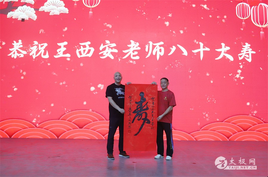 (太极网讯)2023年8月12日,国家级非物质文化遗产陈氏太极拳代表性传承人王西安八十寿诞庆典活动于太极拳发源地隆重举行,来自全国各地的王大师弟子传人、亲朋好友及众多武术界好友近三百人欢聚一堂,在印象太极全域剧场观看完节目后,共同为誉满海内外、德艺双馨的王西安大师祝寿。 王西安大师家人向他祝寿 弟子向师父王西安祝寿 王西安老师是当代陈氏太极拳“四大金刚”之一,享誉拳界的“国际太极拳王”。太极人生数十载,扎根故土,坚守在太极拳发源地,用一腔热忱回馈家乡父老,传道授业,将太极拳传播至世界各地,桃李满天下。 寿宴安排在中国太极拳国际交流中心东厅太极大剧场,祝福的话语、真挚的感情洋溢着整个寿宴会场,在场者都在用各自的方式庆祝王西安大师的八十岁寿诞,祝福王西安大师福如东海长流水,寿比南山不老松!共贺恩师喜寿,现场即兴演出,和谐融洽,为王西安大师献上了一场别开生面的生日寿宴。 |