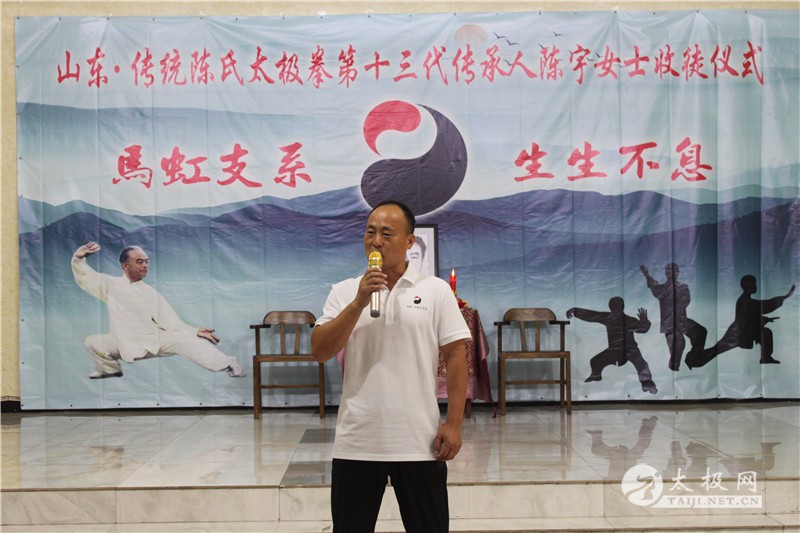 八月的古郯大地,绚丽多彩、丹桂飘香,这是一个收获的季节,是喜悦的季节!2023年8月13日,马虹支系传统陈氏太极拳第十三代传承人陈宇女士开山收徒仪式隆重举行,徐冉、刘天姿两位才俊少年躬身拜入陈宇女士门下,谱写了一幕传承与弘扬的唯美篇章。 出席仪式的嘉宾有:郯城武术协会副主席、山东刘辉太极工作室创始人刘辉先生,临沂市电子科技学校校长杨军先生,郯城县第五实验小学党总支书记李彦刚先生,郯城东城新区传授站站长孙小伟先生,新沂传授站站长杨洪江先生、刘香柱先生、狄伟女士,临沂传授站站长王卫东先生,介绍人孙思玉先生以及各同门师兄弟。 拜师仪式遵照传统仪式有序进行,新入门弟子首先递交拜师贴、行拜师礼,随后师父回帖,颁发太极拳传承人证书,为新入门弟子披挂太极拳传承人绶带。最后陈宇女士向马虹先师敬香行礼,追忆先辈创拳之恩德,感念先贤传拳之辛劳。在众人的见证下,拜师仪式圆满礼成。 这次开山收徒仪式不仅吸引了众人的关注和参与,也为传承和弘扬太极文化注入了新的活力。相信在陈宇女士和众弟子的共同努力下,陈氏太极拳这一优秀的传统文化将会得到更好的传承和发扬。 陈宇,祖籍江苏无锡,传统陈式太极拳第十三代传人,中国武术协会会员,中国武术五段,国际武术六段,国家一级裁判员,国家一级教练员,国家二级社会辅导员。国网临沂供电公司太极拳协会副会长,郯城县武术协会理事,郯城刘辉太极工作室教练员。教授、指导学员达300多人,多次在国内、国际赛事中取得优异的成绩。2021年被太极网、太极拳传承网、大拳师联合会等先后评为十大优秀馆校长和最美太极人荣誉称号。 |