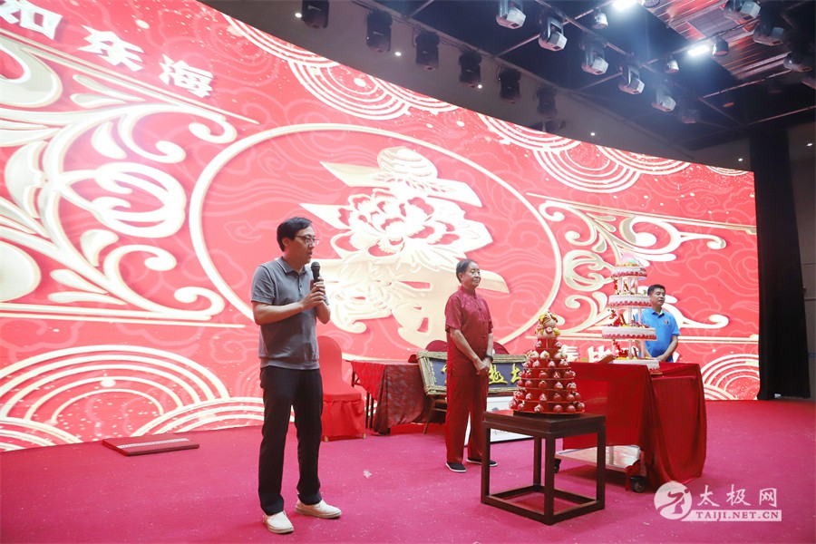 (太极网讯)8月20日,国家级非物质文化遗产陈氏太极拳代表性传承人朱天才大师八十寿诞暨收徒仪式在温县隆重举行,来自世界各地的天才太极体系弟子传人及武术界嘉宾们聚集一堂,共同参与和见证这一重要时刻。 朱天才大师致辞说,感激众多弟子和朋友们在这个特殊日子里对他的祝福和支持。他强调,太极拳是中华民族的瑰宝,期待大家携手为太极走向世界贡献力量。 活动现场举行了入编《中国武术文化遗产保护传承人物》资格的证书颁发仪式。朱保林、朱向前、朱向怡、朱向华四人凭借在陈式太极拳领域的杰出贡献,成功入编该资格。朱天才大师为四子颁发证书,寓意着太极拳薪火传承,代代有序。 中国好功夫百强武馆证书颁发仪式 收徒仪式由陈家沟天才太极院院长朱向华主持,仪式简洁庄重,十三名弟子通过传统仪式拜师。 寿宴在一曲欢快的生日歌中拉开序幕。朱天才大师在家人和众弟子的簇拥下,一起切下了生日蛋糕,分享这个值得纪念的时刻。来自世界各地的弟子和朋友们纷纷送上祝福,为这位陈式太极拳的代表性人物献上最诚挚的祝福。 陈家沟太极拳各体系代表性传承人,在场的所有弟子和天才武院的代表们纷纷上台向大师祝寿,献上诚挚的祝福。朱天才大师的弟子们表示,他们将秉承大师的教诲,致力于陈式太极拳的传承和发展,让这一中华武术的瑰宝在世界范围内发扬光大。 寿宴最后,全体起立大合唱《我和我的祖国》,在场所有人员一起歌唱我们的祖国,祝福我们的祖国繁荣昌盛。 精彩节目展演 责编:邓豪杰 |