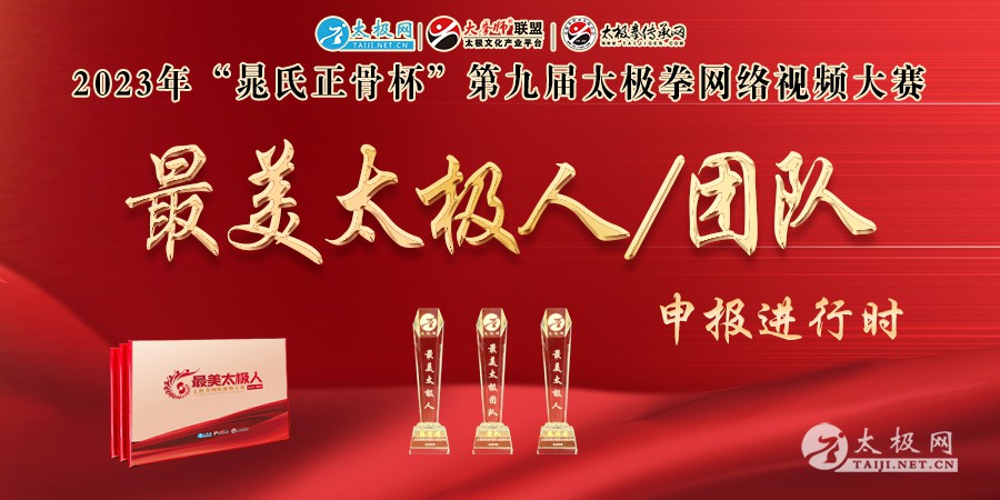 寻找最美太极人——2023年“晁氏正骨杯”第九届太极拳网络视频大赛巅峰启航,各地拳友和太极拳组织共3000余人参赛。为进一步扩大大赛影响力,充分挖掘和宣传那些在各地区为太极拳传承和传播推广工作做出卓越贡献的参赛选手,借助视频大赛网络传播优势宣传参赛选手、推广“最美太极人”形象, 2023年度“最美太极人”“最美太极团队”申报及评审工作于即日开启,申报请联系组委会,颁奖典礼定于10月13日至15日于温县举办。 “最美太极人”“最美太极团队”荣誉评审将更加全面的审视每一位参赛选手,表彰宣传不仅考虑参赛选手的获奖情况,同时兼顾参赛选手个人和团队的影响力以及为太极拳传播所作贡献等多方面因素,以荣誉表彰鼓励参赛选手更加积极地传播推广太极拳。 现将申报及表彰宣传办法公布如下: 一、参评对象及条件 1. 申报对象 2023年“晁氏正骨杯”第九届太极拳网络视频大赛荣获个人或集体一、二等奖的参赛选手。 2. 参评条件 须经相关太极拳组织推荐,在太极拳组织担任职务和教学工作的;在当地太极拳界有较高知名度和影响力,为太极拳传播和推广做出成绩贡献者。 二、申报评审流程 由选手个人及团队自主申报,经组委会初审和复审,审核通过后在大赛颁奖典礼予以公布表彰。 三、表彰及宣传办法 大赛组委会为获奖选手制定了全面的宣传方案,充分结合太极网全媒体传播优势,为“最美太极人”“最美太极团队”进行全方位宣传。 1. 颁发获奖荣誉证书及奖杯。 2. 设计制作个人宣传海报,颁奖典礼现场展示。 3. “最美太极人”专属定制服装一套、定制绶带一条。 4. 出版“最美太极人”专刊画册,含个人介绍及拳照,内附二维码对接个人网络专栏。 5. 太极网演播室可为“最美太极人” “最美太极团队”提供专业拳照、套路等影像摄制服务。 6. 太极网专访获奖选手,并全媒体推广专访文章。 7. 太极网设置“最美太极人”永久展示专栏。 四、申报联系 手机(微信同号) 田 丽 177-0391-6070 郭 蕾 138-3913-1859 杨 超 152-3915-0487 邓豪杰 130-0765-9881 五、其他 最终解释权归大赛组委会所有。 太极网(TAIJI.NET.CN)