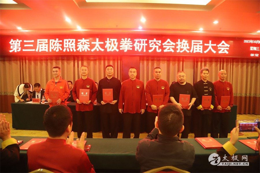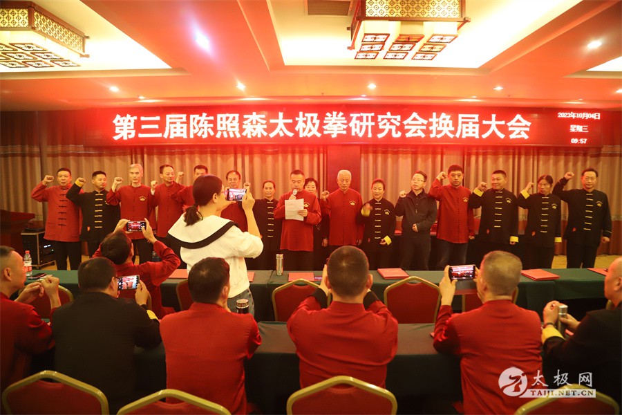2023年10月4日,第三届陈照森太极拳研究会换届大会在陈家沟王廷酒店召开,百余名研究会成员齐聚一堂回顾历史、展望前景,共商研究会发展大计。 王运宜作工作报告 陈志伟宣读郑辉宇先生致词并作财务报告 参会人员表决通过报告 会议在中华人民共和国国歌声中拉开序幕。陈照森太极拳第二届研究会会长王运宜代表第二届研究会作工作报告,第二届陈照森太极拳研究会秘书长陈志伟作《陈照森太极拳研究会第二届财务工作报告》,参会人员对所作报告进行举手表决并鼓掌通过;会议表决通过了第二届理事会名单,宣读了理事长、副理事长人员候选人名单以及会长、副会长拟聘任名单,由新当选的理事成员进行举手表决并鼓掌通过。 新任理事长蔡加雄讲话 陈照森太极拳研究会理事长蔡加雄在讲话中表示,理事会成立以来,秉承增强和提高广大教练员弟子及拳友素质为核心,使师门人才队伍日益庞大。作为这届理事长,会承前启后牢记使命,勇于担当,积极开拓新局面。 有信心团结理事会同仁,齐心协力完成本届目标任务,为光大陈照森师父拳法,为陈家沟功夫学校发展壮大迈上一个新台阶而努力。 新当选的理事长、会长带领新一届领导班子宣誓 陈照森总结讲话 陈照森大师作总结讲话,他首先对各位理事、理事长、会长表示祝贺。大家走到一起就是一家人,要注意团结。要让我们太极拳体系的所有人,心暖起来。加强传承和推广,不断的进行太极拳文化的研究和探索。功夫学校就是大家的家,欢迎大家常回家看看。 为新一届研究会领导班子颁发聘书 |