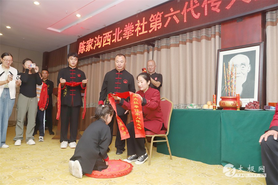 (太极网讯)太极为媒连四海,高朋满座襄盛事,2023年10月4日,陈家沟太极拳功夫学校校长、陈家沟西北拳社第六代传人陈志伟老师收徒仪式于太极拳发源地隆重举行。陈鸿飞、冯馨颐、陈家博、王梦雪、陈沛欣五位太极拳爱好者过师门重重考验,依照传统拜师仪式正式拜入陈志伟老师门下。 |