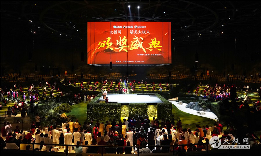 源于古温,网聚武林英豪,属于世界,共享最美太极! 10月13日至15日,太极网第九届颁奖盛典在太极圣地温县隆重举行。14日,活动主会场陈家沟《印象·太极》剧场内群英荟萃,来自世界各地的800余名各流派拳师拳友参与、共享并见证“互联网+太极拳”年会的高光时刻。 作为太极网首创的核心品牌赛事,寻找最美太极人——2023年“晁氏正骨杯”第九届太极拳网络视频大赛线上共有3000余名选手参赛,本届大赛线下活动之颁奖盛典联合太极全域剧场共同主办,太极场馆”天花板“华灯璀璨、人潮涌动,交相辉映呈现了一场无与伦比的太极盛宴。 焦作市文化馆副馆长、市非物质文化遗产保护中心副主任娄莎莎,温县太极拳武术文化发展中心党组书记任海林,温县非物质文化遗产保护中心主任闫忙种,原温县体育局局长原福全等嘉宾出席开幕式。 河南大学武术学院院长洪浩,少林与太极杂志社总编赵国华,中国丽江国际武术节组委会主任、丽江市武术协会主席马涛,承德太极拳精英大赛创办人、承德市武术协会主席项争鸣,甘肃省太极拳协会会长刘建华、副会长秦川,豫记太极创办人、修武县武术协会会长王明等武术大咖及太极网赛事活动合作方应邀出席。 太极盛典,群星闪耀,99岁高龄的陈全忠和87岁高龄的李树发老师专程从陕西西安赶赴陈家沟。来自全国各地的陈氏太极拳名家、优秀传承人解礼德、王胜利、吴颖锋、薛奇英、张勇刚、职永成、翟文胜、常子轩、陈庆峰、董曙光、秦兰玲、梁翠平、陈彦胜、周新、唐艳华、顾伟、王林、郑广济、顾永发、张明、陈金生、王运宜、唐光拾、董丰电、史成和、申小建、张振龙、崔法强、尚德望、谢守德、赵喜宝、朱峰、蔡燕青、胡朝芳、方东升、马国超、周志强、沈印年、常明月等,杨氏太极拳名家、优秀传承人范德治、宋斌、赵现平、李海水、苏河、丁岑亮、刘太多、任玉兰、沈发兴等共襄盛会。 太极拳发源地温县的拳师代表有国家级非物质文化遗产陈氏太极拳代表性传承人朱天才,陈照森、陈清环、陈长义、陈自强、王战军、陈冲、张东武、陈炳、陈桂珍、陈大虎、陈二虎、陈向武、陈有则、陈有华、陈春爱、李利清、陈朝霞、陈绍杰、陈天森、张波、陈剑、吴威、陈小芹、党绍静、张世庆、李文权、陈娜、李灵慧、郑佳琦、邓梦晓等到场助阵,向获奖选手颁奖并参加名家表演等。 太极拳网络视频大赛组委会执行主任、太极网总编李超,焦作红棉集团总经理范燕晓,广州百养堂大健康产业有限公司总经理李昊烜,大赛冠名单位晁氏正骨代表性传承人晁前进等主办方及合作方代表出席盛会。 太极拳网络视频大赛组委会主任、太极网创始人刘洪奇致欢迎辞,他代表组委会向各位嘉宾的到来表示热烈欢迎,对获奖选手表示祝贺,对大赛评委老师们表示感谢。太极网创立于1997年,服务于各流派太极人。“互联网+太极拳”年度盛会始于2015年,在广大太极人的关注和支持下,大赛规模不断刷新,影响力不断加大,为拳友搭建学习交流的全球大武台。刘洪奇说,只有实现文明的继承和发展,文化才能弘扬和繁荣,从而助力中国梦的实现。作为太极人,传承和弘扬中国传统优秀文化为之骄傲。 杨雷致辞 太极全域剧场掌舵人、河南知行文化旅游有限公司总经理杨雷在致辞中向五湖四海太极人的到来表示欢迎,对太极网近三十载的坚守表示敬意,对颁奖盛典在太极全域剧场的举办表示感谢,期待双方以及与各地馆校协会和拳师等能有更多合作,为太极文化推广和产业发展贡献力量。 活动开始前,与会800名拳友共同观看了由著名导演张艺谋担纲艺术顾问的《印象·太极》演出,在震撼人心的视觉艺术享受后,太极界首屈一指的颁奖盛典拉开帷幕,隆重的仪式感、盛大的氛围感高潮迭起,本届大赛各项目获奖选手、团队依次上台领奖,站在聚光灯下感受立体环绕的掌声、欢呼声不绝入耳,沉浸式体验荣誉收获和喜悦。舞台属于每一位与会拳友和嘉宾,人人都是主角! 洪浩、刘洪奇为三等奖获得者颁奖 闫忙种、娄莎莎为三等奖获得者颁奖 任海林、晁前进为三等奖获得者颁奖 李超、李品含为二等奖获得者颁奖 李超、范燕晓为二等奖获得者颁奖 刘洪奇、洪浩为二等奖获得者颁奖 赵国华为二等奖获得者颁奖 王战军、周新为二等奖获得者颁奖 张东武、陈向武为二等奖获得者颁奖 陈照森、陈炳为一等奖获得者颁奖 陈有则、陈桂珍为一等奖获得者颁奖 张东武、范德治为一等奖获得者颁奖 李海水、张随胜为一等奖获得者颁奖 陈朝霞、刘继宏为一等奖获得者颁奖 朱天才、刘洪奇为一等奖获得者颁奖 陈冲、陈二虎为一等奖获得者颁奖 陈有华、陈大虎为一等奖获得者颁奖 刘洪奇、王运宜为一等奖获得者颁奖 陈向武、马涛为一等奖获得者颁奖 刘建华、常子轩为一等奖获得者颁奖 项争鸣、陈绍杰为一等奖获得者颁奖 陈向武、李超为一等奖获得者颁奖 吴颖锋、薛奇英为集体二等奖代表颁奖 苏河、赵现平为集体二等奖代表颁奖 梁翠平、周志强为集体一等奖代表颁奖 秦兰玲、陈彦胜为集体一等奖代表颁奖 常子轩、张世庆为集体一等奖代表颁奖 获奖选手代表张海燕发言 获奖选手代表赵玉芬发言 大赛终极荣誉大奖2023年度“最美太极人”“最美太极团队”命名表彰仪式上,获奖选手们身着“最美太极人”定制服装,意气