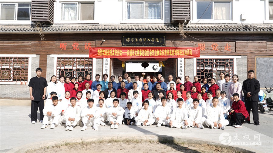 (太极网讯)太极为媒,以武会友,有朋自远方来来,不亦乐乎。2023年10月15日,来自湖北省的松滋市太极拳运动协会会长李业根、党支部书记罗必雄率领拳友团一行53人到访太极拳发源地温县陈家沟,受到陈家沟国际太极院院长陈炳的热情接待,拳友团将在太极圣地开启太极拳交流学习之旅,近距离感受太极拳根源文化和正宗技艺。 温县太极拳武术发展中心副主任姬会敏、陈家沟国际太极院名誉院长邢红军等出席欢迎仪式。陈家沟国际太极院的教练团献上了精彩的太极拳展演,用太极的方式表达热烈欢迎,来访的拳友团也进行了汇报展演给与回应,美好的太极之旅拉开序幕。 ![]() |