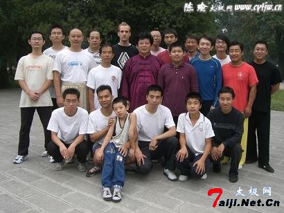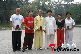 北京天坛总基地培训掠影 07年9月陈瑜老师与在京入室弟子合影 陈照奎拳社首批教练员及培训基地名单 2007年7月26日,陈照奎太极拳社首批教练员培训班圆满结束了.培训期间,陈瑜老师亲自为每位教练员盘架子,并逐个指出他们目前存在的优点及存在的不足,使教练员的拳艺又向上迈了一个台阶.最后经过陈瑜老师的审核,选拔出了陈照奎太极拳社首批教练员: 王敏夫 乔连永 胡伟航 宋玉芹 曾昭弟 并决定以北京为总部, 总基地设在北京天坛公园,拳社下设深圳,贵州、,东北,北京陶然亭公园培训基地。天坛总基地主要由陈瑜老师亲自传授。弟子辅助教学。