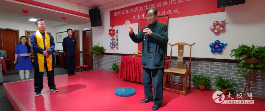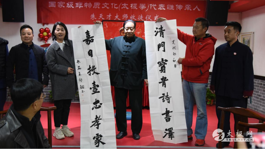 近日,国家级非物质文化遗产代表性传承人朱天才大师一行来到阔别多年的陕西西安,与他的在陕弟子、还有多年未见的老友、西安朱天才太极拳研究会(西安随太极武术馆)的会员及众多太极拳爱好者欢聚一堂,共同交流太极拳技艺,分享他六十余载的习拳心得,太极人生。随后应邀来到陕西丹凤,为当地的太极拳爱好者传经送宝,陕西之行是朱天才大师期盼已久的太极之旅,积极推动了“天才太极教学法”在陕西的发展,意义非凡。 2023年11月6日九时,朱天才大师一行莅临西安朱天才太极拳研究会(随太极武术馆),这里的教练员、会员及太极拳爱好者用热烈的掌声表达了对朱大师的期盼与欢迎,现场氛围热烈。朱大师和蔼可亲,与大家挥手致意后便带领大家练习太极缠丝功、十三式太极拳及太极养生八大功法。只见大师边练边讲:“脊椎为轴腰旋转,左右四十五度间,双手打开如弓架,拇指行于胸中间······”朱大师通过特有的朱天才教学训练方法,让在场的人感受到太极拳老前辈的大道至简与深入浅出的太极之道。 朱天才大师讲解陈式太极拳的呼吸方法及松活弹抖的训练方法 朱天才大师言传身教,带领随太极武术馆的教练员、会员们练习太极缠丝功法。 十二时,古刹大雁塔脚下“天下第一面”饭庄内,“国家级非物质文化(太极拳)代表性传承人朱天才大师收徒仪式”隆重开始,朱天才大师喜纳弟子翟江涛,嘉宾、领导、武术届的好友欢聚一堂。仪式古朴而庄重,氛围欢乐融洽。新进弟子翟江涛,酷爱太极拳,2013年跟随李彦斌习练陈式、孙式太极拳械等,2015年跟随郑宝兰老师学习赵堡太极拳及太极推手。自2016年起参加全国及国际级传统武术比赛获得奖牌30余枚,其中金牌占比达到67%,天才系又添新成员,朱天才大师自然是满面笑容。一场仪式,一份责任与使命,自此师徒同心,共同传承、光大太极拳文化。 受邀的嘉宾有陕西省体育局原直属党委书记、陕西省武术协会名誉主席支西贤先生;西安市武术协会副主席、陈式太极拳小架代表性传承人刘永强先生;西安市武术队高级教练、国家级运动健将韩益平先生;汉唐书画网总编、近山堂堂主乔岗先生;莲湖区武术协会顾问、王西安大师入室弟子余郅铖先生;铜川市武术协会主席、陈小旺大师入室弟子王建民先生;雁塔区三秦武术协会秘书长、陈正雷大师入室弟子兴隆先生;西安随太极武术馆馆长、朱天才大师入室弟子李彦斌先生;西安勇士搏击馆馆长、陈小旺大师入室弟子梁佳林先生;陕西永城铁路配件有限公司副总经理王传利先生;高新区武术协会荣誉主席、朱天才大师入室弟子李天在先生;陕西篤初堂文化发展有限公司总经理、杨式太极拳第六代传人高建新先生;陕西慧海投资有限公司总裁刘永斌先生;西安市兴达建材厂厂长、杨式太极拳第七代传人王西亭先生。 莲湖区武术协会副主席、办公室主任、朱天才大师入室弟子张惠女士担任收徒仪式总主持人。 西安朱天才太极拳研究会会长、随太极武术馆馆长李彦斌先生担任拜师仪式环节主持人。 朱天才大师燃香祭拜太极拳始祖 朱天才大师给太极拳始祖祭酒 西安朱天才太极拳研究会副会长、朱天才大师入室弟子郭文渡先生宣讲太极拳门规戒律。 弟子翟江涛宣读拜师帖 弟子翟江涛递交拜师帖、行敬茶礼 师父朱天才回帖、传绶带礼 师父带领弟子祭拜太极拳始祖行叩拜大礼 师父朱天才大师训诫弟子 翟江涛在众嘉宾和朋友们的见证下正式拜国际太极拳大师朱天才先生师为师。 丹凤县特产发展中心高级工程师、朱天才大师入室弟子樊建文先生代表弟子发言。 西安市武术协会秘书长、陈式太极拳小架代表性传承人刘永强先生代表见证人发言。 陕西省体育局原直属党委书记、陕西省武术协会名誉主席支西贤先生代表嘉宾讲话。 雁塔区三秦武术协会秘书长、陈正雷大师入室弟子兴隆先生赠送山水国画 汉唐书画网总编、近山堂堂主乔岗先生赠送五牛图 莲湖区武术协会顾问、王西安大师入室弟子余郅铖先生特派学生孟小琪女士送来书法作品。 陕西天下第一面餐饮有限公司董事严亮芝(左一);西安忒面文化传媒有限公司总经理严圆圆(右一)与翟江涛(中)合影留念。 收徒仪式结束之际,朱天才大师陕西籍弟子林振明、李彦斌、郭文渡、李天在、吴明祥、张惠、樊建文、翟江涛等带领再传弟子、会员及太极拳爱好者向世界天才太极武学院落成捐款人民币玖万玖千元整,捐款代表师徒情谊绵绵,太极拳传承经久不衰,长长久久。 11月7日八时,丹凤县金山国际酒店的安森曼酒庄门前聚集了众多丹凤县太极拳爱好者,其中有朱天才大师弟子李彦斌、樊建文多年来在丹凤传拳的学员和朋友,大家都早早的等候在这里,准备聆听大师传授太极拳技艺。 8时30分,朱天才大师、李彦斌、樊建文、翟江涛、张惠、郑贝贝及太极拳爱好者在安森曼酒庄签名牌上留下了自己的签名,随后大师开始了“太极拳的智慧”演讲。朱大师深入浅出的给大家诠释了太极文化的历史渊源和太极文化产生的智慧、美与健康。太极是“道”,拳是“术”,太极拳既是修身养性,练习技艺技术之载体。通过简单易懂的讲解方式,让大家明白了深刻道理,使在场聆听的太极拳爱好者们犹如醍醐灌顶,明白许多太极理论,大家纷纷为朱大师的精彩演讲拍手叫好。 随后,朱大师的得意弟子李彦斌领练“缠丝功