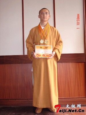 东莞陈式太极馆学生释登杰 登杰,山东聊城人,自幼习武,04年随韩军生老师系统学习陈氏太极拳,因学习刻苦,进步神速.现为杭州灵隐寺僧人.荣获“2006第三届杭州市全国太极拳”比赛陈式传统拳冠军,陈式竞赛套路冠军. 06年8月,在国际陈家沟太极精英大赛上获得男子青年组第二名. 07年第四届杭州市全国太极拳”比赛陈式传统拳冠军,陈式竞赛套路冠军 |